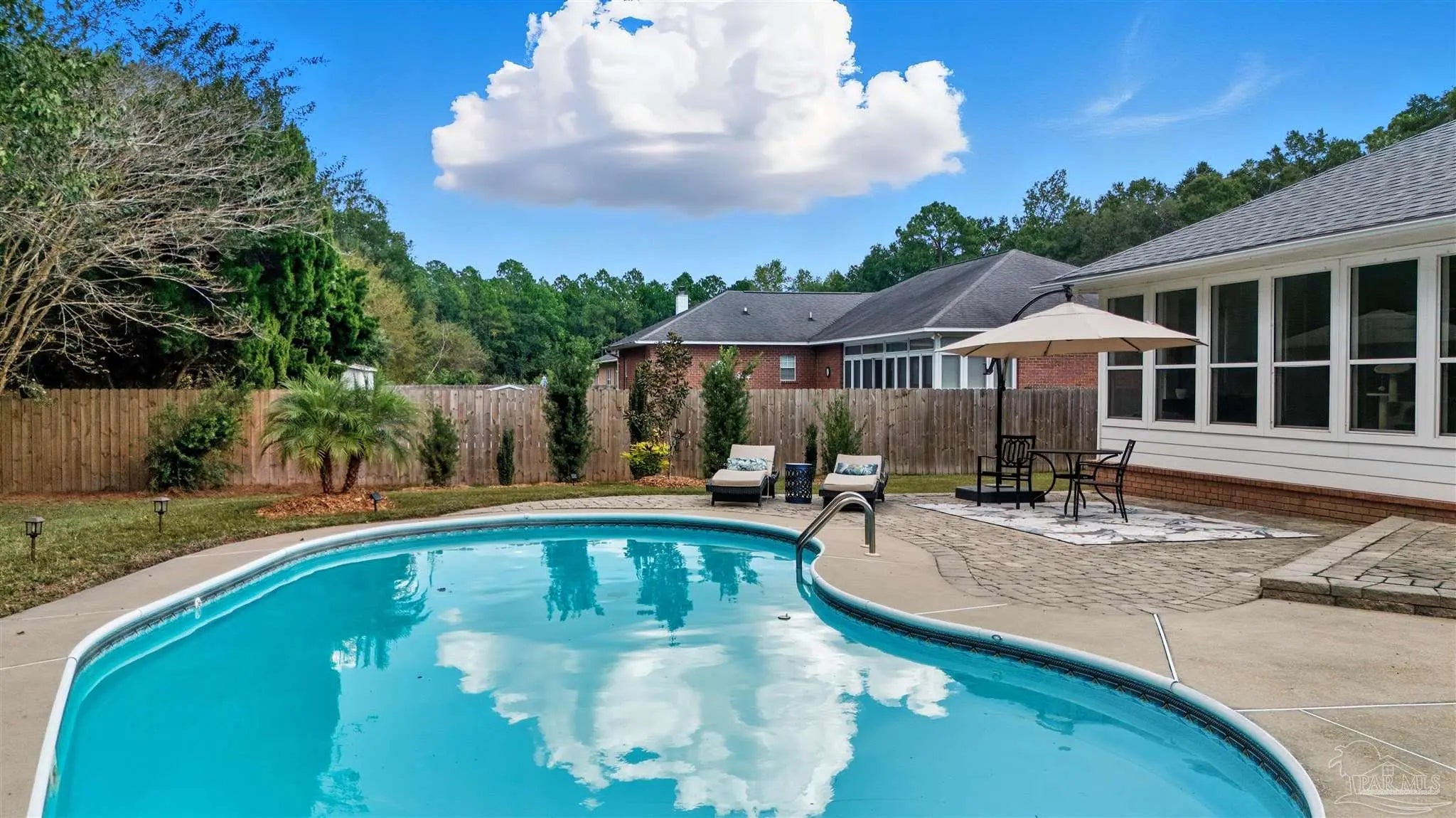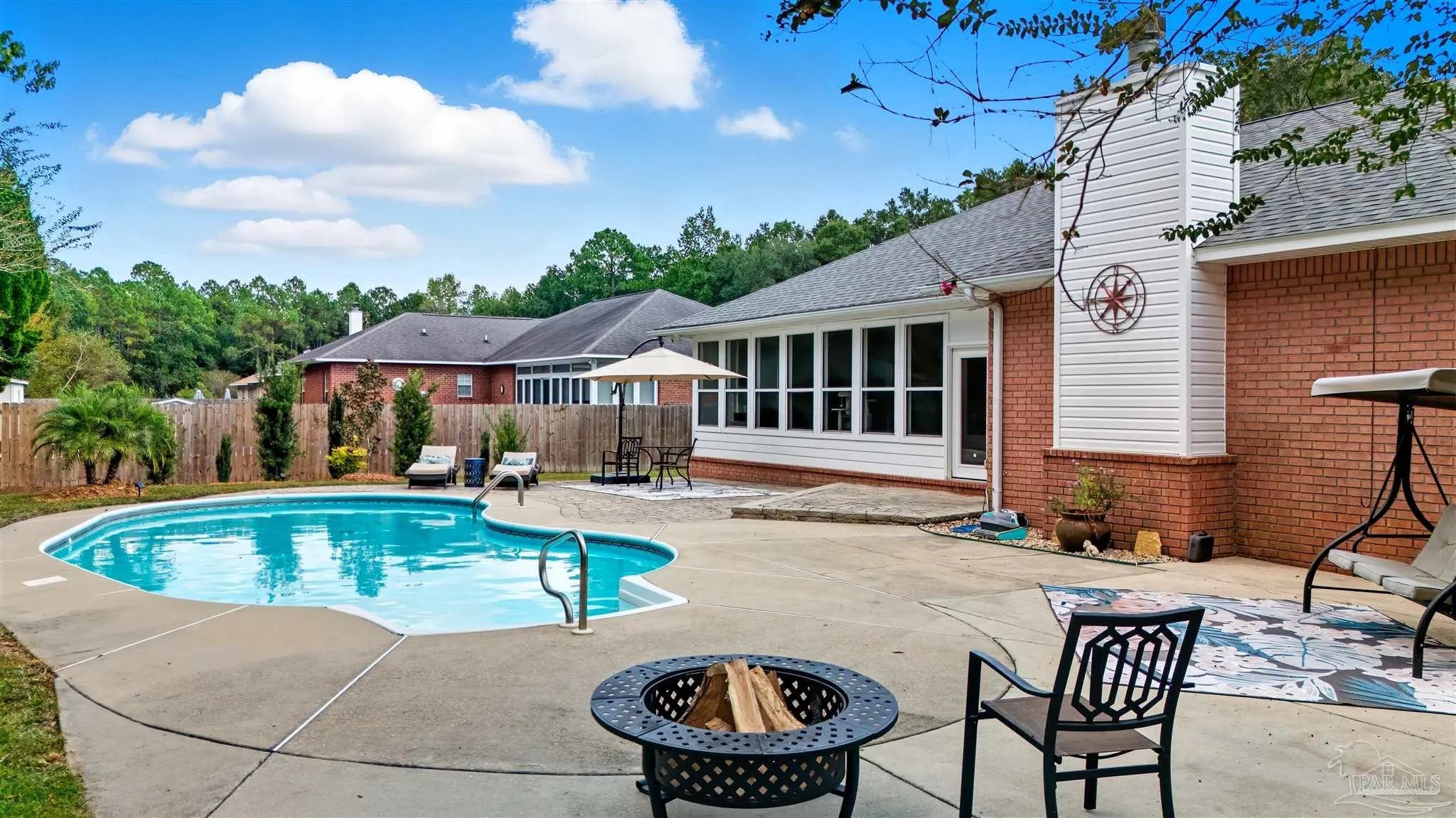 New Price ~ Located in the desirable Woodbine Springs community ~ home to a beautiful 52-acre lake perfect for fishing, kayaking, and peaceful views ~ this stunning home blends comfort, function, and style. You will have peace of mind with a NEWER ROOF (2020) & a 5 Ton HVAC inside & out (2025)! Step inside to a spacious living and dining area featuring real hardwood floors, a vaulted ceiling, and NEW updated light fixtures. Through an elegant archway is a large family room with a wood-burning fireplace. The kitchen offers a large breakfast bar, NEW Stainless Steel LG fridge (2025), tile flooring, and a deep single-bowl sink. The laundry room includes upper cabinets, hanging space, and a utility sink. The primary suite features sliding doors to the Florida room, while the primary bath includes dual sinks, updated lighting, a separate shower, a large soaking tub, and a walk-in closet. The Florida room is surrounded by large windows overlooking the pool and patio, with two NEW ceiling fans w/ remotes ~ a perfect spot to relax. On the opposite side of the home there are 2 additional bedrooms and a full bath. Enjoy your private backyard oasis with a 6’ privacy fence on 2 sides, 4’ fence along the back, 15 x 31 kidney-shaped pool, paver, and concrete patio areas & large shed/workshop. The front yard is beautifully landscaped with colorful flower beds, paver edging, a circular driveway, and two mature shade trees. This home truly offers style, comfort, and a welcoming lifestyle in one of the area’s most sought-after neighborhoods. Enjoy new lighting and fans throughout, fresh paint in select rooms, NEW updated landscaping, portable generator hookup, hurricane-proof front windows (2021), water heater (2021), pool liner (2020), plus gutters and security lighting. Sonya Street is located at the rear of the neighborhood, situated on a quiet cul-de-sac away from major roads. The circular driveway is another highlight. Schedule a private showing today.