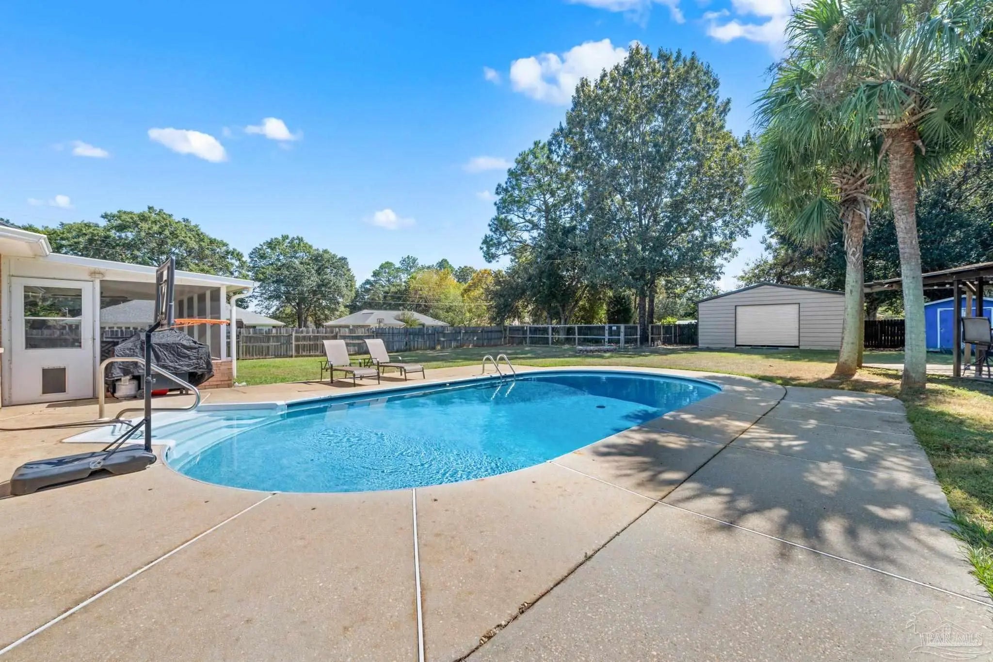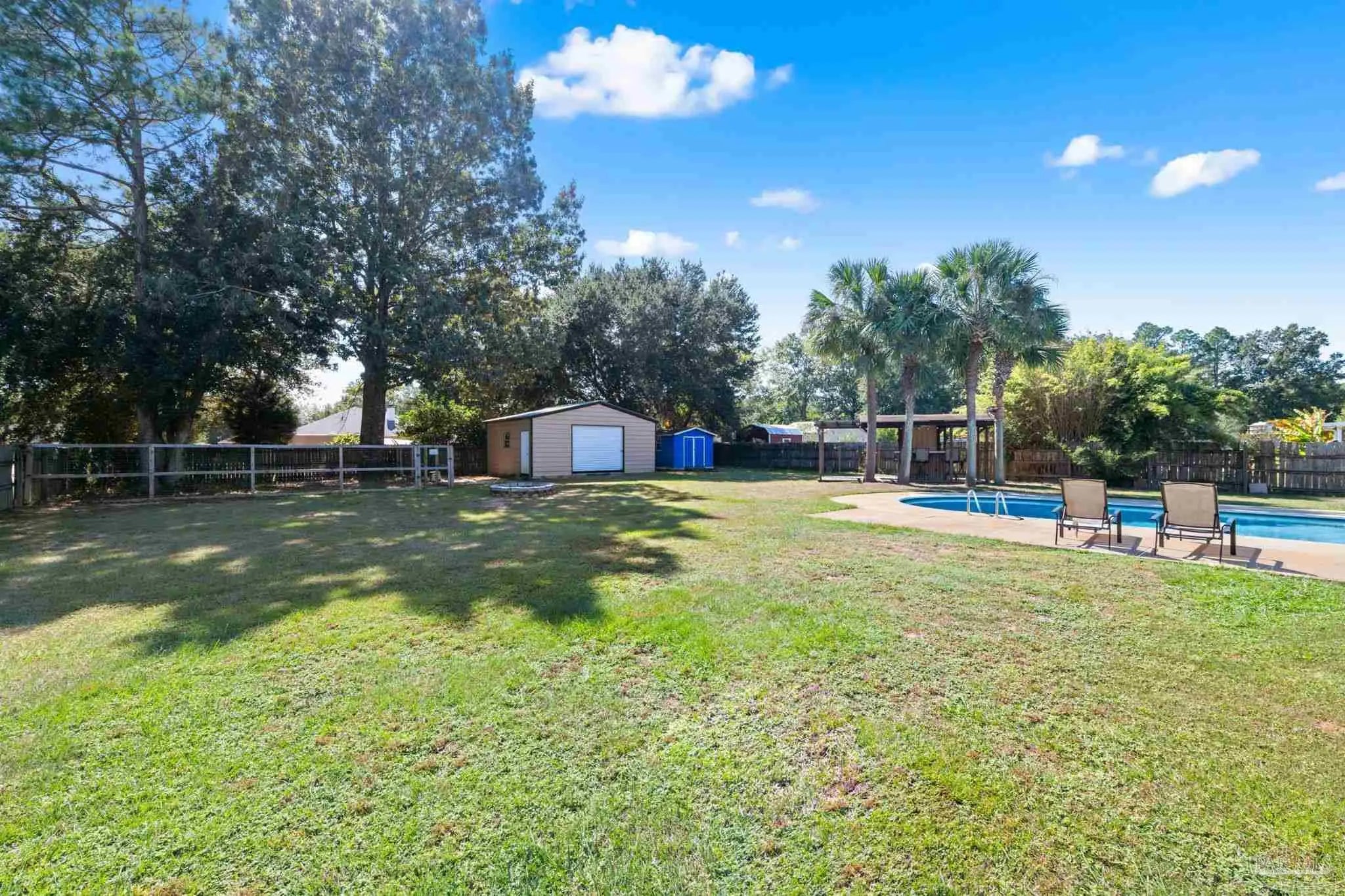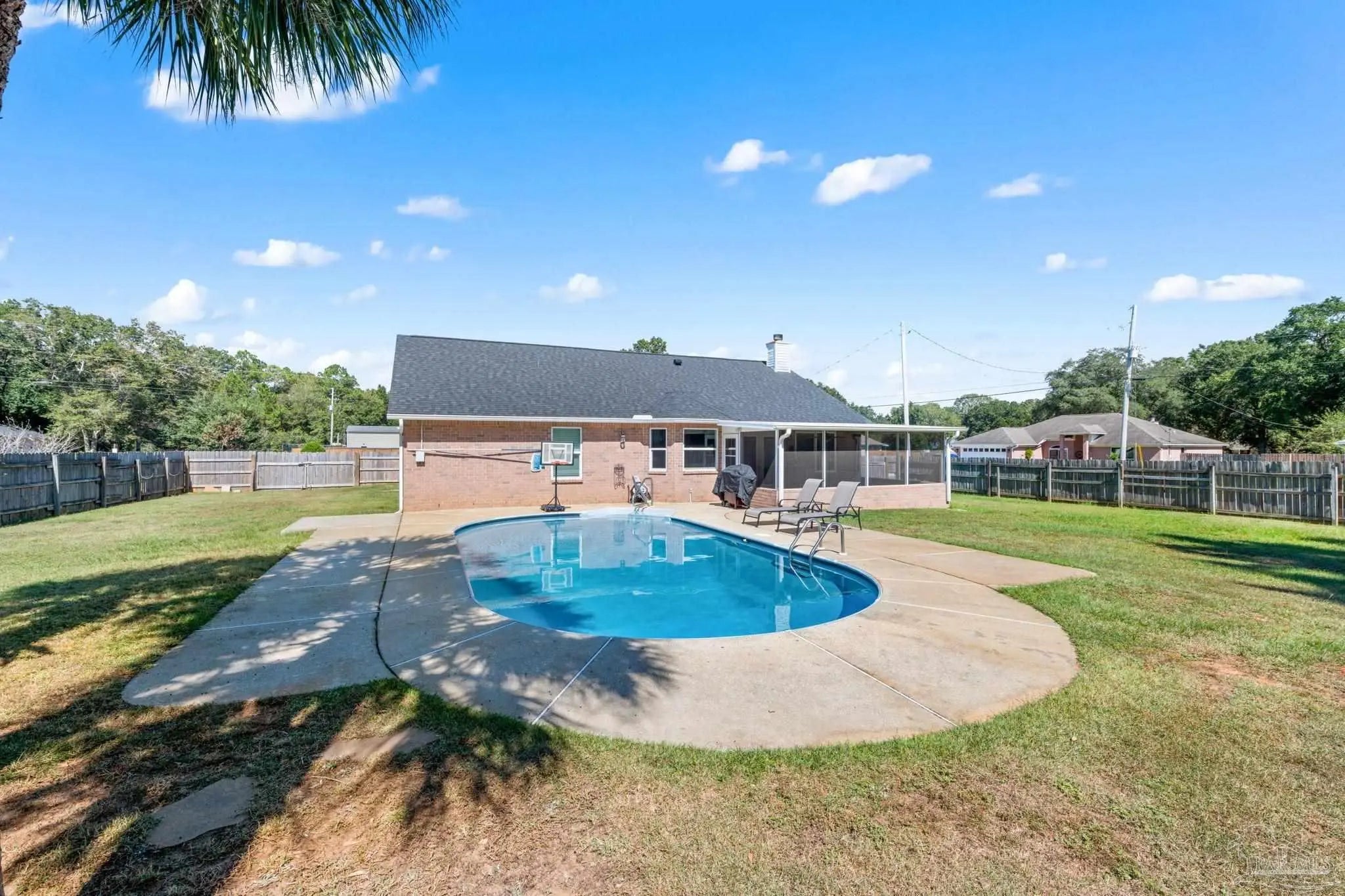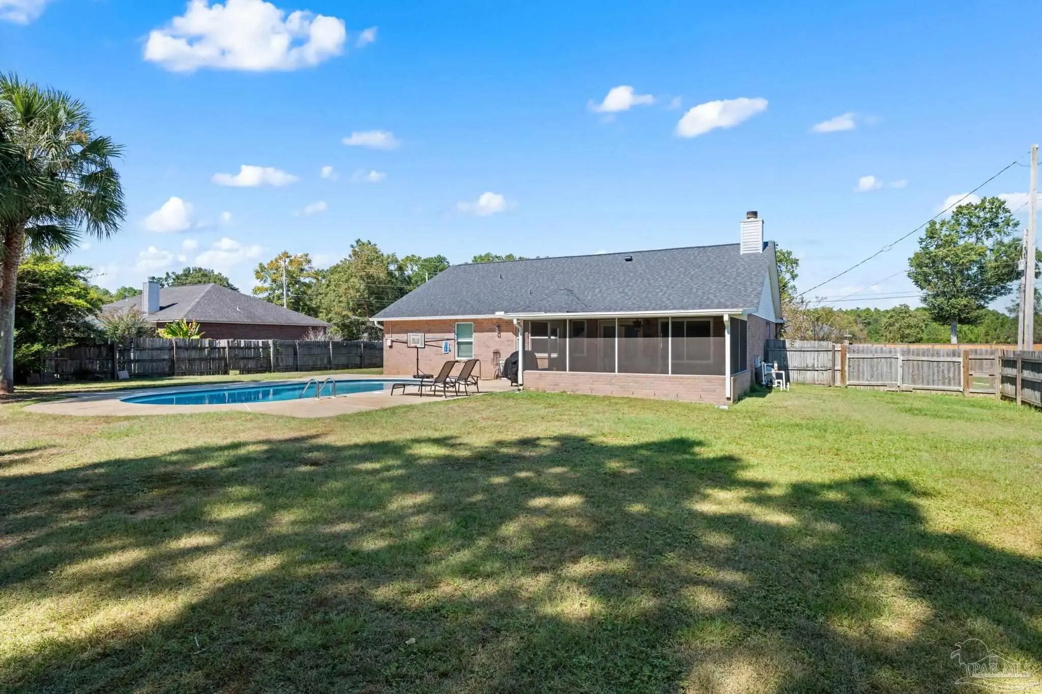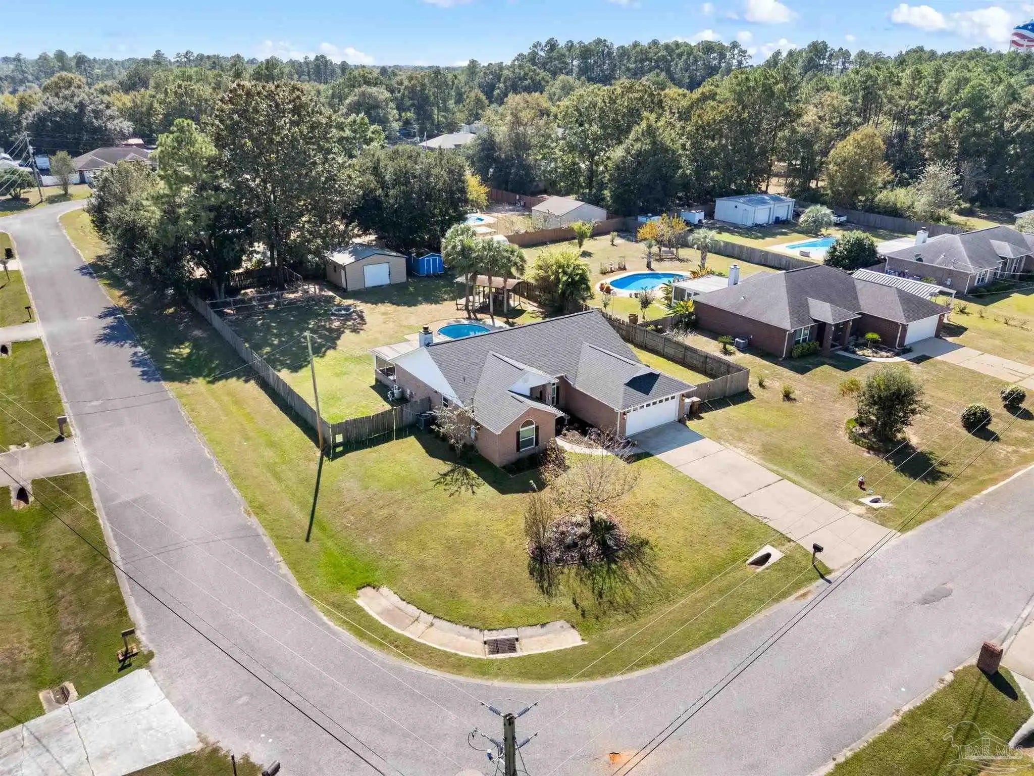 Stunning 4 bedroom, 2 bath brick home situated on a corner lot which measures just under a half acre. Sought after neighborhood with access to top rated Pace schools. It boasts an in-ground pool, outdoor bar area with TV connections, screened back porch and a cozy firepit. Kitchen features stainless steel appliances, a breakfast bar, granite countertops and a tiled backsplash. Bedrooms are spacious and primary ensuite has a separate shower, garden tub and double vanity. 20 X 24 concrete shed/workshop offers storage options in the back yard. No HOA, come make this home your own!!
