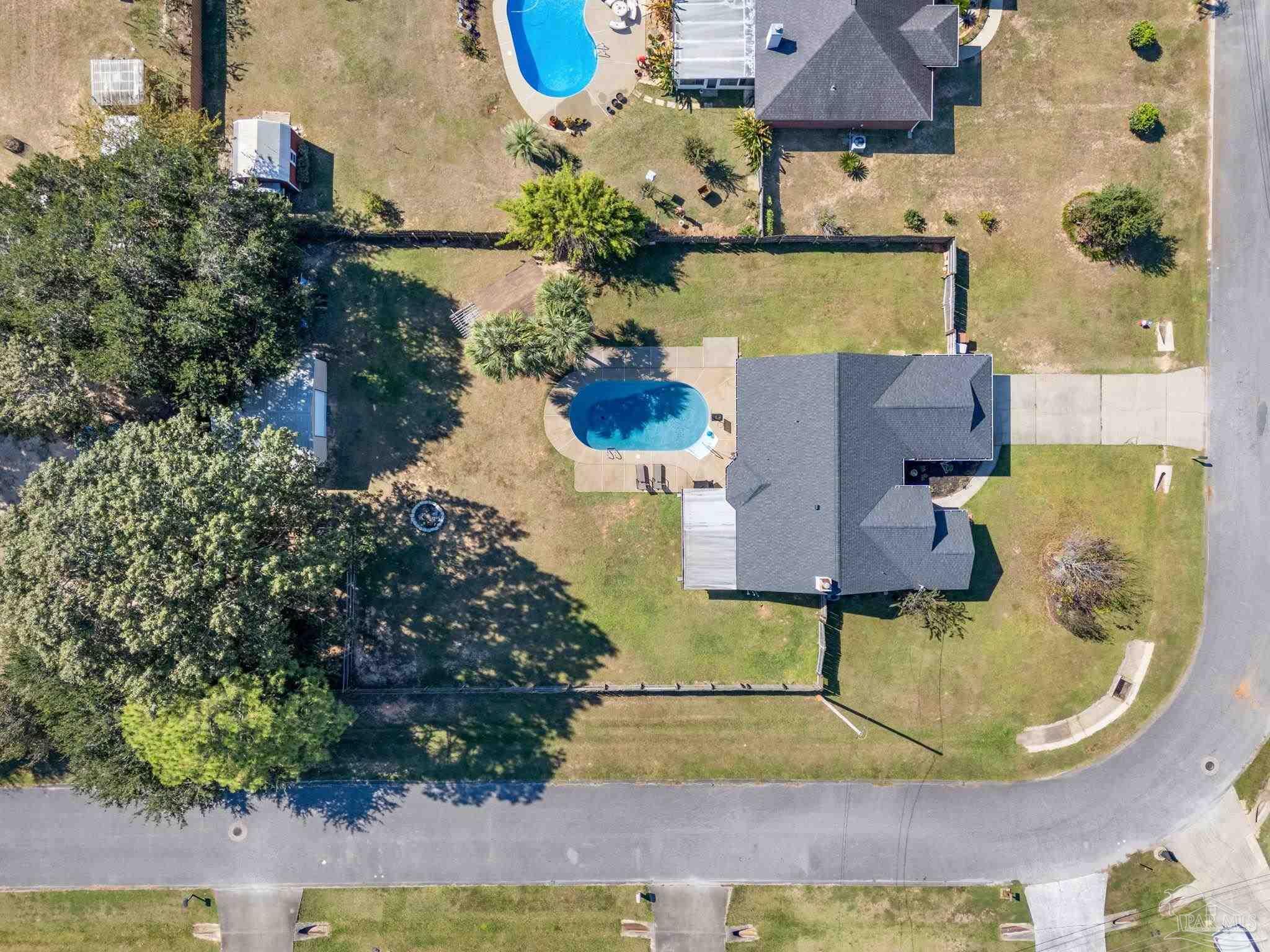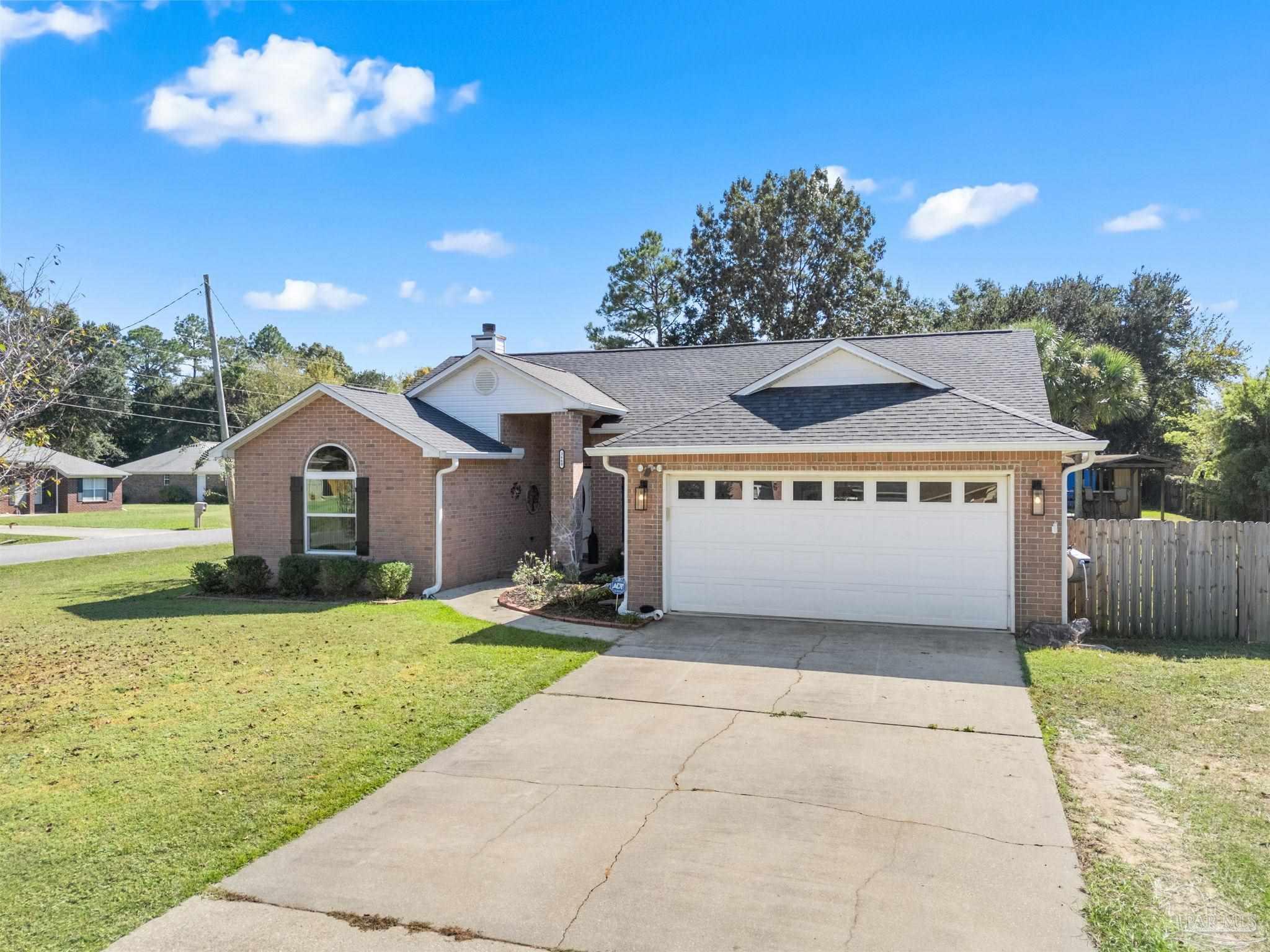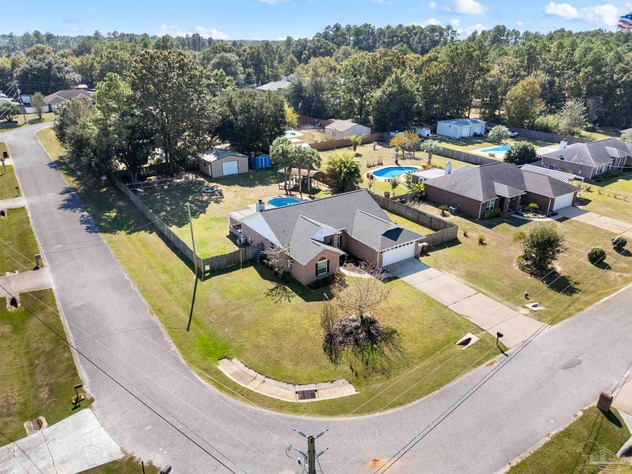 Stunning 4 bedroom, 2 bath brick home situated on a corner lot which measures just under a half acre. Sought after neighborhood with access to top rated Pace schools. It boasts an in-ground pool, outdoor bar area with TV connections, screened back porch and a cozy firepit. Kitchen features stainless steel appliances, a breakfast bar, granite countertops and a tiled backsplash. Bedrooms are spacious and primary ensuite has a separate shower, garden tub and double vanity. 20 X 24 concrete shed/workshop offers storage options in the back yard. No HOA, come make this home your own!!