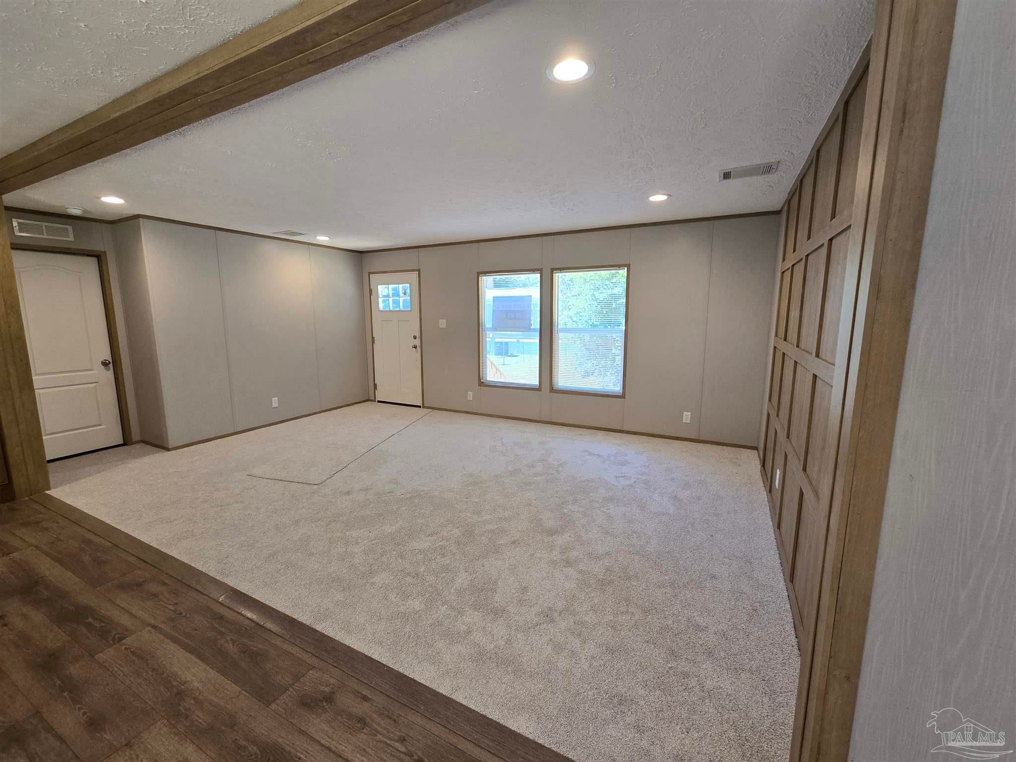 This manufactured home, was built in 2020, and offers 4 bedrooms and 2 bathrooms across 1,836 sq ft of living space. The primary bedroom features two closets and a bathroom, while three additional bedrooms are situated around the bonus room. A new HVAC is being installed. The backyard is mostly cleared with some trees remaining for privacy. Conveniently located just minutes from the I-10 interchange, this property is perfect for those who balance access to amenities and value privacy.