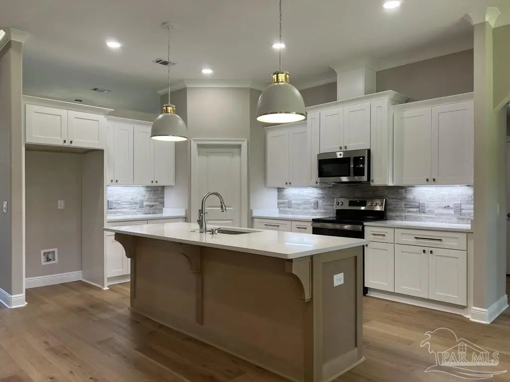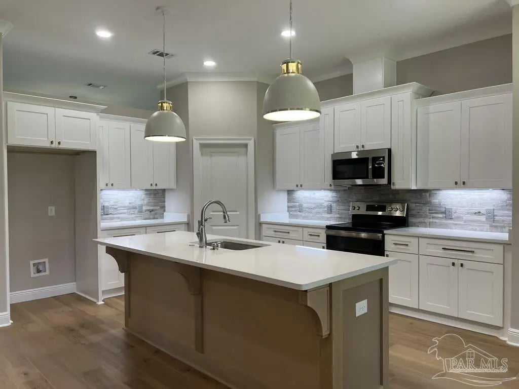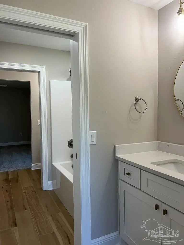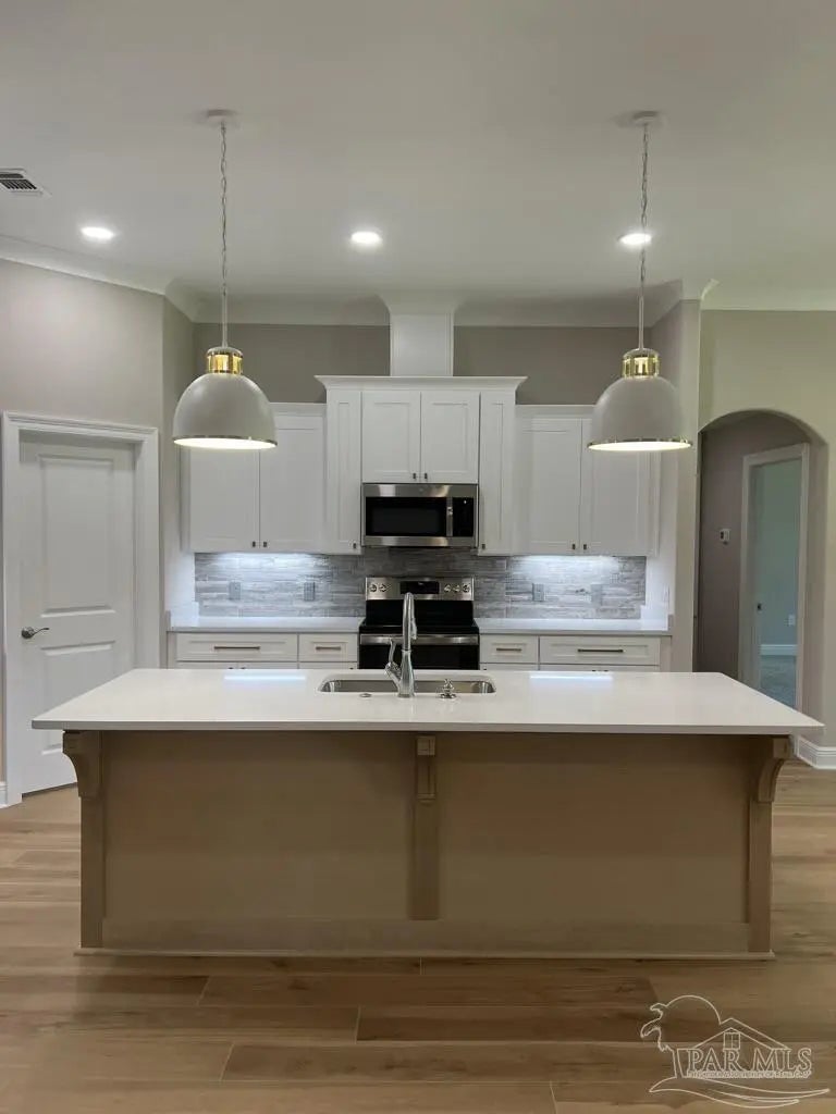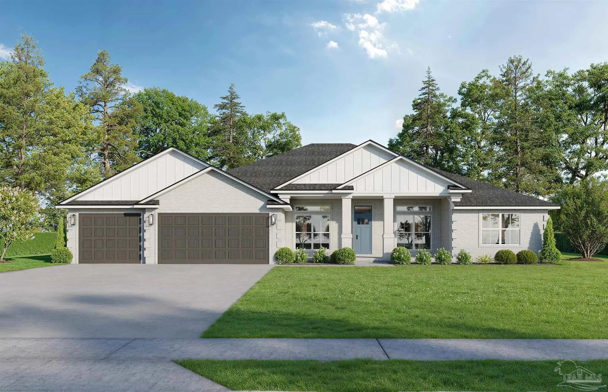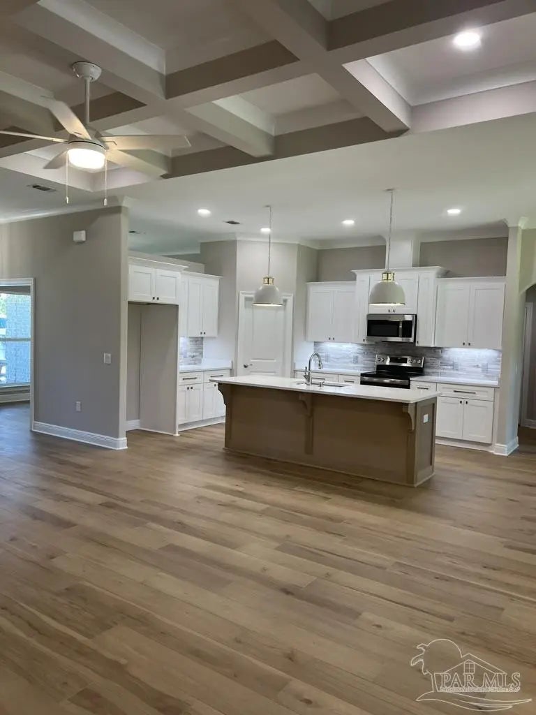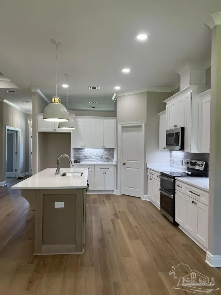 Stunning New Custom Home in Holley by the Sea – Estimated Completion February 2026 Experience luxury coastal living in this brand-new custom-built Robbins Builders home, ideally located on a quiet cul-de-sac in the sought-after Holley by the Sea community. Residents enjoy resort-style amenities including multiple pools, a fully equipped gym, tennis courts, a waterfront park, and deeded access to the Santa Rosa Sound. This 4-bedroom, 3-bathroom tri-split floor plan showcases timeless craftsmanship and modern design. The welcoming foyer opens to a formal dining room and private office with double glass doors, leading into an expansive open living area filled with natural light and refined finishes. The gourmet kitchen serves as the heart of the home—featuring shaker cabinetry with crown molding, quartz countertops, a tiled backsplash, stainless steel appliances, and a large center island flowing into the breakfast nook and family room. A walk-in pantry offers excellent storage, while wood-look staggered tile flooring enhances the home’s modern coastal appeal. The spacious primary suite offers a tranquil retreat with a trey ceiling, ceiling fan, and spa-inspired bath boasting a tiled walk-in shower, soaking tub, dual vanities with framed mirrors, and a large walk-in closet. Two guest bedrooms share a Jack & Jill bath, while a fourth bedroom features a private bath and access to the covered porch—perfect for guests or multigenerational living. Additional highlights include a laundry room, oversized 3-car garage ideal for trucks or outdoor toys, and a landscaped yard with irrigation system, lawn pump, and digital timer. Built for comfort and peace of mind, the home includes TAEXX in-wall pest control, Fabric Shield hurricane protection, a dimensional shingle roof, crown molding, recessed lighting, and more. Enjoy a short drive to Navarre Beach, local shopping, and Hwy 98 for easy access to Hurlburt Field AFB. Don’t miss this exceptional new home—call today for details