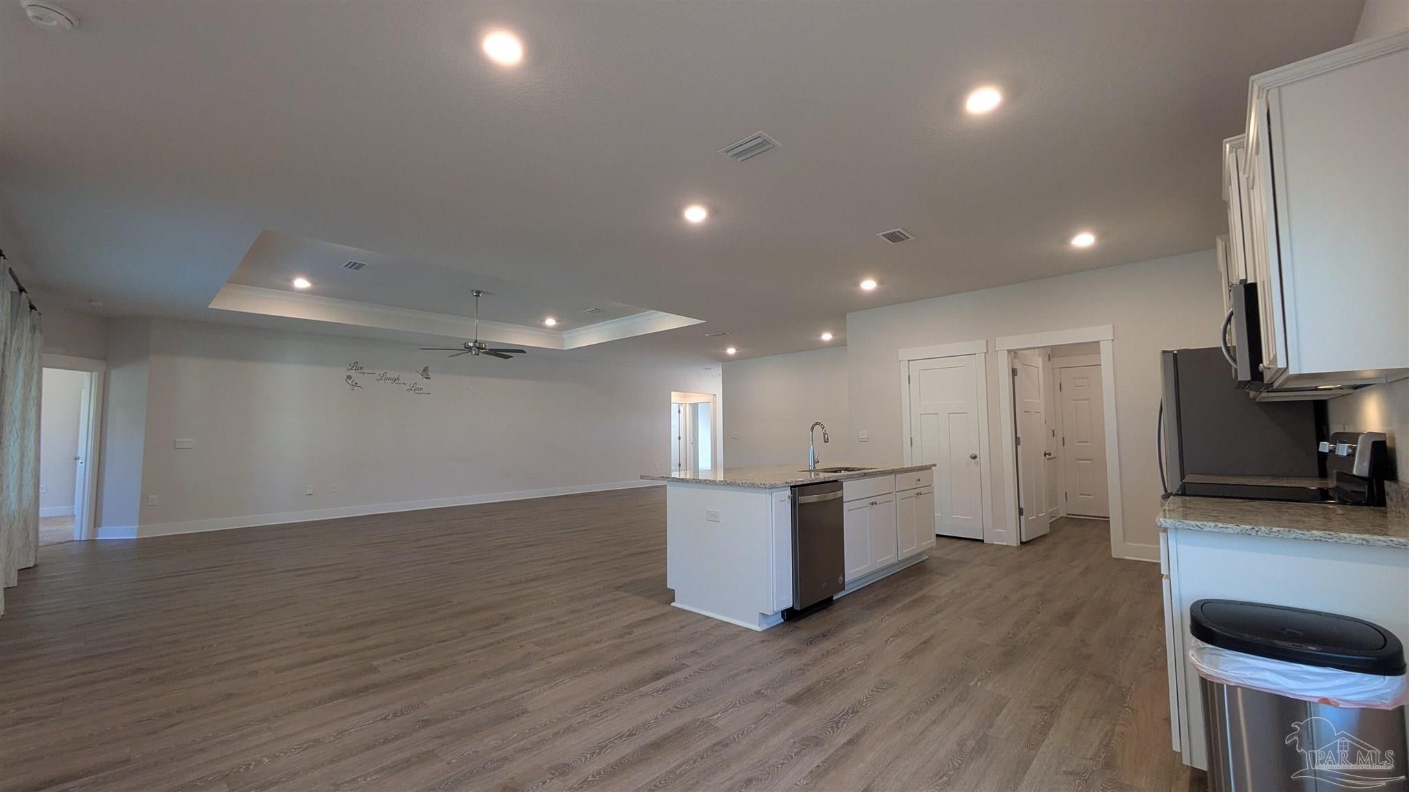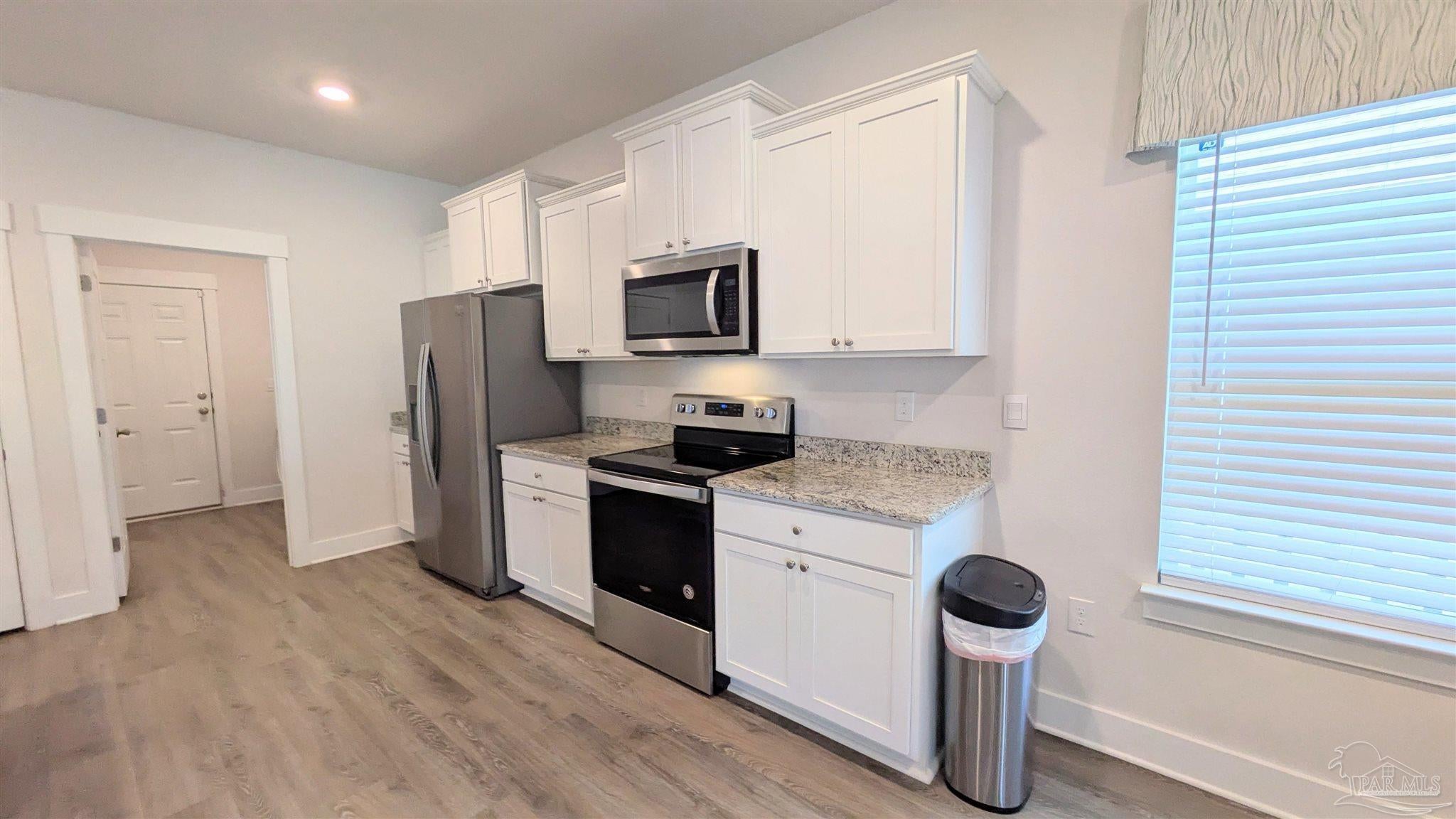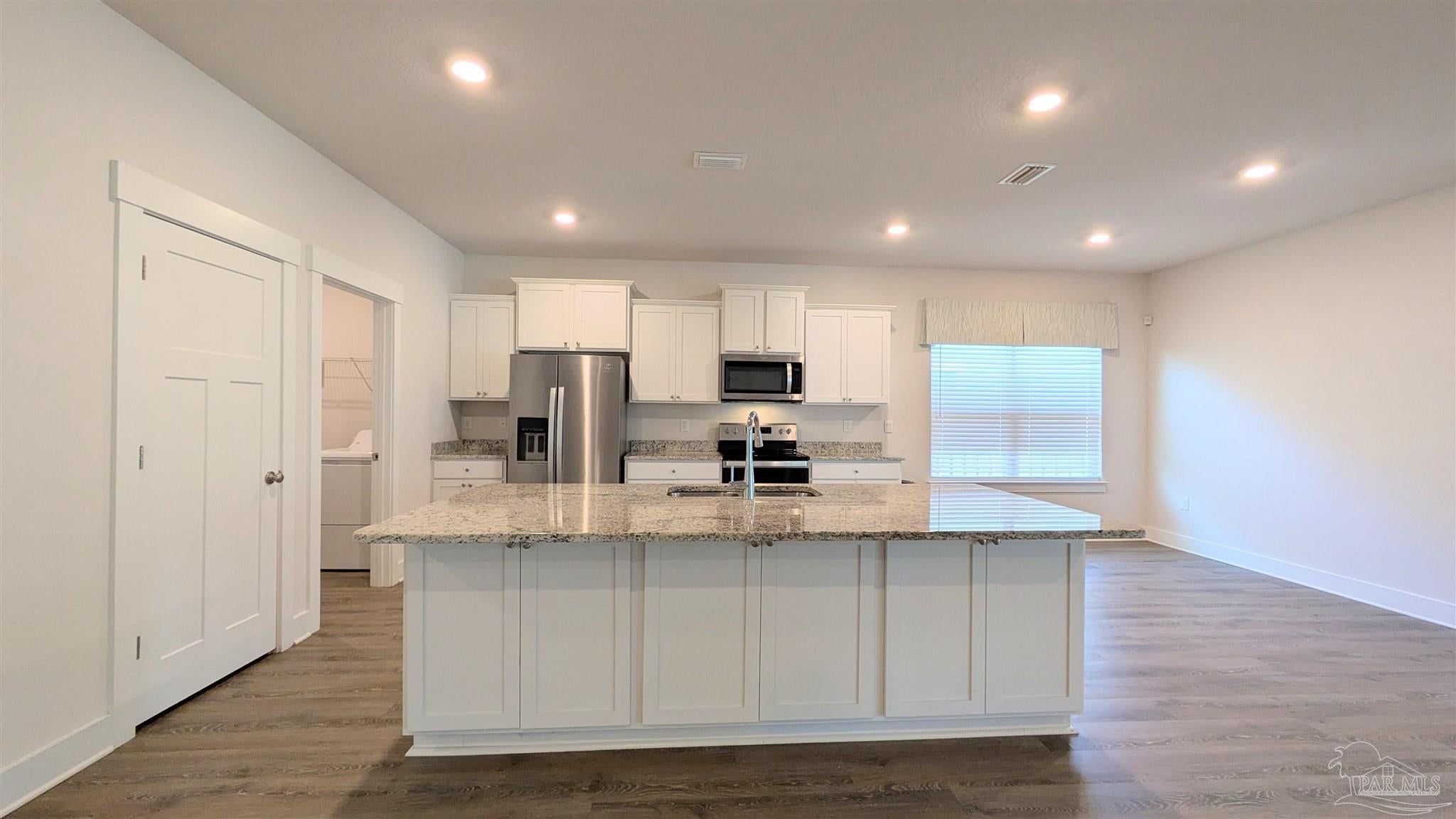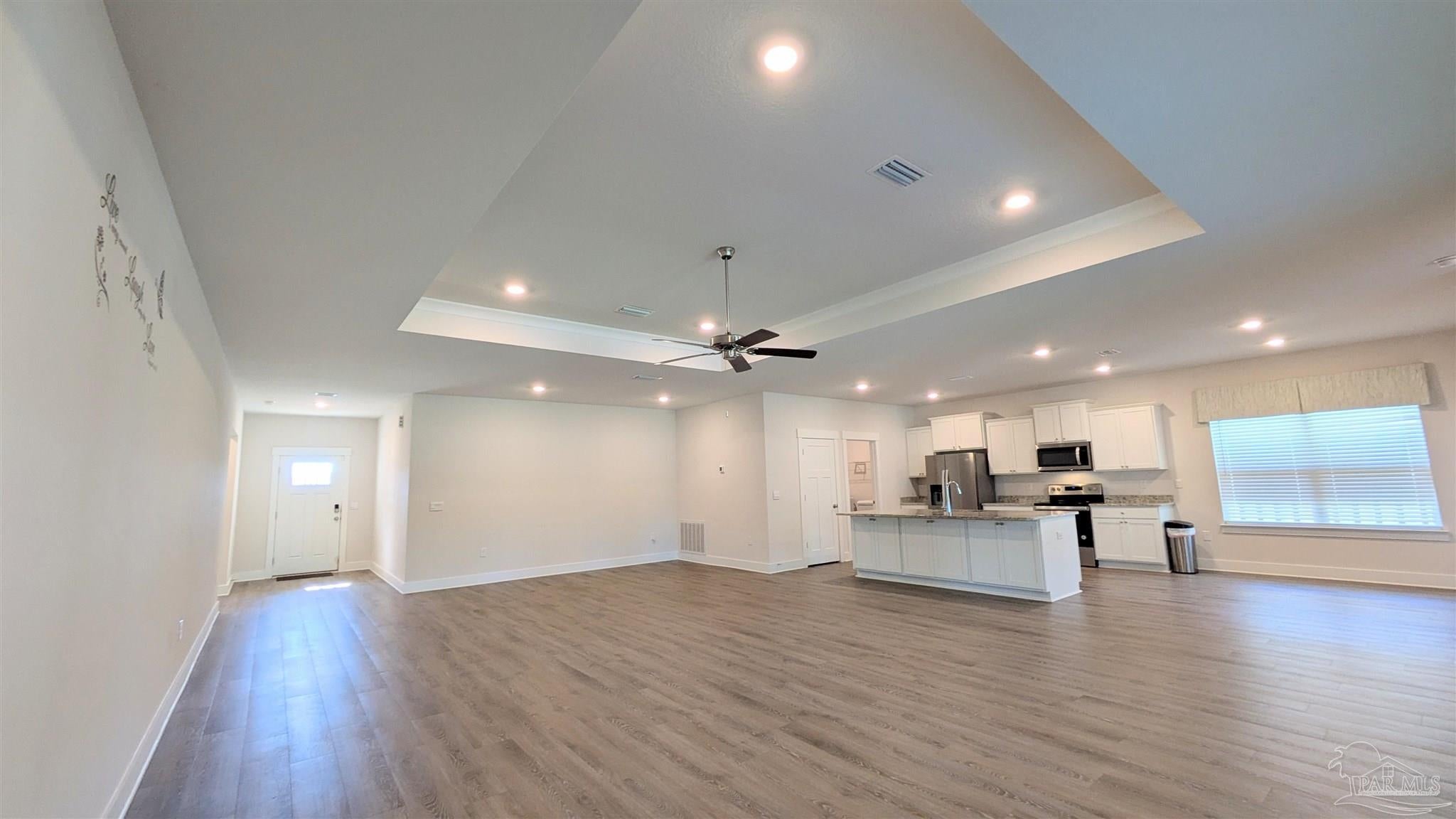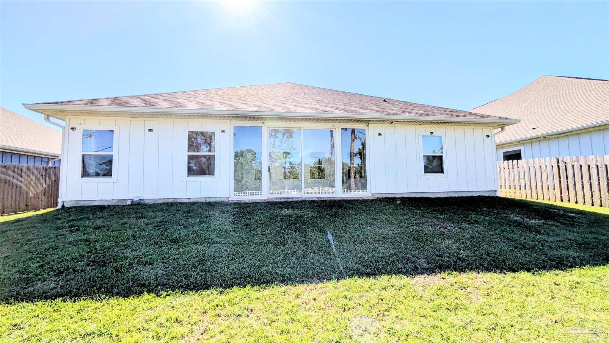 Welcome to 3333 Southwind Circle, a beautifully designed 4-bedroom, 3-bathroom home offering 2,304 square feet of comfortable living space in the sought-after Sailfish Pointe community. This property combines modern finishes, open living spaces, and peaceful surroundings for a truly inviting place to call home. Step inside to a bright, open-concept layout where the kitchen, dining, and living areas flow seamlessly together. The kitchen features granite countertops, stainless steel appliances, and a large center island, providing ample space for cooking and entertaining. Durable luxury vinyl plank flooring runs through the main living areas, complemented by plush carpeting in the bedrooms for added comfort. The primary suite is a spacious retreat featuring a tray ceiling, dual vanities, a soaking tub, a separate walk-in shower, and a large walk-in closet. Each additional bedroom offers versatility for guests, family, or a home office setup, while the three full bathrooms ensure plenty of space for everyone. Enjoy peaceful views of the fenced backyard and surrounding trees from the enclosed sunroom, a perfect spot to relax or entertain year-round. Additional highlights include a two-car garage, a dedicated laundry area, and a well-maintained fenced yard that’s ideal for outdoor enjoyment. Located in the quiet and desirable Sailfish Pointe subdivision, this home offers convenient access to nearby shopping, dining, and top-rated schools—plus an easy drive to Pensacola’s beaches and downtown attractions. This property requires participation in the MSPM Resident Benefit Package for an additional monthly fee. Additional information on this program can be found upon submission of application.