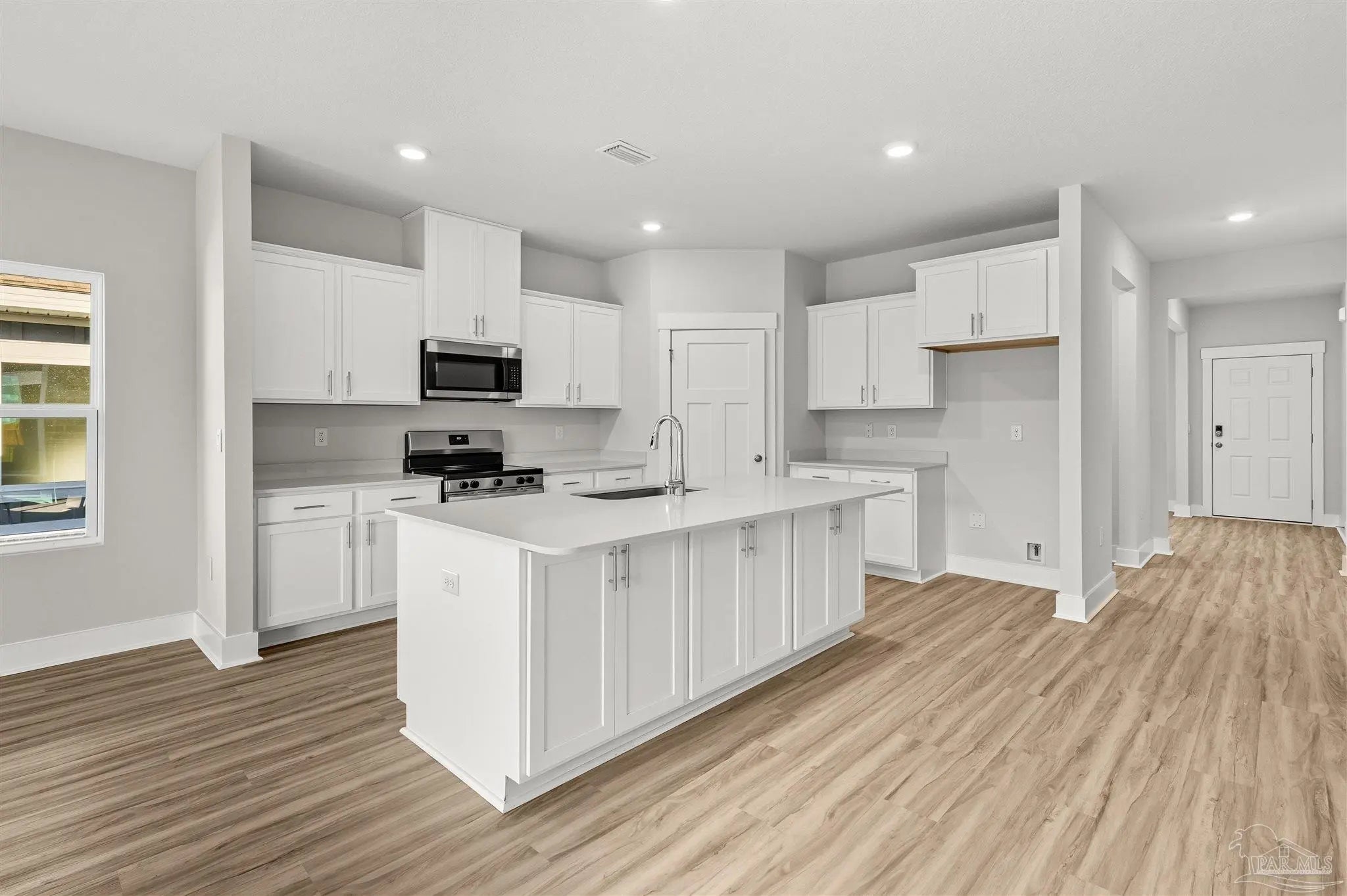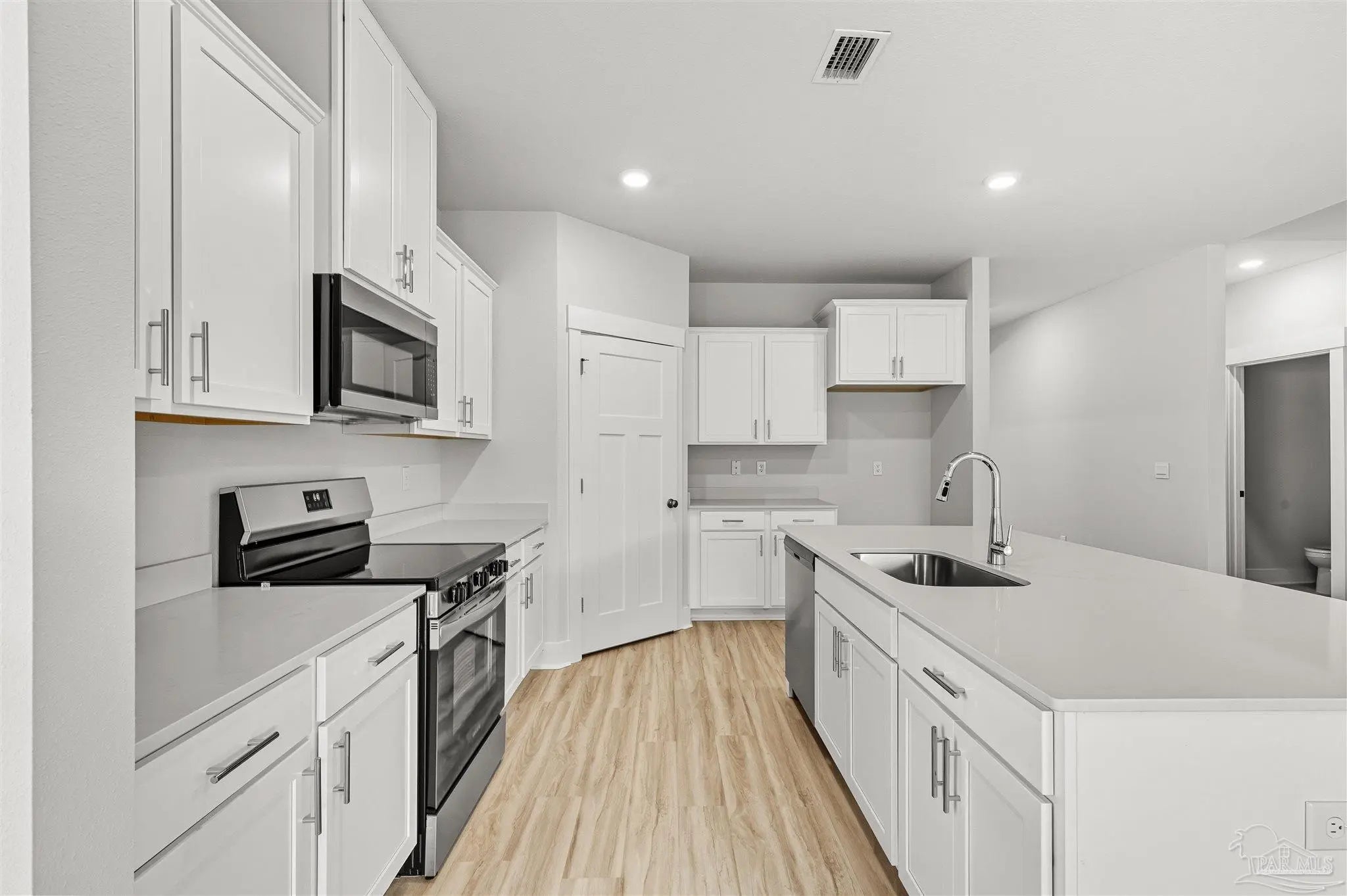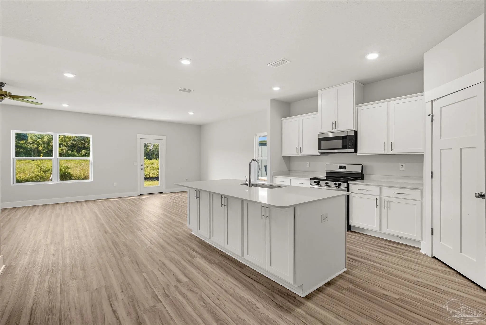 Welcome to the Embry plan in Lakes of Woodbine! This stunning 5 bed, 3.5 bath two-story home offers over 2,800 sq ft with a 2-car garage. The first floor features a private primary suite with a large walk-in closet, double vanity, garden tub, and shower. A flex space off the foyer is perfect for a home office or dining area. The open-concept kitchen includes stainless steel appliances, white cabinets, and a center island that flows into the great room. Upstairs offers four additional bedrooms, two full baths (including one ensuite), and a versatile bonus living area. Located in a resort-style community with amenities including a pool, pickleball courts, fitness center, playground, and more! Plus, its central location provides easy access to shopping, dining, NAS Whiting Field, UWF campus, and the stunning Emerald Coast Beaches.