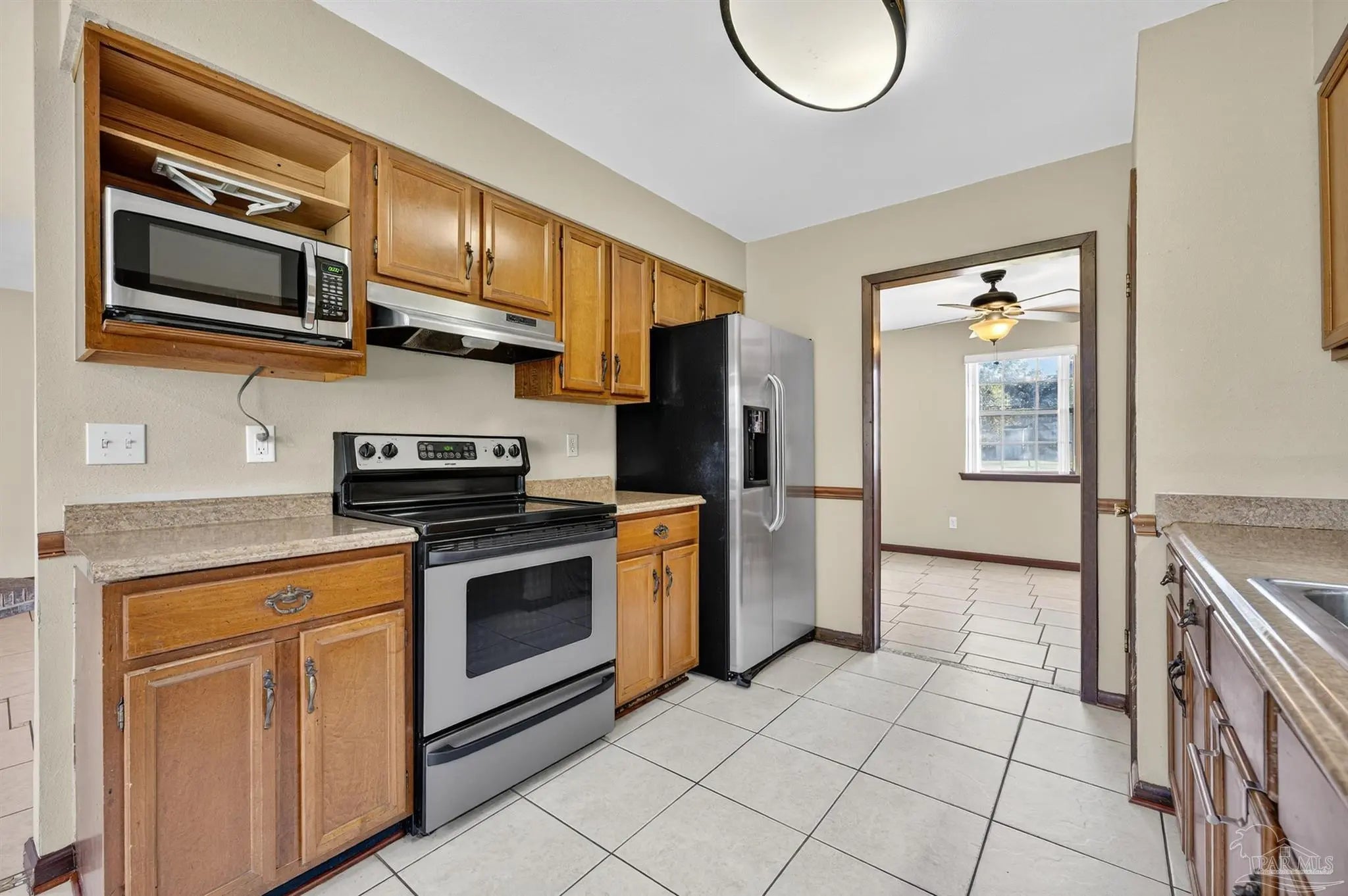 Sweet Southern living on a .70-acre lot in Cantonment! This 3-bedroom, 2-bath brick home offers simple country comfort with a cozy wood-burning fireplace, open kitchen, and plenty of room to relax. Enjoy a spacious fenced backyard (new in 2021) and a covered patio perfect for morning coffee or weekend cookouts. The roof was replaced in 2021, and the garage is wired with both 220V and 110V outlets — ideal for a workshop or hot tub setup. A peaceful setting just minutes from Hwy 29 — where small-town charm meets everyday convenience.