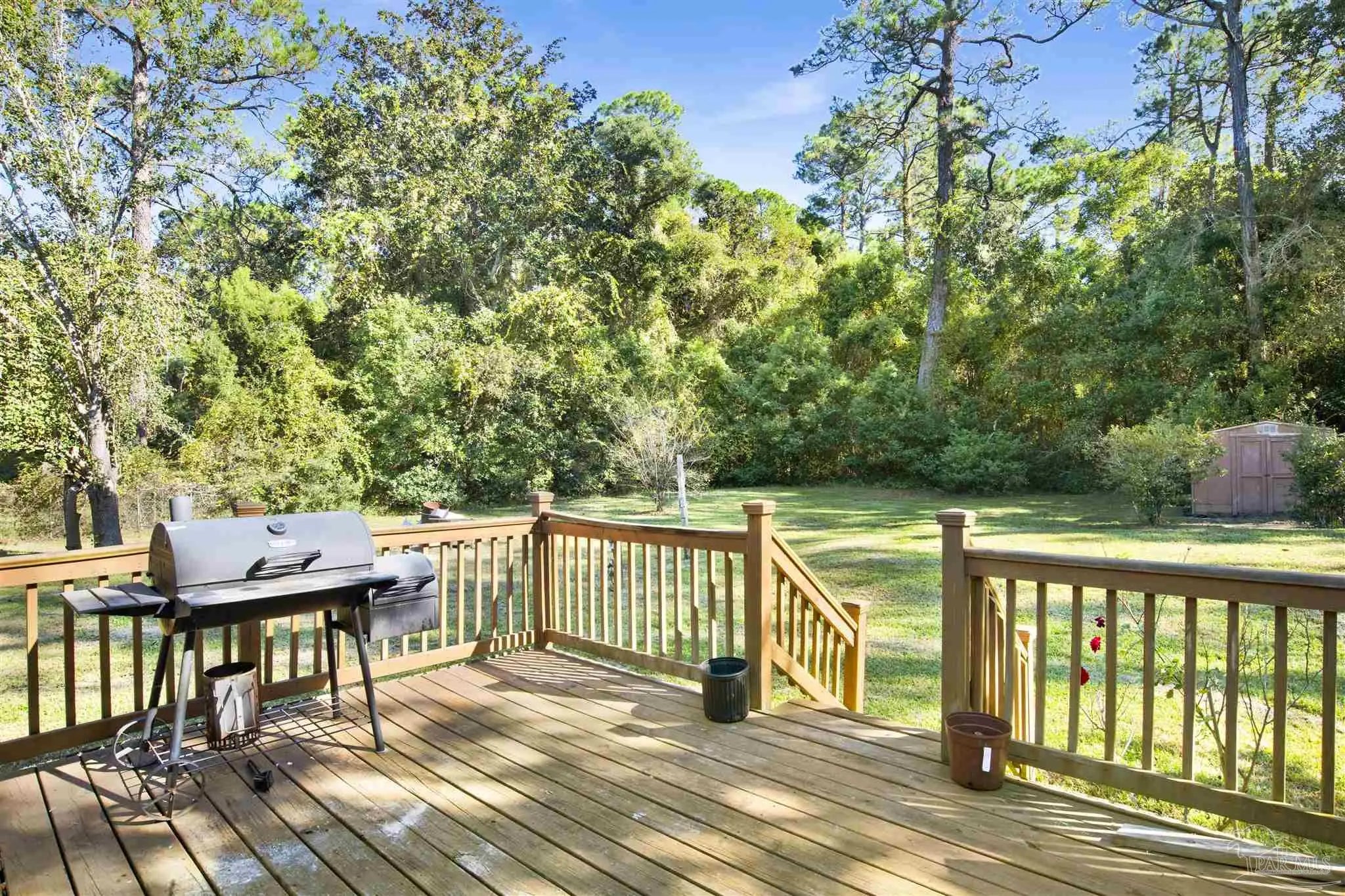 Beautiful home! A few finishing touches and this home will fit you perfectly! Tucked away in a quiet pocket of West Pensacola, with easy access to back gate of NAS, shopping and beaches! Single level living, lots of room, corner lot, on a quiet street! As you enter from the front door there are living spaces to your right and a dining room straight ahead. From the dining room, to your right you can enter the kitchen or additional bedroom/office, or head into the oversized 2 car garage with laundry tucked away. To your left is the hallway leading to a full bath and 3 bedrooms. Main bedroom has a full ensuite to the right and built in drawers, cabinets and closets. Each additional bedroom has spacious closets and are a good size! Original hardwood floors throughout the whole house are in awesome condition! (dining space off kitchen has only subflooring, with new replacement flooring conveying, only room w/o original hardwoods). A beautiful kitchen with granite tile countertops, and a semi open floor plan, breakfast bar and dining area directly off it. There could also be a formal dining room, sitting room, or anything you can imagine! Off the dining room is the enclosed Florida room, more space for relaxing! A step outside to the large deck, they both overlook the large partially fenced-in (possibly fully fenced, hedges line the back property line) backyard with storage building. Plenty of wildlife to see in the morning, from the early birds, to bunnies, deer and anything else you can find! This home sits on a quiet street, where you can stargaze at night, watch the Blue Angels fly overhead during practices, or just sit and enjoy the animal sounds! One mile from groceries, gas and only a short trip to Perdido and the AL/FL state line. Check out this beautiful home waiting for YOU!!!