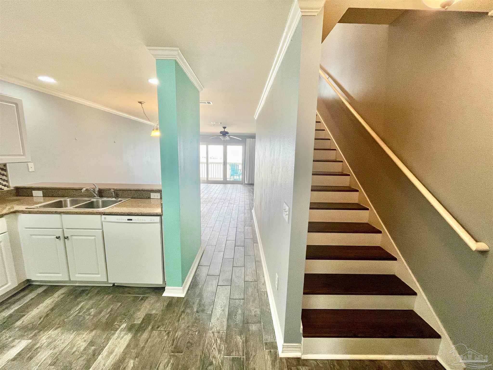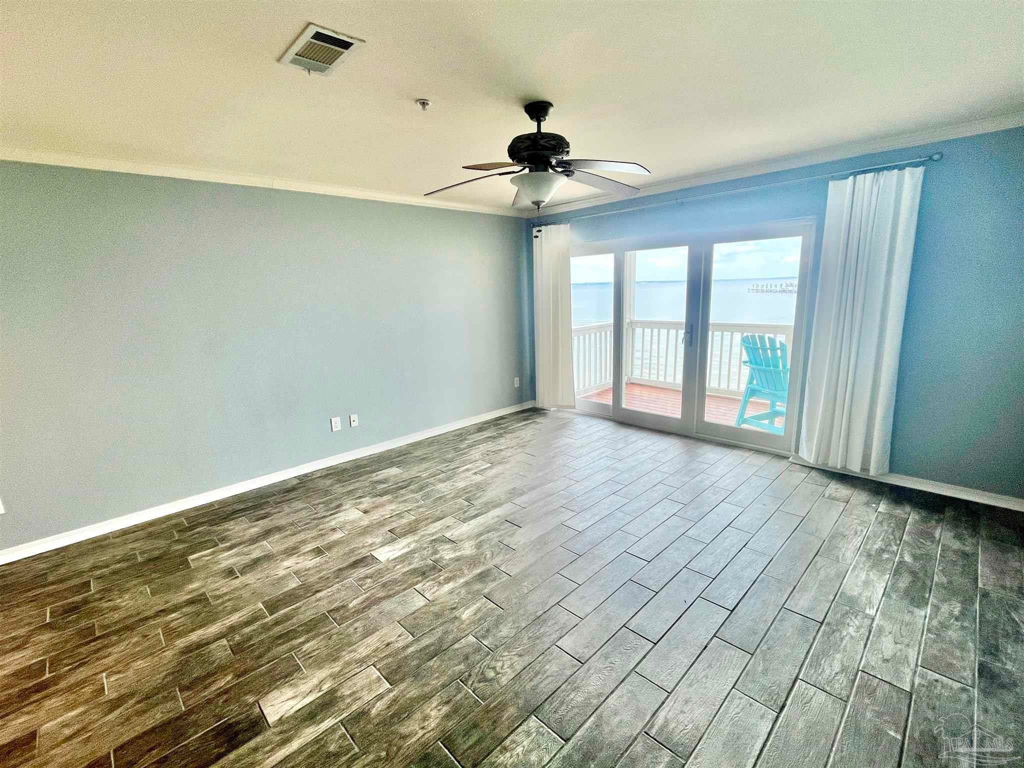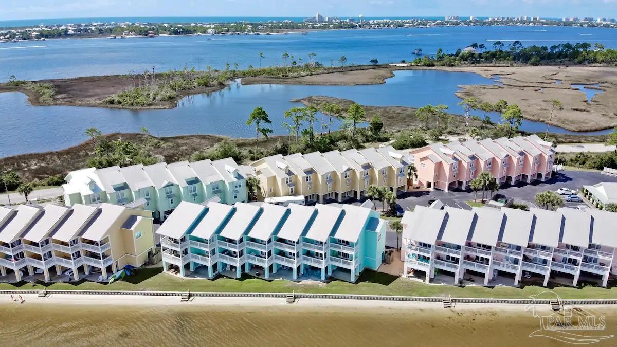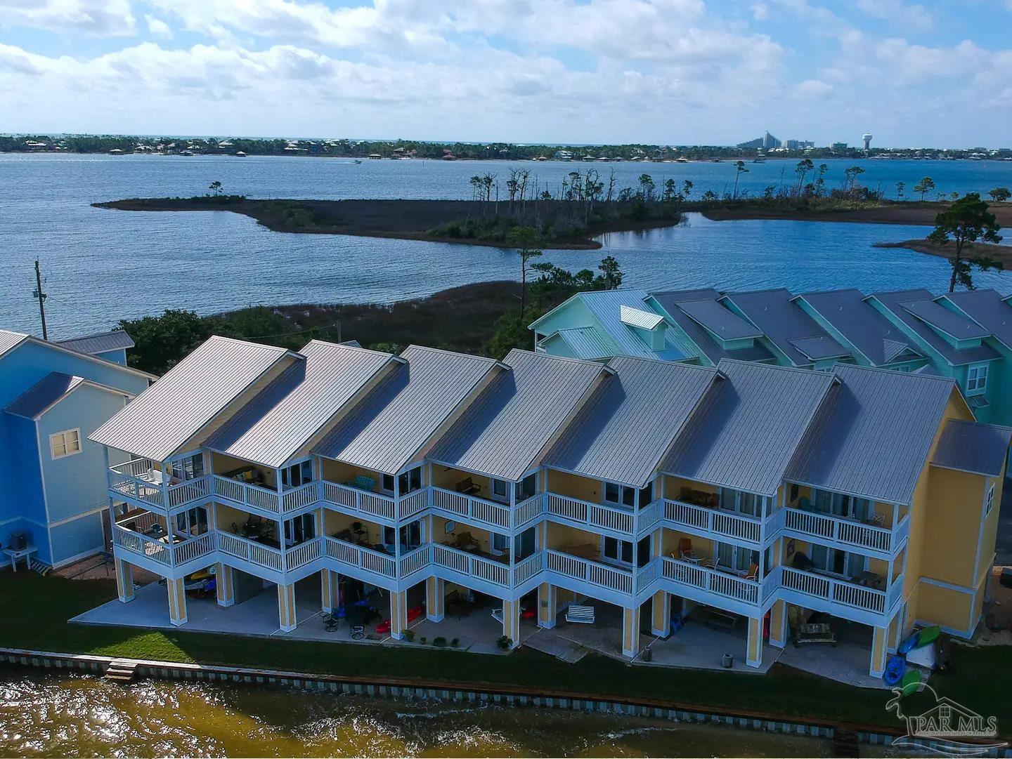 Come enjoy all the luxuries of waterfront living! There is direct water access behind the unit, perfect for swimming, floating, kayaking, fishing, etc. Our calm bayside cove makes it much safer for everyone, especially children. Relax and watch the dolphins on either balcony, each offering unparalleled views. Community pier, beaches, gym, heated pool, and dog park all add to the bliss. Innerarity Townhomes (ITH) sits right on Perdido Bay, and this unit is on the waterfront side of the community, meaning your back patio is 15' from the waters edge. The home includes 2 bedrooms and 2.5 bathrooms across 1314 interior sqft. It also has 900 sqft of covered outdoor area. From the ground floor entrance, you'll go to the second floor and find an open concept living, dining, kitchen, and your first balcony. You'll pass a half bath and laundry as you head upstairs to the bedrooms. The Master Suite offers a double vanity and a private balcony. Across the hall, the guest bedroom and bathroom are great for kids, guests, or an office. It is sold unfurnished, so you can bring your decor, style, and vision (some photos show how it was decorated). Innerarity Townhomes is a quiet, gated, waterfront community, ideal for your primary residence, vacation home, and/or rental. Come and go as you please and let the onsite rental management rent it in between. Or make our slice of paradise your home! ITH also has many wonderful owner occupants, so if you're thinking about moving in, you'll be amongst some great people! Its not a condo, so you don't have the crazy high condo dues. But still benefit from an association that cuts the grass, cleans your pool, and much more so that you don't have to! Perdido Key Beaches, state parks, delicious restaurants, NAS, and more are all minutes away. Check out a quick walk thru at the link below, and then come see for yourself! https://www.youtube.com/shorts/3Jv5prIv8CA