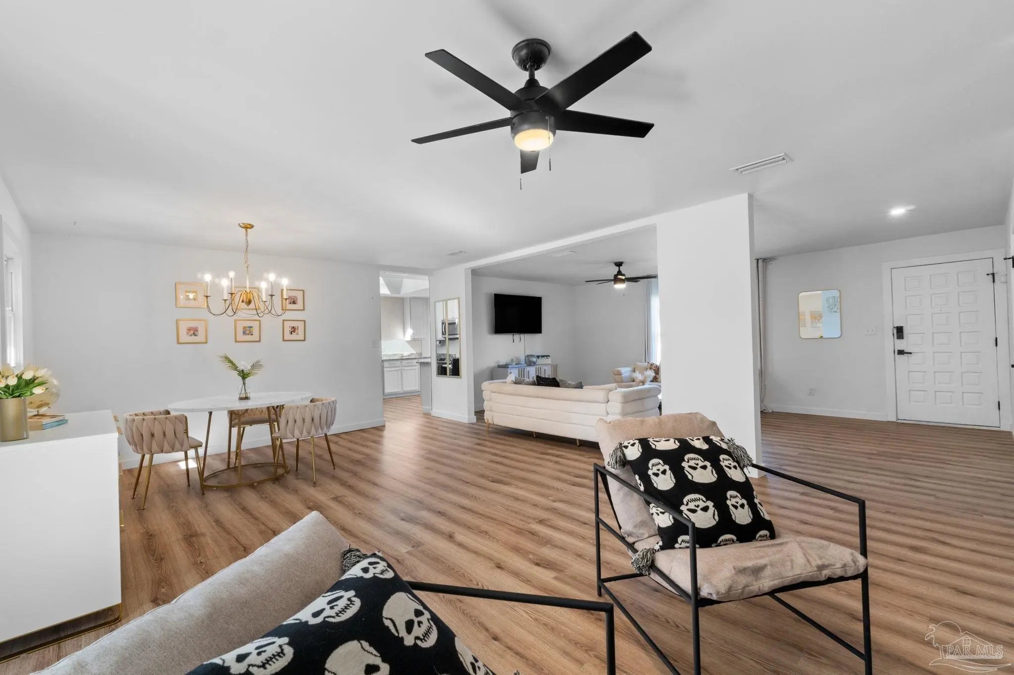 Stunning Pool Home! Completely remodeled and FULLY FURNISHED!! This turnkey home sits in a prime central location—just 20 minutes from everything. Freshly painted inside and out, it boasts incredible curb appeal and a bright, open layout. The living/dining area features a custom fireplace, designer lighting, and seamless flow for entertaining. The kitchen wows with vaulted ceilings, skylights, new cabinetry, leathered granite counters, stainless steel appliances, and a modern backsplash. Spacious bedrooms and spa-like bathrooms showcase floating vanities, glass enclosures, and floor-to-ceiling tile. Step outside to your private oasis with a fully fenced yard, covered lanai, and 9-ft deep gunite pool—perfect for gatherings and family fun. This home is truly move-in ready with all new systems: roof, HVAC, plumbing, electrical, cabinetry, flooring, and fixtures. Luxury, style, and peace of mind all in one package. No HOA, and no rental restrictions. Perfect for families, or investors! Schedule your showing today!