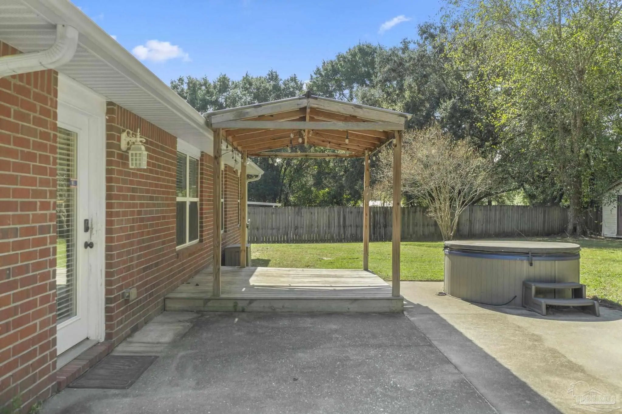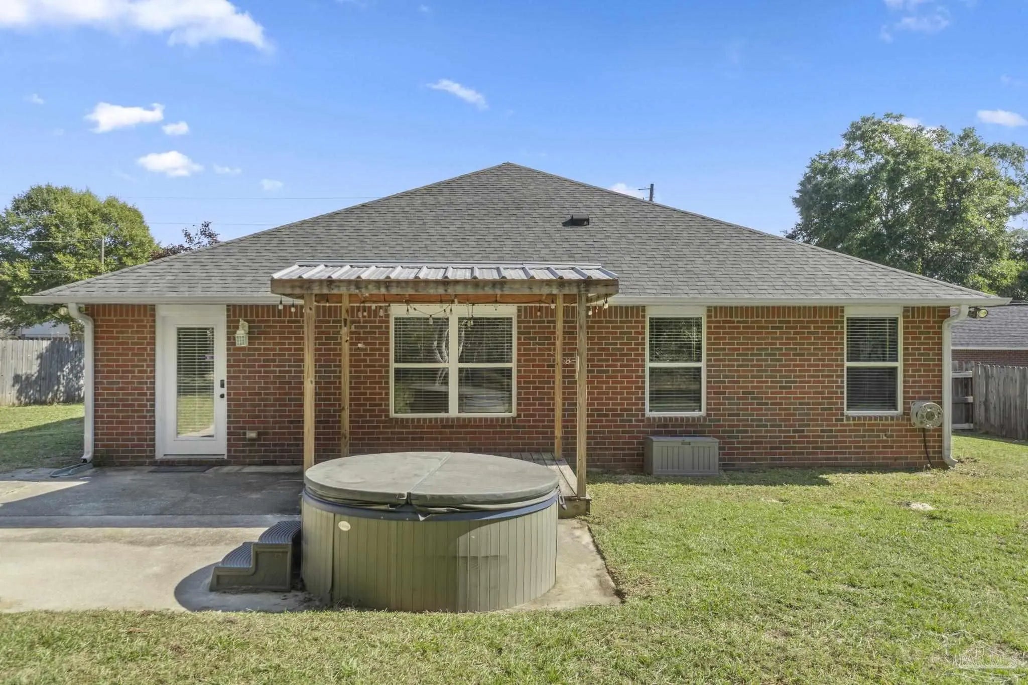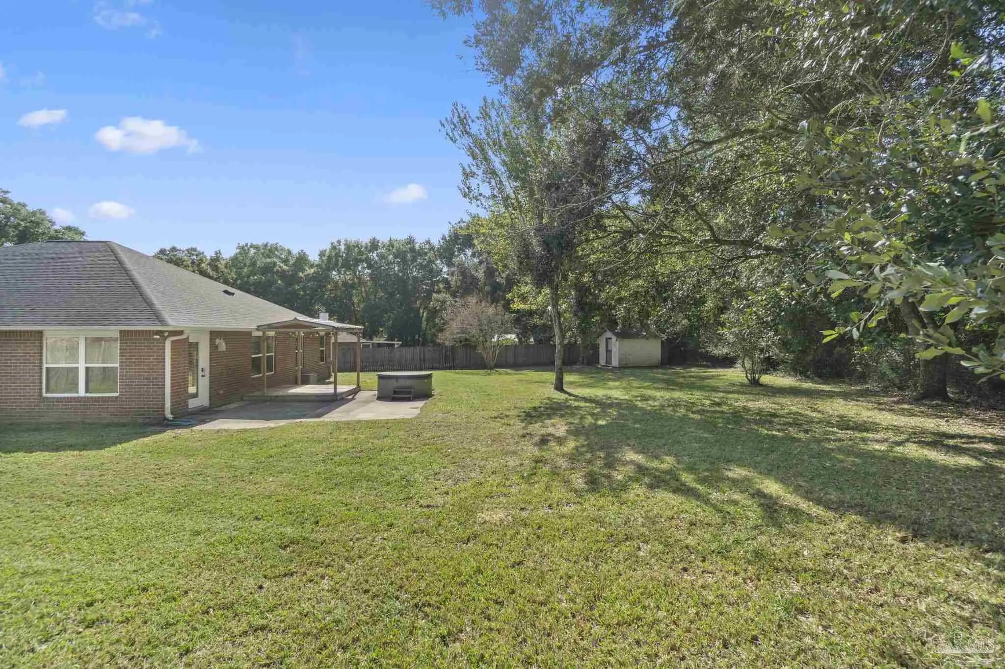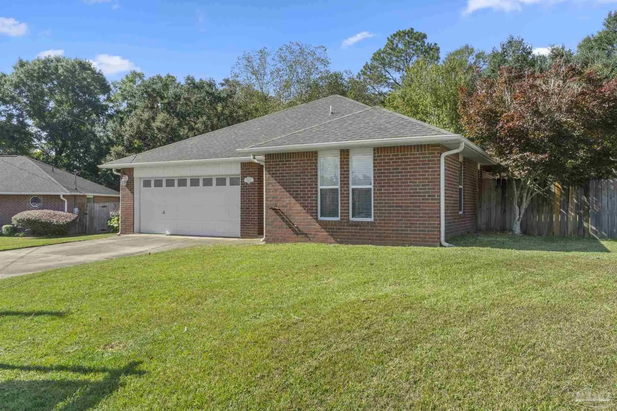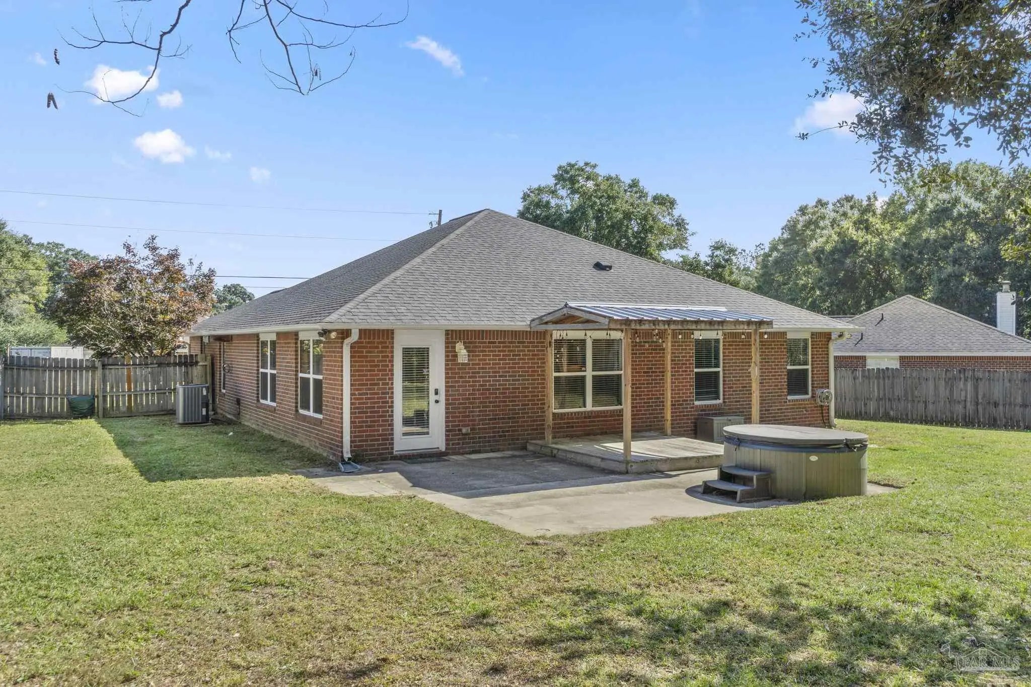Step inside and be greeted by a great, open living space designed for both relaxation & entertaining. The spacious living room flows seamlessly into the dining area and kitchen, creating the perfect layout for gatherings with family & friends. Features include: trey ceiling in the living room, recessed lighting, tiled kitchen & bathrooms, vinyl plank flooring in the living areas and primary bedroom, 2 car garage, whole house gas Generac generator, sprinkler system, covered patio, hot tub, storage shed and fully fenced yard. Publix, Walmart and many eating places are nearby! This move in ready home offers quick access to everything Pensacola has to offer