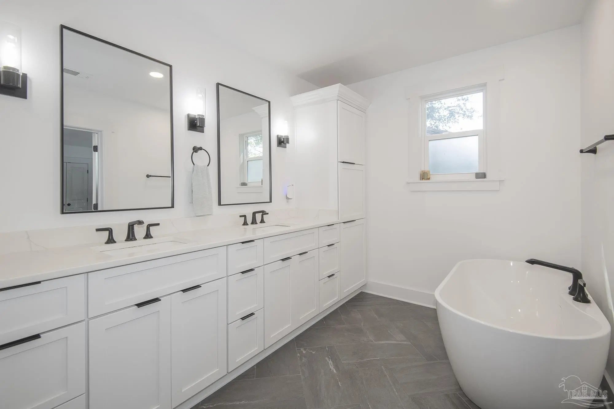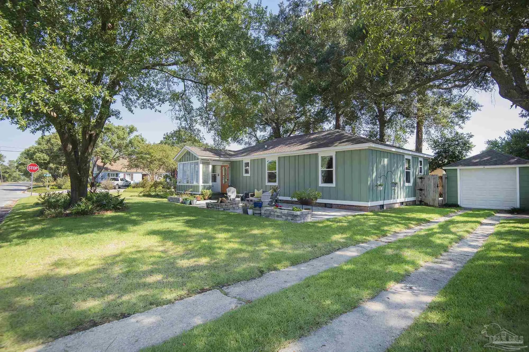 East Hill Home with Extensive Remodel 2023 - across from park corner lot at 19th Ave. & Yonge St. 3 Bedrooms and 2 Full Baths, 1,557 square feet. New Roof, One Car garage, ALL NEW HIGH END CUSTOM KITCHEN (gutted &rebuilt by custom builder) as well as new lovely bright MASTER BATHROOM, ALL NEW Electrical, NEW Plumbing in accessible areas, NEW WINDOWS, Cast iron pipes replaced in crawl space. ALL NEW HARDIE PLANK EXTERIOR SIDING. The light and white tones in new Kitchen with upscale tile, stainless appliances, gas stove, soft close new cabinets, pull out shelves in pantry, built in spice rack, white quartz countertops, coffer bar, new fixtures, tile backsplash, and farm sink. New stack washer/dryer. NEW GEOTHERMAL Heating/Cooling AC system, NEW tankless hot water, empire zoysa grass and landscaping, new paved patio front and back, treatment system for pest control install. Encapsulated crawl space with remaining 2 years for annual dehumidification and service inspections. This home is charming, complete with separate dining/living area and enclosed Florida room facing well managed Zamora Park! The proximity of this home to grand Bayview park is walking distance, to historic 12th Avenue corridor, shops, breweries, restaurants, and Bayou Texar make this home truly central to East Hill neighborhood. Hurricane protection for windows and doors. Exterior siding also has new added wall insulation. Owner added over $280,000 in renovations. This home is move in ready and high quality craftmanship, well thought out and great floor plan. Master suite is private from other 2 rooms that share a full bathroom. Enclosed Florida Room faces the park, great for plants and morning sun. The front paved patio has built in firepit and lovely landscape. The home is ready to move into and one that you would be proud to call home. Directly across from Zamora Park w/ paths, basketball& playsets! This home is classic East Hill!