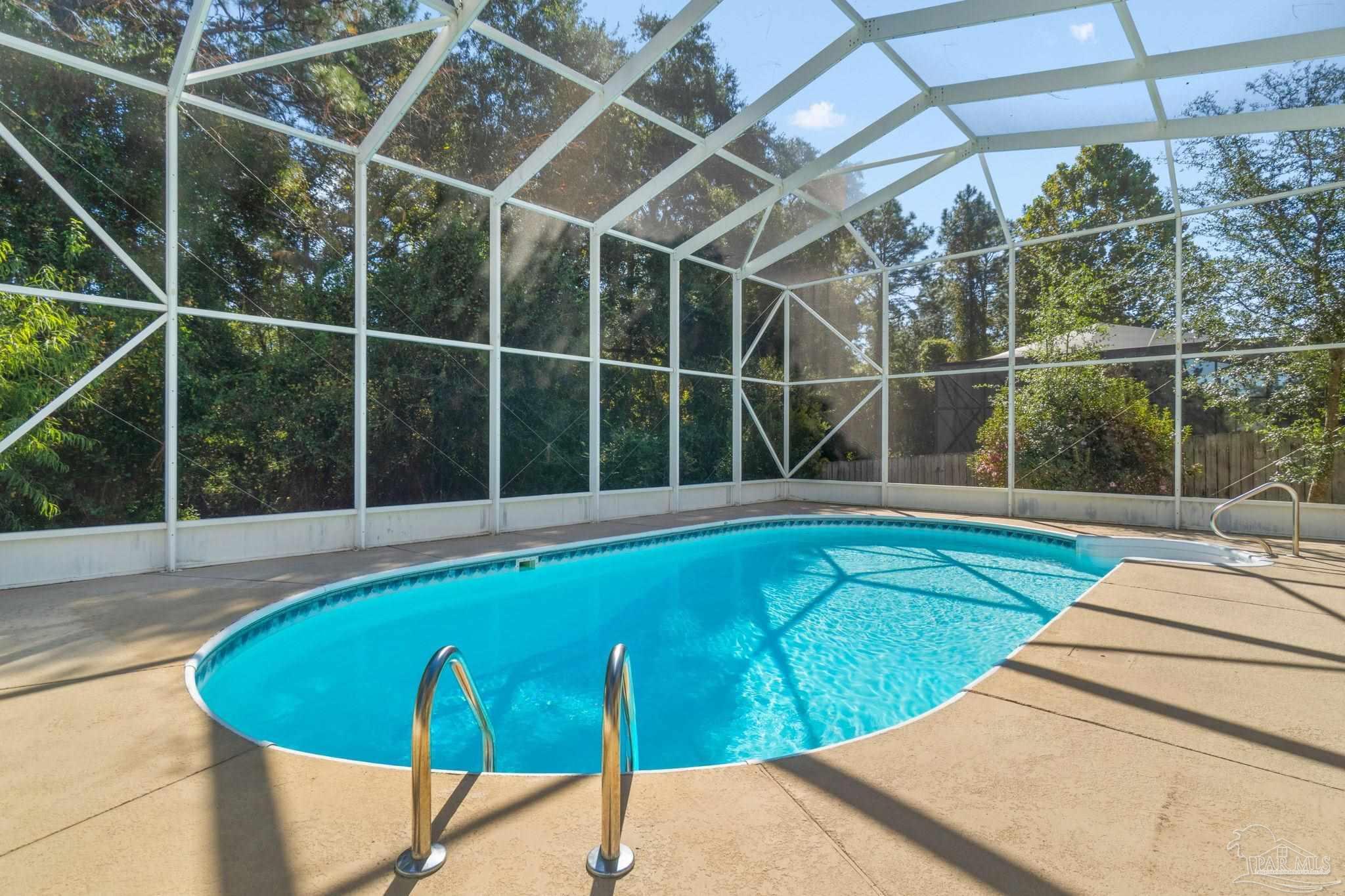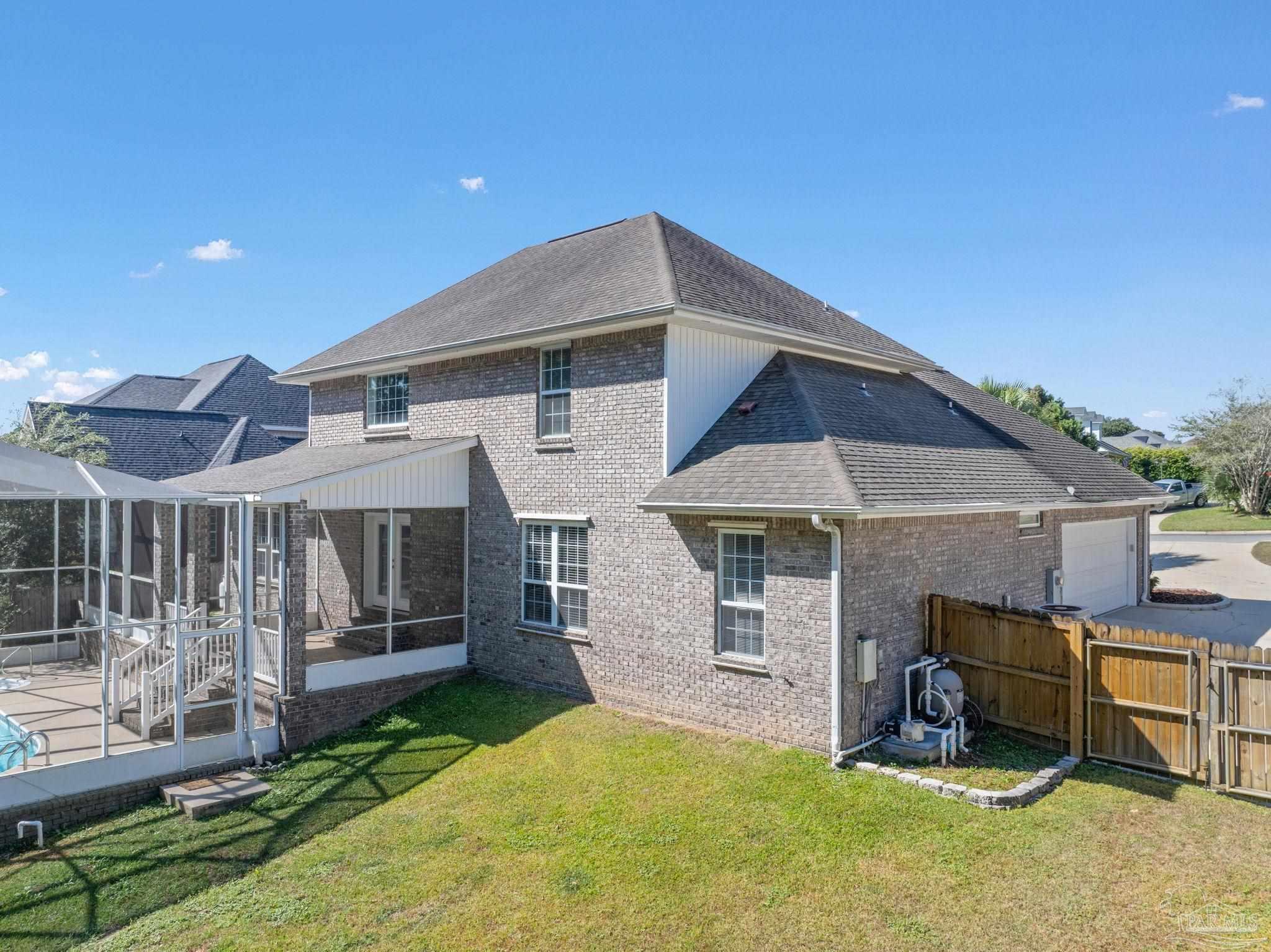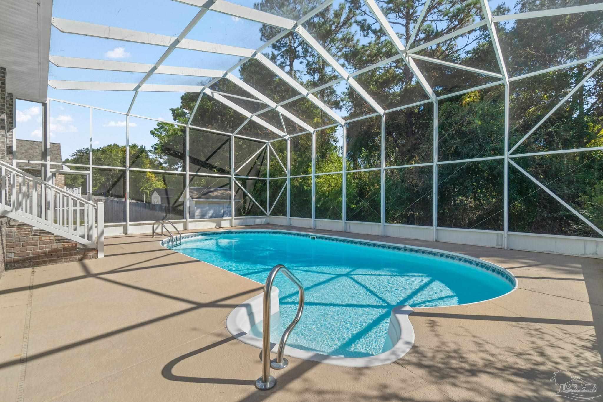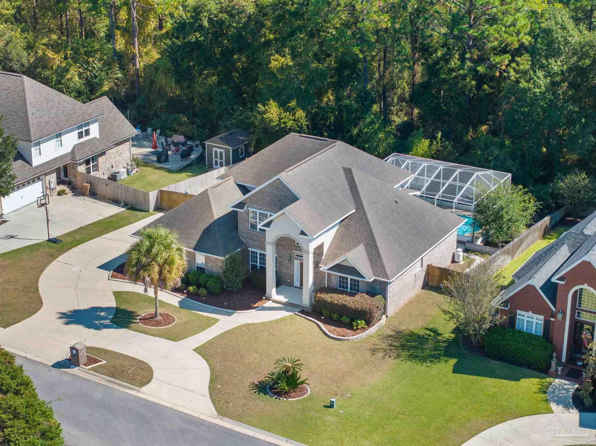 Don’t miss this exceptional custom home with a screened-in pool in the highly sought-after Hammersmith subdivision. From the moment you enter, you’ll be impressed by soaring 18-foot ceilings, elegant crown molding, and wide baseboards that highlight the home’s craftsmanship. The main living areas feature custom ceramic tile flooring and a spacious great room with a gas fireplace and built-in entertainment unit—perfect for relaxing or hosting family and friends. This thoughtfully designed split floor plan offers both comfort and privacy. The master suite and a fourth bedroom with an adjacent full bath are located on the main level, while two additional bedrooms and a full bath are upstairs. The luxurious master suite features dual vanities, an oversized walk-in closet, a whirlpool garden tub framed by privacy block glass, and a separate shower. The gourmet kitchen is a standout, featuring Corian countertops, a raised breakfast bar overlooking a center island with a second sink, a walk-in pantry, and a convenient built-in workstation. Across the foyer, a spacious 16 x 11 office provides the perfect work-from-home setup or study space. Additional highlights include a built-in central vacuum system, a circular driveway, and an oversized side-entry garage designed for large vehicles. Sitting on a .33-acre lot and zoned for the desirable Dixon, Sims, and Pace schools, this home combines comfort, quality, and lifestyle—complete with your own private pool retreat.