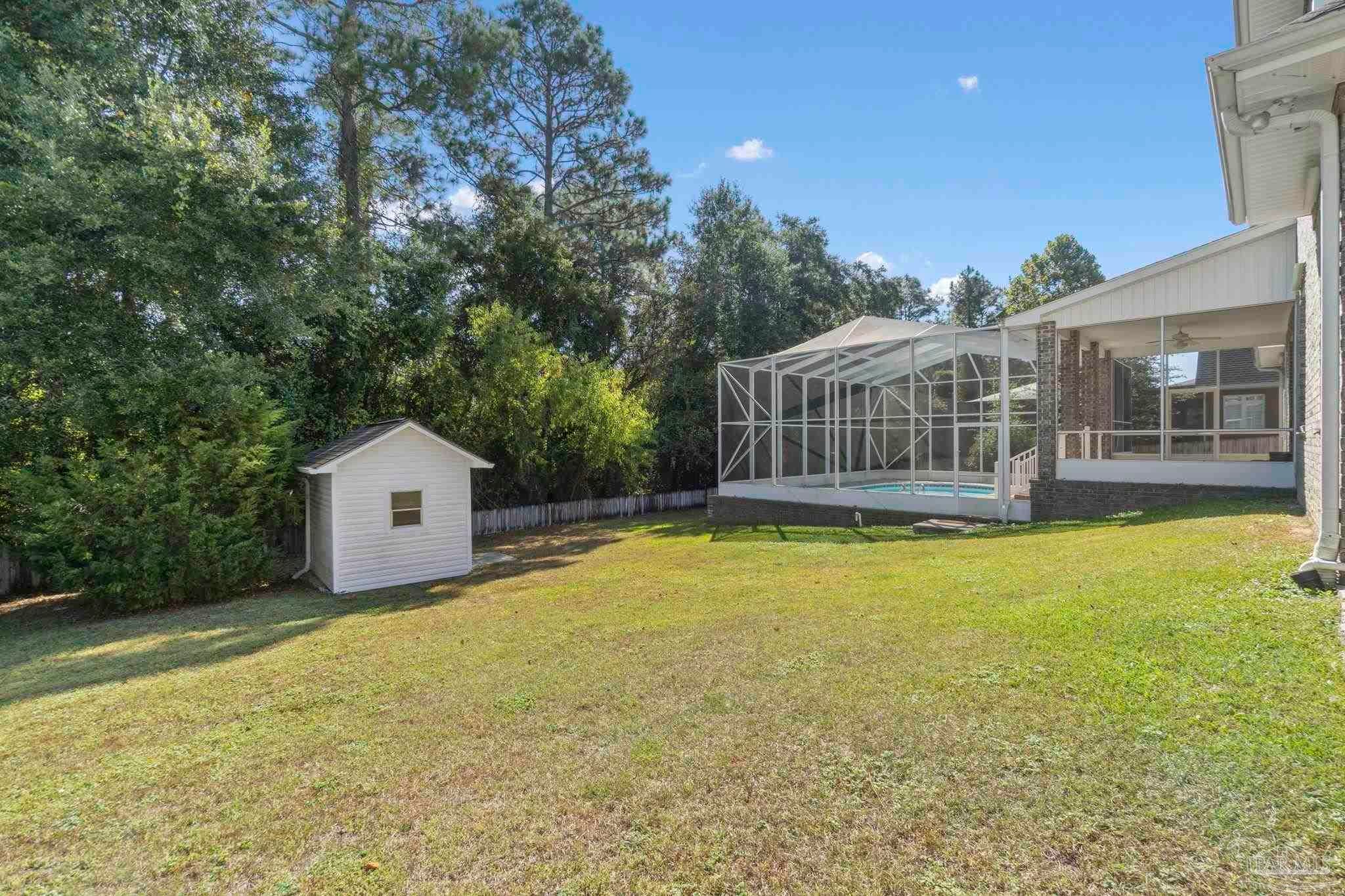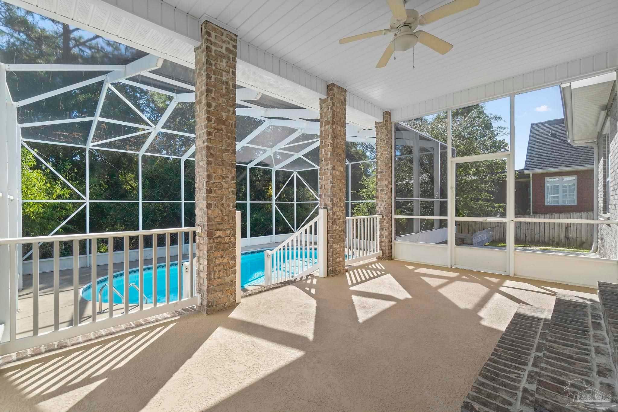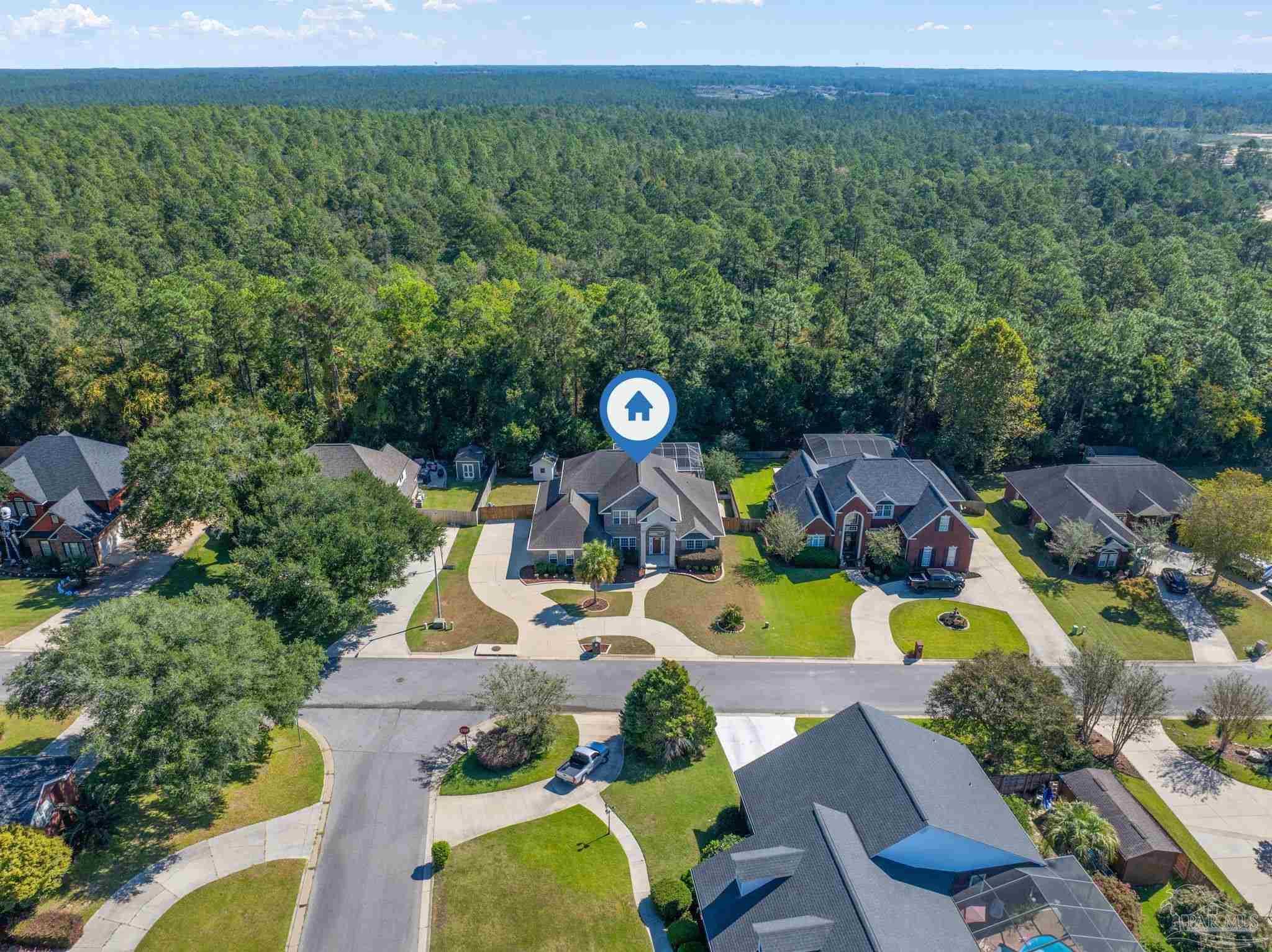 Don’t miss this exceptional custom home with a screened-in pool in the highly sought-after Hammersmith subdivision. From the moment you enter, you’ll be impressed by soaring 18-foot ceilings, elegant crown molding, and wide baseboards that highlight the home’s craftsmanship. The main living areas feature custom ceramic tile flooring and a spacious great room with a gas fireplace and built-in entertainment unit—perfect for relaxing or hosting family and friends. This thoughtfully designed split floor plan offers both comfort and privacy. The master suite and a fourth bedroom with an adjacent full bath are located on the main level, while two additional bedrooms and a full bath are upstairs. The luxurious master suite features dual vanities, an oversized walk-in closet, a whirlpool garden tub framed by privacy block glass, and a separate shower. The gourmet kitchen is a standout, featuring Corian countertops, a raised breakfast bar overlooking a center island with a second sink, a walk-in pantry, and a convenient built-in workstation. Across the foyer, a spacious 16 x 11 office provides the perfect work-from-home setup or study space. Additional highlights include a built-in central vacuum system, a circular driveway, and an oversized side-entry garage designed for large vehicles. Sitting on a .33-acre lot and zoned for the desirable Dixon, Sims, and Pace schools, this home combines comfort, quality, and lifestyle—complete with your own private pool retreat.