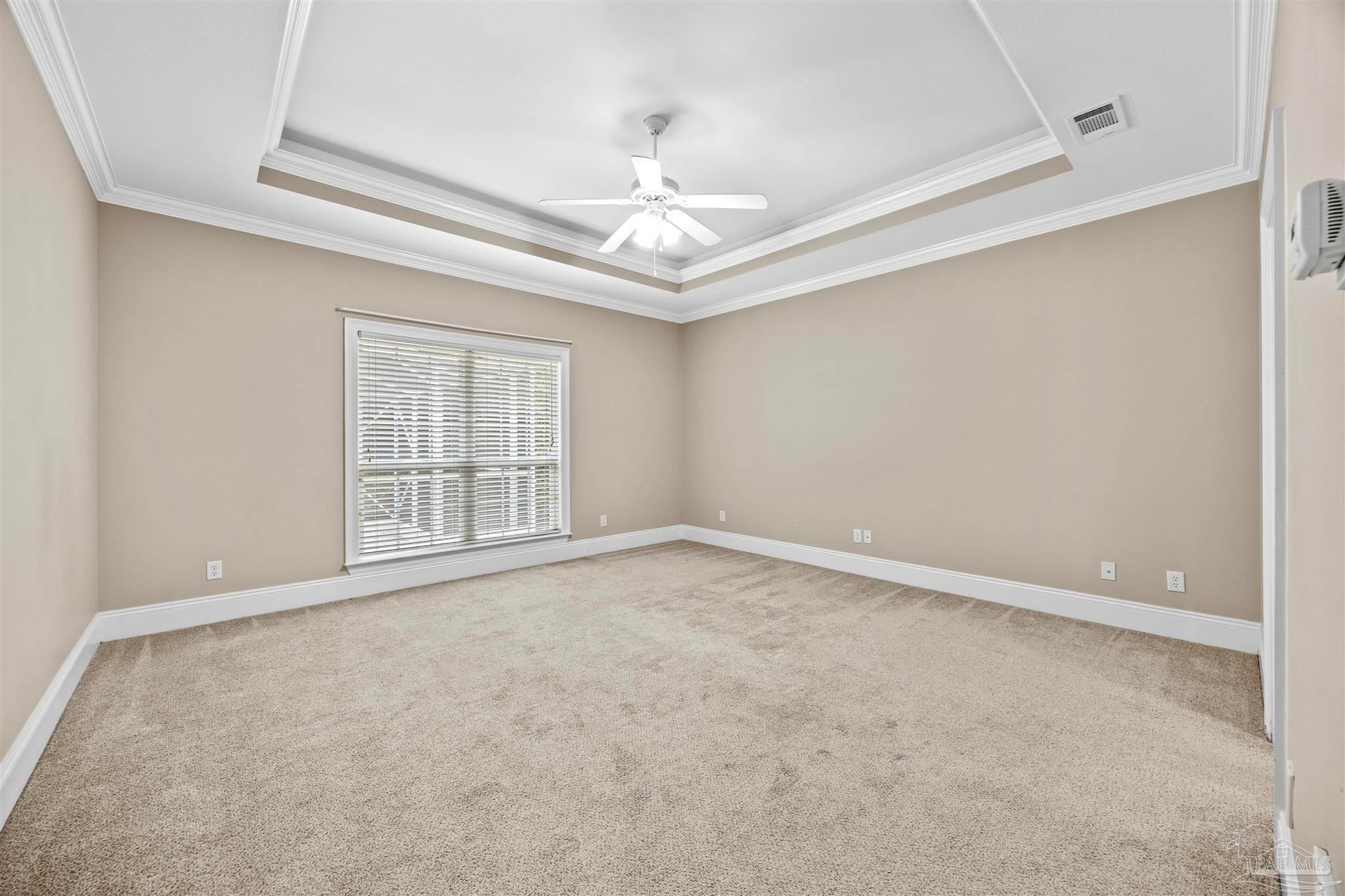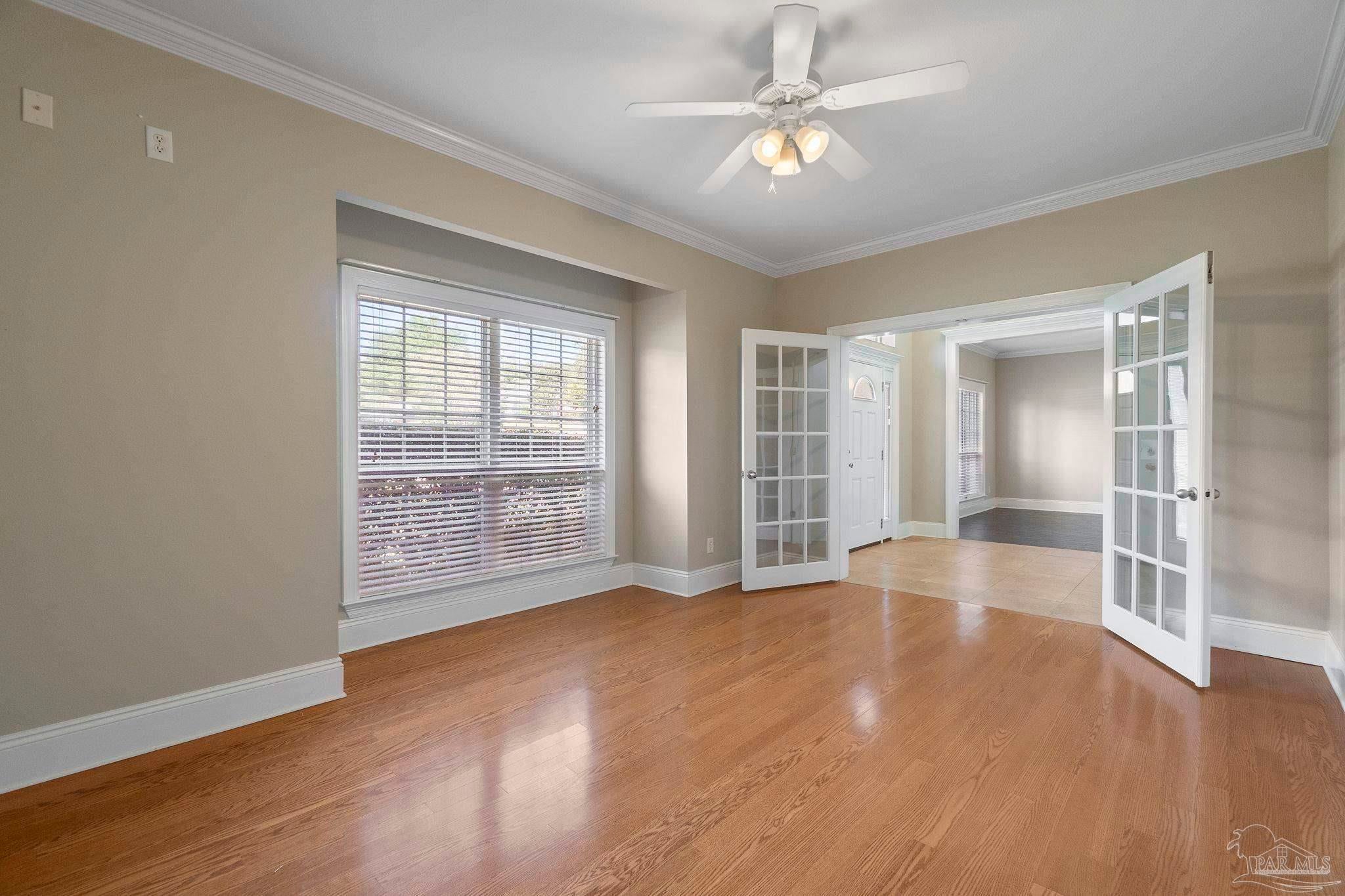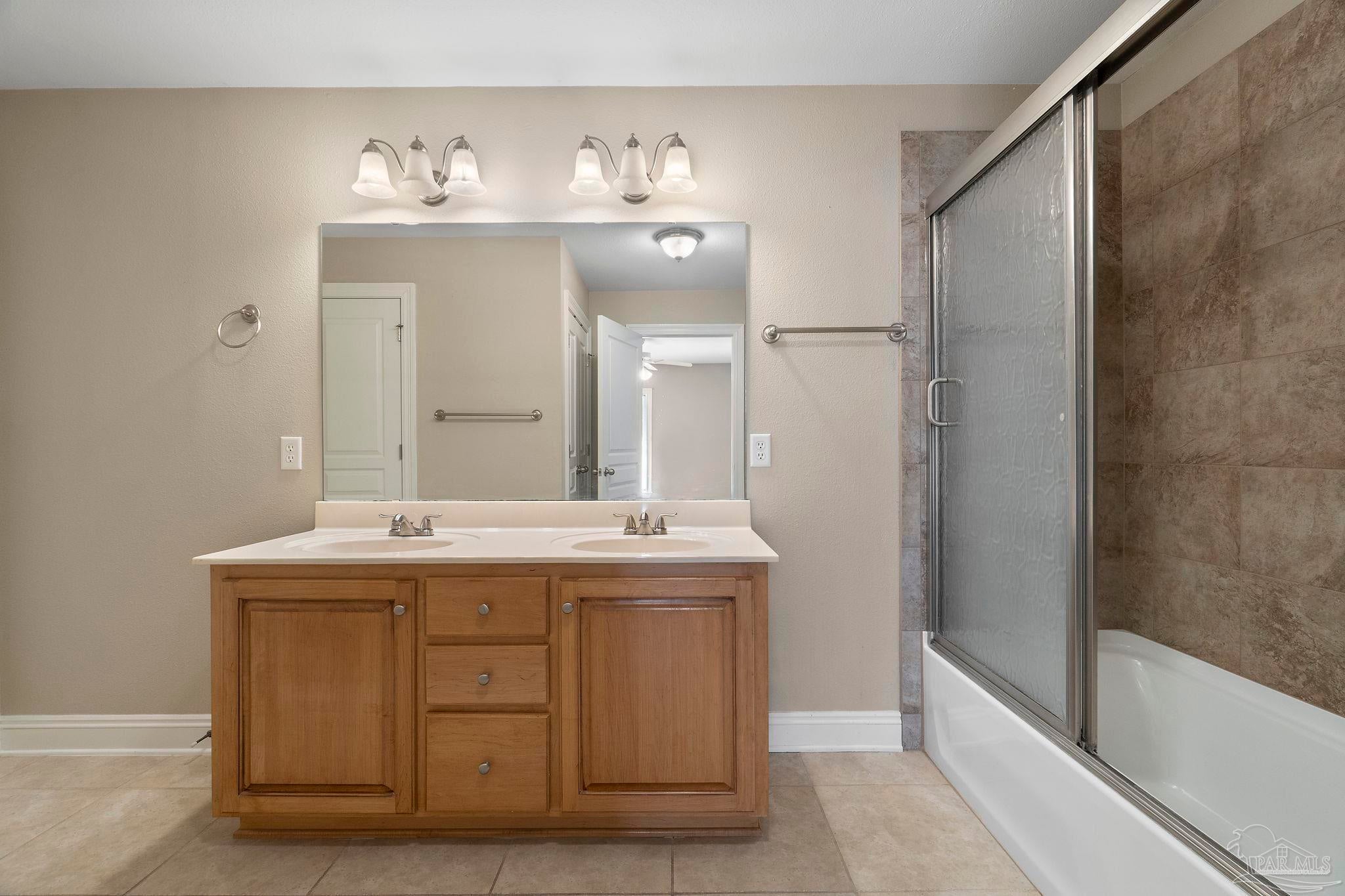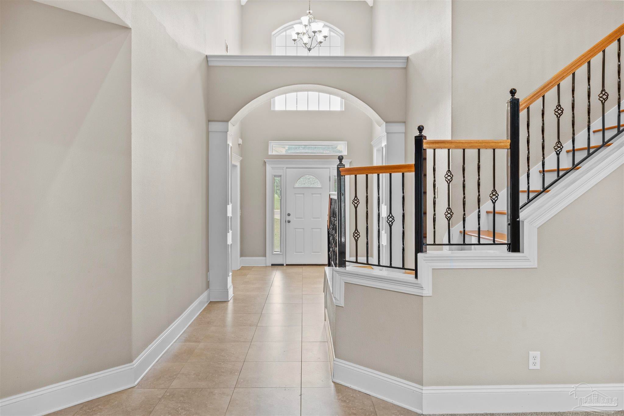 Don’t miss this exceptional custom home with a screened-in pool in the highly sought-after Hammersmith subdivision. From the moment you enter, you’ll be impressed by soaring 18-foot ceilings, elegant crown molding, and wide baseboards that highlight the home’s craftsmanship. The main living areas feature custom ceramic tile flooring and a spacious great room with a gas fireplace and built-in entertainment unit—perfect for relaxing or hosting family and friends. This thoughtfully designed split floor plan offers both comfort and privacy. The master suite and a fourth bedroom with an adjacent full bath are located on the main level, while two additional bedrooms and a full bath are upstairs. The luxurious master suite features dual vanities, an oversized walk-in closet, a whirlpool garden tub framed by privacy block glass, and a separate shower. The gourmet kitchen is a standout, featuring Corian countertops, a raised breakfast bar overlooking a center island with a second sink, a walk-in pantry, and a convenient built-in workstation. Across the foyer, a spacious 16 x 11 office provides the perfect work-from-home setup or study space. Additional highlights include a built-in central vacuum system, a circular driveway, and an oversized side-entry garage designed for large vehicles. Sitting on a .33-acre lot and zoned for the desirable Dixon, Sims, and Pace schools, this home combines comfort, quality, and lifestyle—complete with your own private pool retreat.