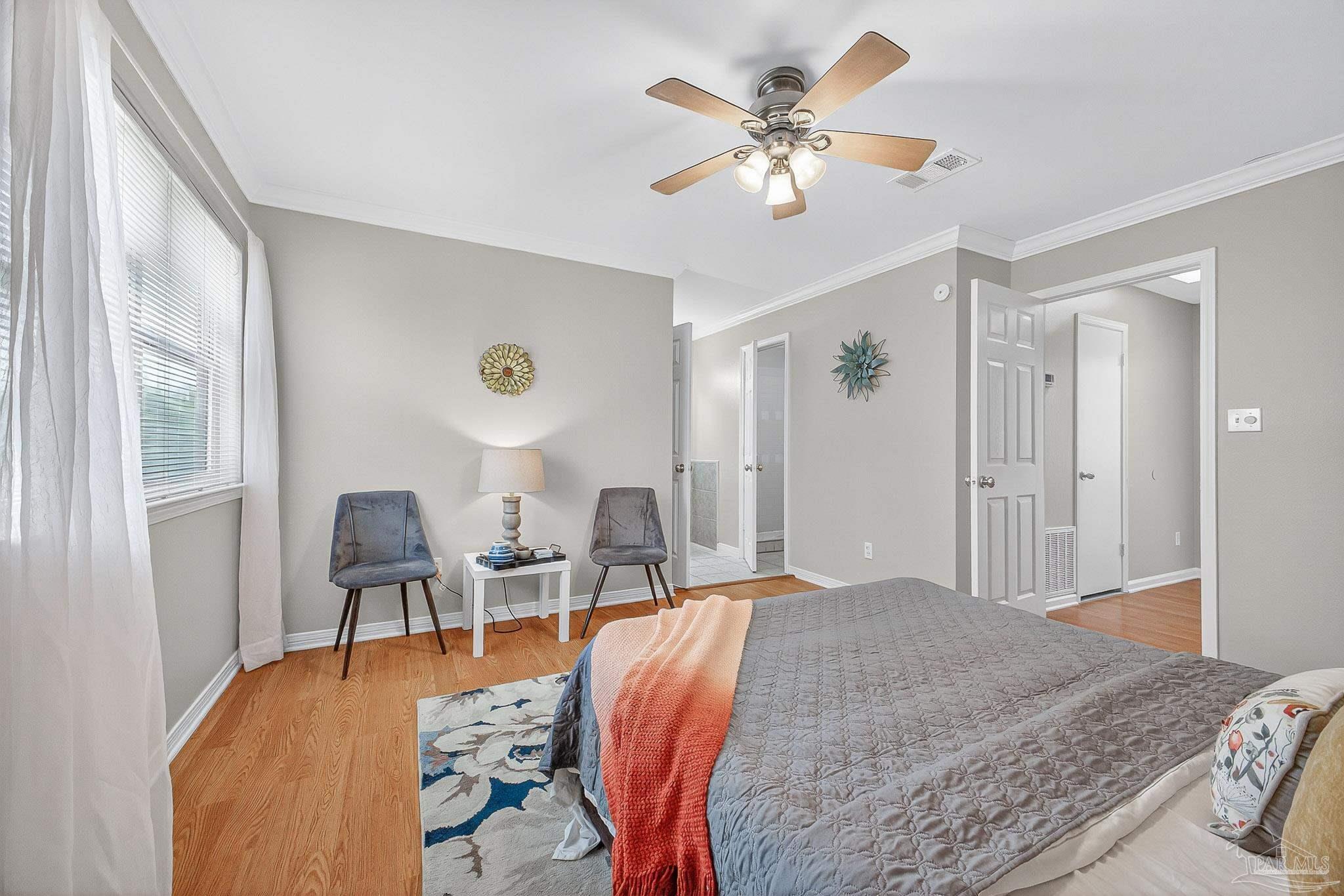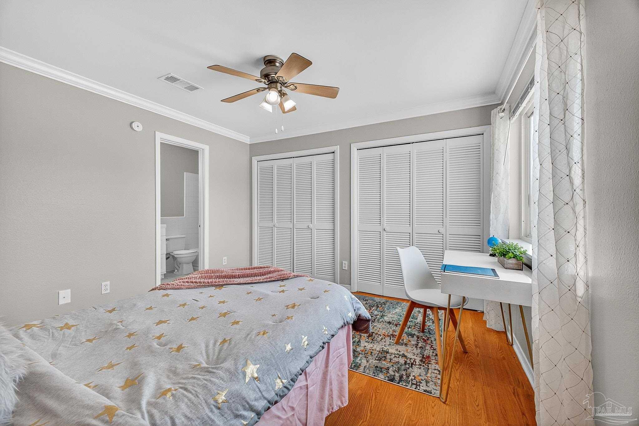 Welcome home! Adorable 2 bedroom 2.5 bath townhome for sale in Pensacola! Just minutes to the Navy base, minutes to Perdido Key, and quick access to shopping and dining. This charming two story townhome features an open floor plan with breakfast bar and living/dining combo. New stainless steel appliances. Fresh paint on the interior. One car garage with additional space in the garage for laundry. Downstairs features a half bath, spacious living room and dining area. Double French doors lead to an open, fenced-in patio area. No lawn care needed here! The HOA maintains the grass. Upstairs features DOUBLE master bedrooms! Each bedroom has its own attached bedroom, plus tons of closet space.