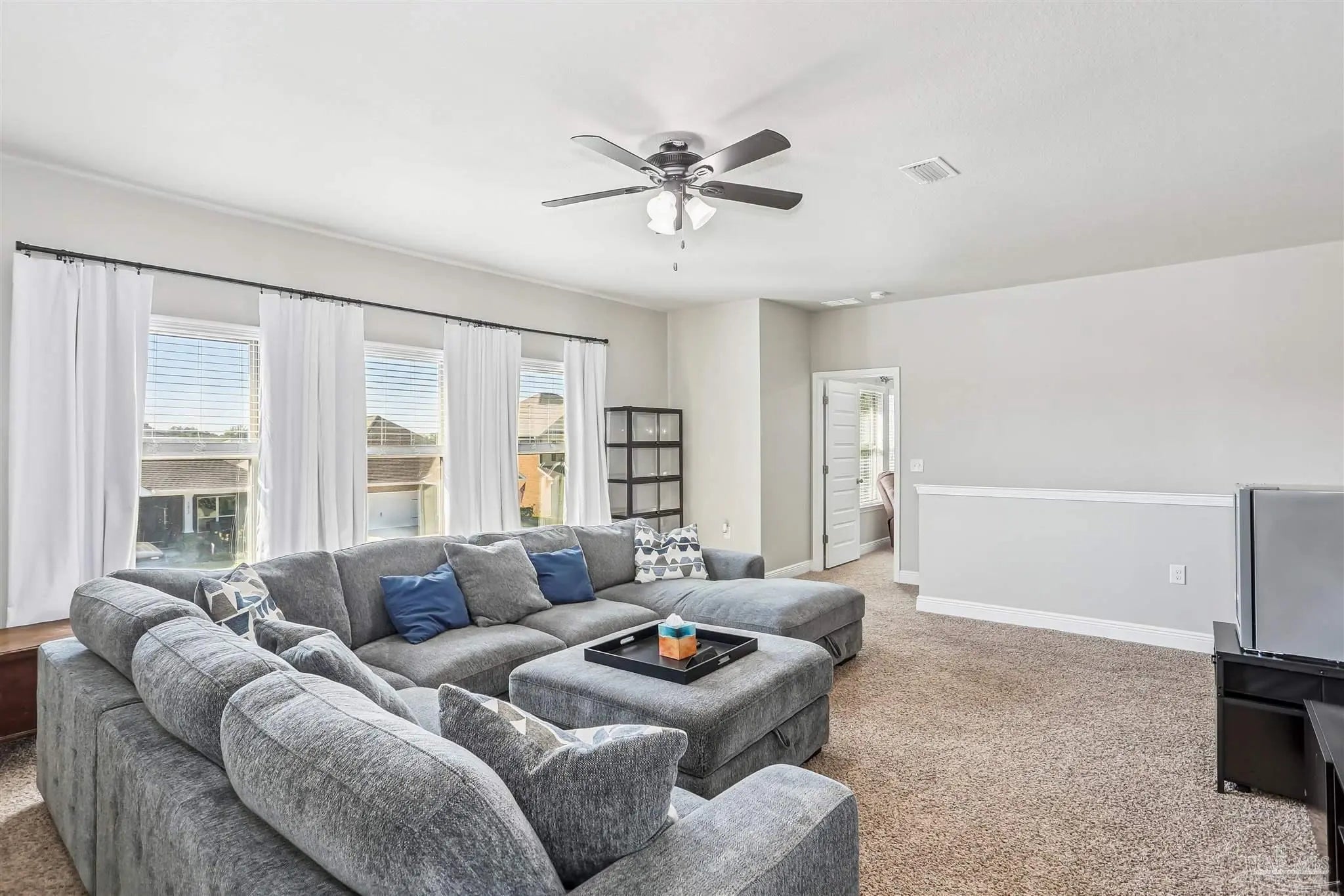 Discover this spacious 2,482 sq ft single-family gem in the heart of Pace, FL. With 4 bedrooms and 3.5 bathrooms, this home offers comfort, functionality, and thoughtful upgrades throughout. Step into a beautifully maintained interior featuring custom blinds and ceiling fans in every room—including the screened-in porch for year-round comfort. The professionally installed full gutter system and automatic irrigation system make outdoor maintenance a breeze, while the fenced backyard and screened patio provide the perfect space for relaxing or entertaining. Both the patio and garage floors are coated with durable NINJA coating for a sleek, easy-to-clean finish. Located just minutes from top-rated schools, Benny Russell Park, and many shopping options, as well as an easy drive to Whiting Field or downtown Pensacola. Nestled in a quiet, welcoming neighborhood, it’s the perfect blend of convenience and charm. Don’t miss your chance to own this spacious home in one of Pace’s most desirable areas!