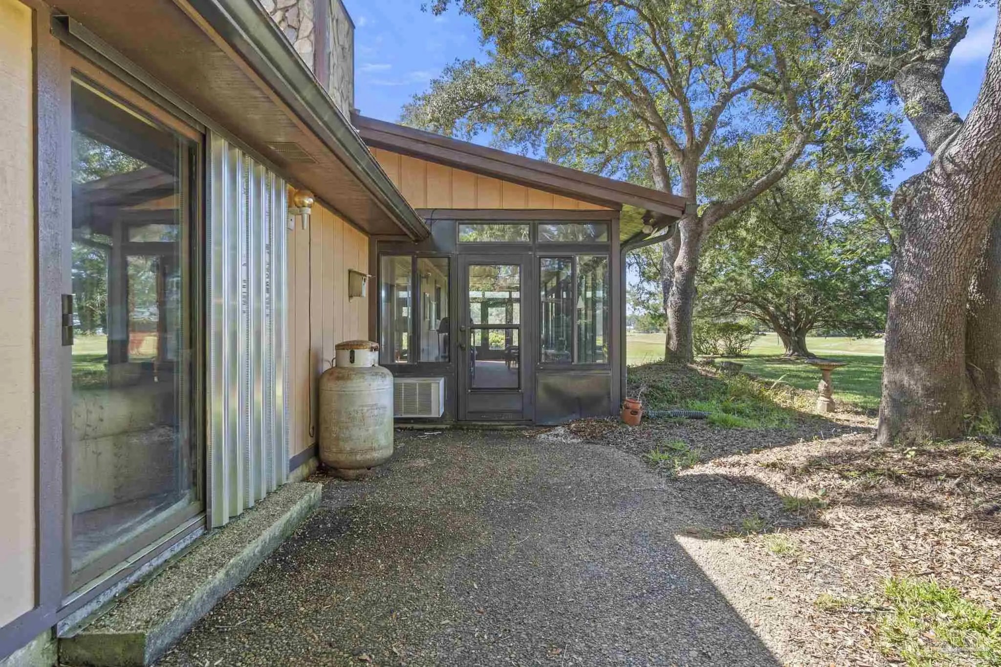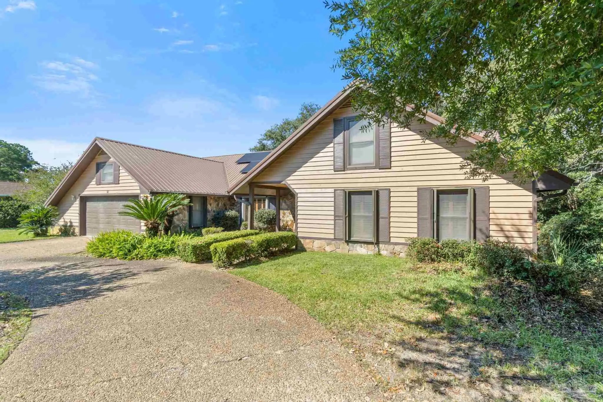 MOTIVATED SELLER - BRING YOUR OFFER! Welcome Home to Perdido Bay Country Club Estates — one of Perdido’s most sought-after golf communities! Whether you’re looking to make Pensacola your permanent home or seeking a great investment property, look no further! This charming 1984 home is full of character and good bones, perfectly positioned on the 14th hole with relaxing views of golfers and deer from your sunroom. Inside, soaring vaulted ceilings and a cozy stone fireplace create a warm, inviting atmosphere. The spacious kitchen flows easily into open living areas—ideal for gatherings with family and friends. The primary suite offers two oversized walk-in closets and a bath with a soaking tub and separate shower. Two additional bedrooms and another full bath provide plenty of space for guests. Recent updates include a metal roof (2019) with solar panels, new HVAC (2024), and water heater (2023). A two-car garage adds extra storage and convenience. Just minutes from the beaches, restaurants, and entertainment, this home combines timeless charm, a peaceful golf course setting, and solid construction—ready for your personal touch to make it shine!