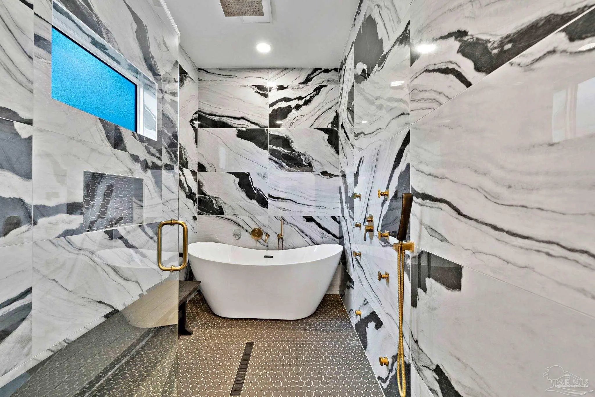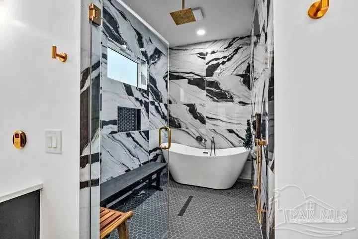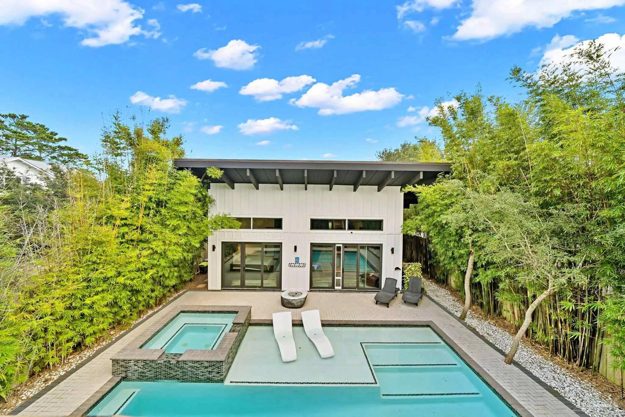 Located in the highly sought-after Seagrove Beach community with no HOA, 94 S Gulf Drive is an impeccably designed, custom-built modern masterpiece offering refined single-level living and total privacy. The chef’s dream kitchen features a 12-foot island, Italian-made range & oven, butler’s pantry, quartz countertops, and custom cabinetry. Light fills the open, airy floor plan with soaring ceilings and designer finishes. The primary suite delivers a spa experience with a 7-foot soaking tub and aromatherapy steam shower featuring eight shower heads and a rain feature. Every bath is fully tiled and wheelchair accessible. Outdoor living includes a screened-in porch, resort-style pool with 10-person hot tub, and gas fire pit, all within a completely private backyard sanctuary. Golf cart-friendly, minutes from the beach, dining, and boutiques—this home defines modern coastal luxury. ***Buyer to verify all information, features and dimensions***