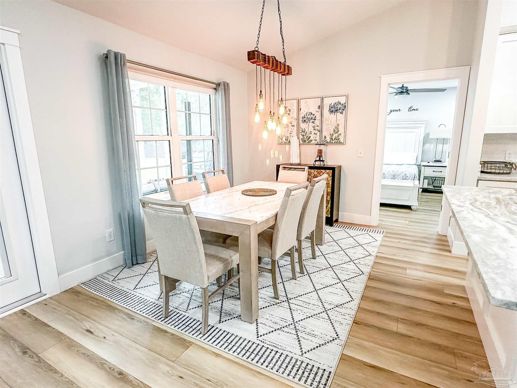 This pristine move in ready home, located in the desirable Holley by the Sea community, is just minutes from the stunning Emerald Coast beaches. Beautifully renovated from top to bottom, it’s perfect as a primary residence or a high-performing Airbnb investment. The kitchen is a cook’s dream, featuring all-new appliances—including an induction stove with convection oven. The luxurious primary suite offers a spa-like ensuite with double vanity and relaxing garden tub. A spacious office provides an ideal at-home workspace, while the covered, screened-in patio is the perfect place to unwind with a coffee or good book. Step outside to your private backyard oasis with a water feature, firepit, and fully functional large workshop. Major updates include a new roof and HVAC (2018), hot water heater (2020), and full home renovation with patio addition (2021). All furnishings are negotiable offering flexibility for buyers. This turn key treasure is ready for you to call home or a perfect AirBnB!