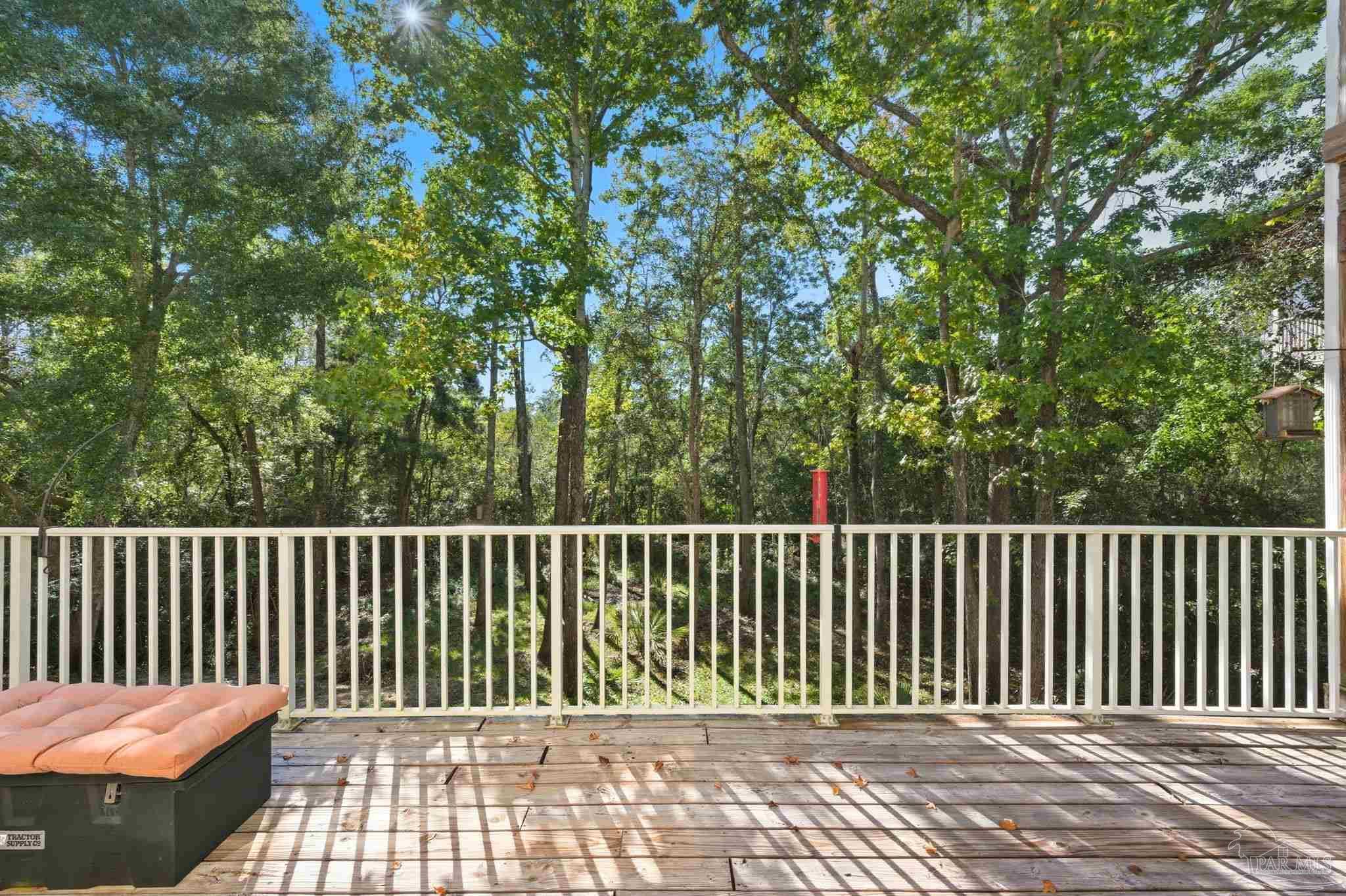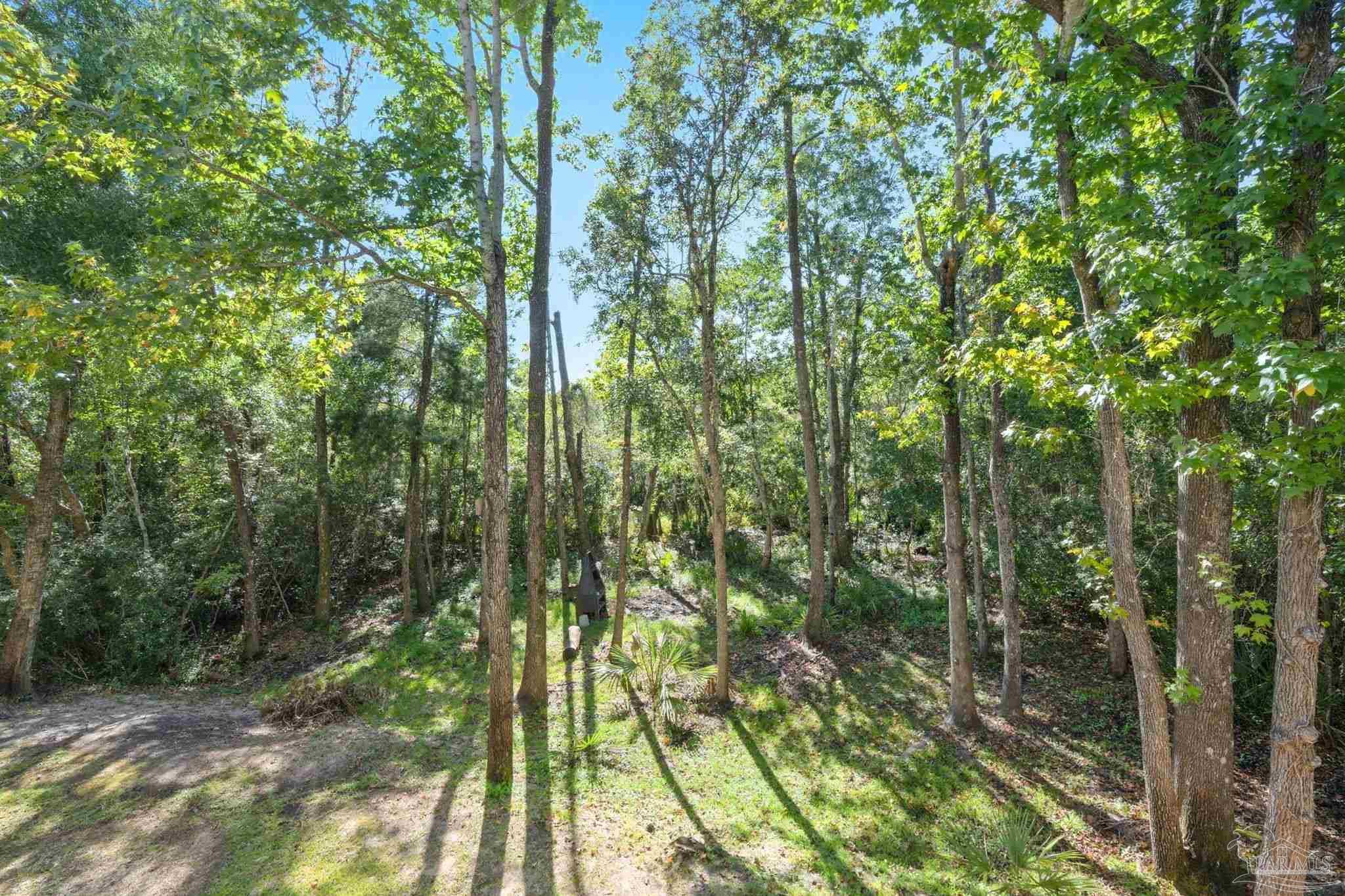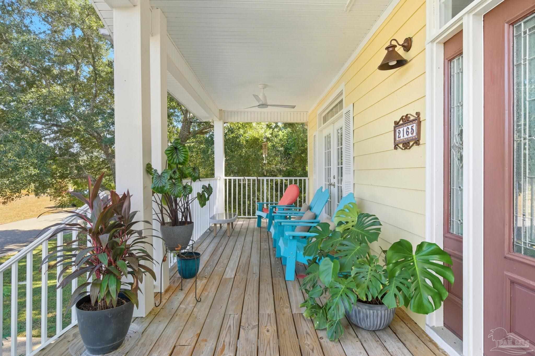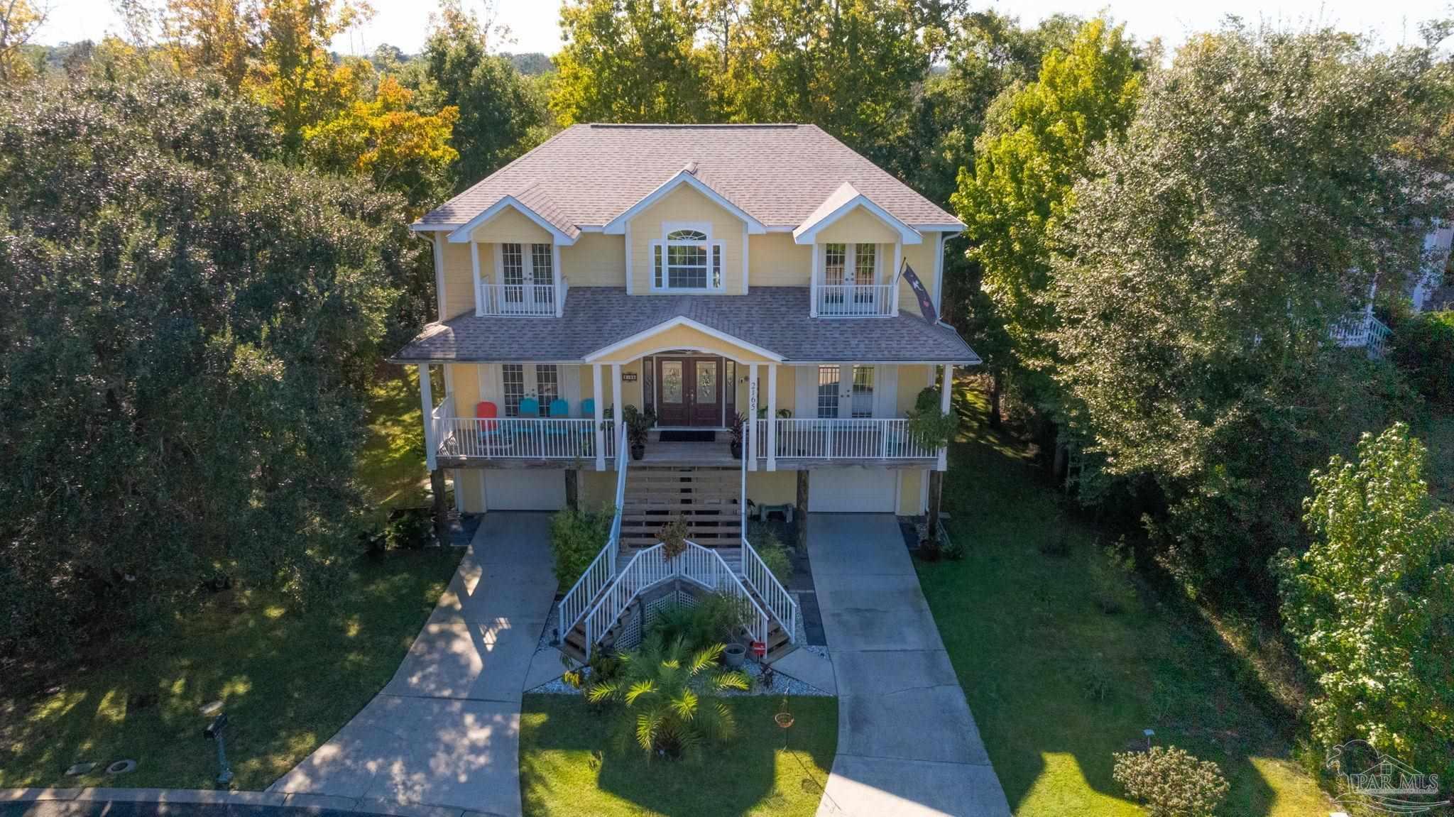 Welcome to 2165 Ander Way, where nature and convenience come together beautifully. Nestled on nearly half an acre (.44 acres) surrounded by lush greenery, this elevated home offers peaceful living with easy access to shopping, dining, and entertainment — plus over 615 DoorDash options when you’d rather stay in. You’ll feel tucked away in your own private oasis while being just minutes from everything. Set among the Escambia River, Ferry Pass, Murphy Cove, and Macky Bayou — all leading into the stunning Escambia Bay — this location is a dream for outdoor enthusiasts who love kayaking, fishing, and exploring Florida’s natural beauty. Step through the elegant double glass doors into a grand foyer with soaring ceilings and timeless details. The open living area centers around a cozy gas fireplace and flows seamlessly into the updated kitchen, complete with stainless steel appliances, granite countertops, rich wood cabinetry, a modern vent hood, and a coveted pot filler — a feature every home chef will love. Upstairs, a spacious second living area opens to its own balcony, providing the perfect flex space for a media room, studio, or home gym. The primary suite offers both a front balcony and a private back deck — perfect for a hot tub or relaxing under the stars. A converted utility closet now serves as a convenient home office, and the home provides plenty of storage throughout. The spacious two-car garage offers ample room for vehicles, tools, and outdoor gear. Outside, enjoy a large covered front porch and an expansive back deck surrounded by mature trees, unique plants, and fruit trees, creating a peaceful, park-like setting. Centrally located — approximately 35 minutes to Pensacola Beach, 40 minutes to Navarre Beach, 25 minutes to Whiting Field, 30 minutes to NAS Pensacola, 45 minutes to Hurlburt Field, and 50 minutes to Eglin AFB — this home truly captures the best of Northwest Florida living.