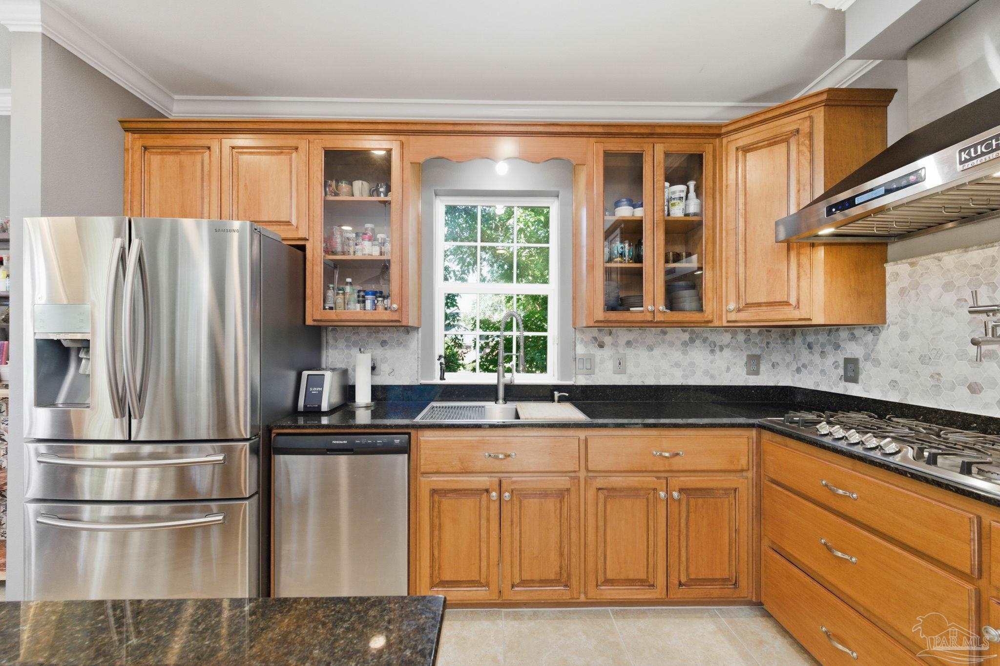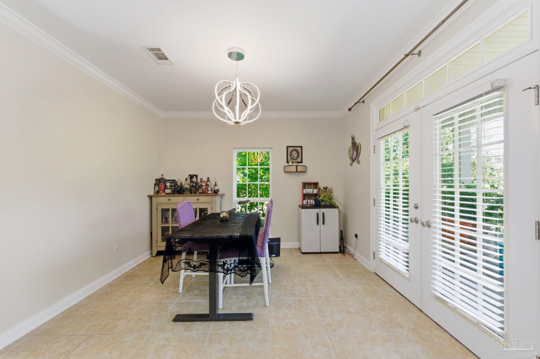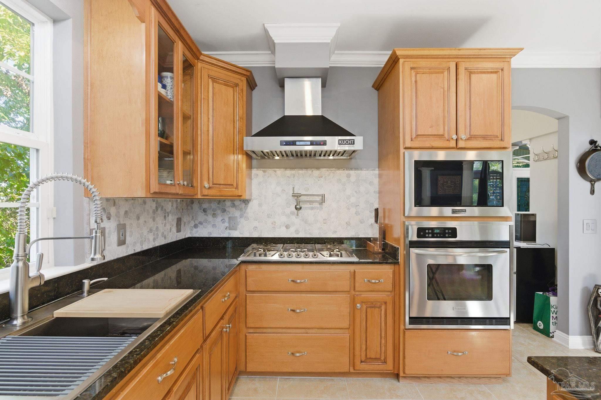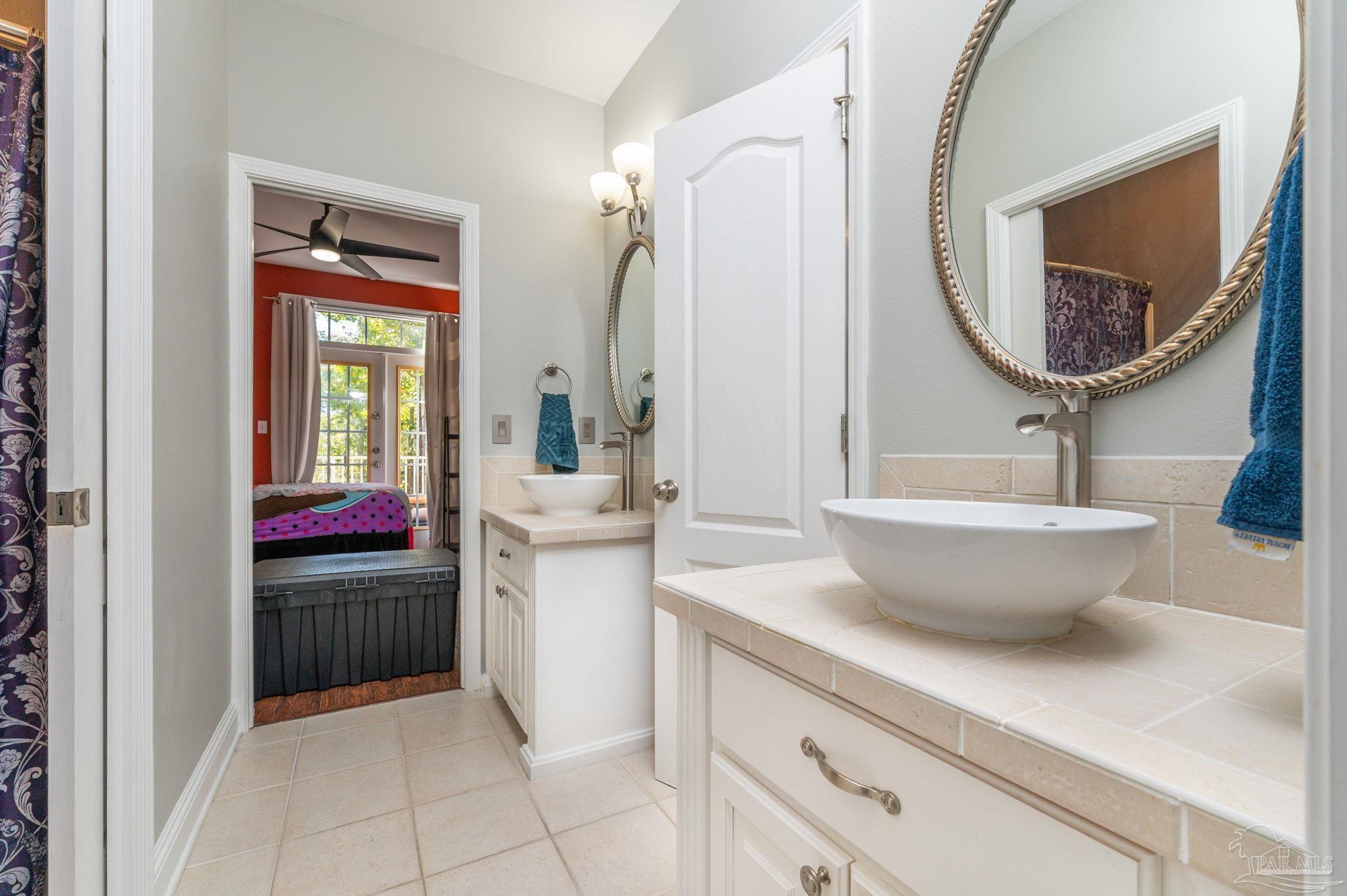 Welcome to 2165 Ander Way, where nature and convenience come together beautifully. Nestled on nearly half an acre (.44 acres) surrounded by lush greenery, this elevated home offers peaceful living with easy access to shopping, dining, and entertainment — plus over 615 DoorDash options when you’d rather stay in. You’ll feel tucked away in your own private oasis while being just minutes from everything. Set among the Escambia River, Ferry Pass, Murphy Cove, and Macky Bayou — all leading into the stunning Escambia Bay — this location is a dream for outdoor enthusiasts who love kayaking, fishing, and exploring Florida’s natural beauty. Step through the elegant double glass doors into a grand foyer with soaring ceilings and timeless details. The open living area centers around a cozy gas fireplace and flows seamlessly into the updated kitchen, complete with stainless steel appliances, granite countertops, rich wood cabinetry, a modern vent hood, and a coveted pot filler — a feature every home chef will love. Upstairs, a spacious second living area opens to its own balcony, providing the perfect flex space for a media room, studio, or home gym. The primary suite offers both a front balcony and a private back deck — perfect for a hot tub or relaxing under the stars. A converted utility closet now serves as a convenient home office, and the home provides plenty of storage throughout. The spacious two-car garage offers ample room for vehicles, tools, and outdoor gear. Outside, enjoy a large covered front porch and an expansive back deck surrounded by mature trees, unique plants, and fruit trees, creating a peaceful, park-like setting. Centrally located — approximately 35 minutes to Pensacola Beach, 40 minutes to Navarre Beach, 25 minutes to Whiting Field, 30 minutes to NAS Pensacola, 45 minutes to Hurlburt Field, and 50 minutes to Eglin AFB — this home truly captures the best of Northwest Florida living.