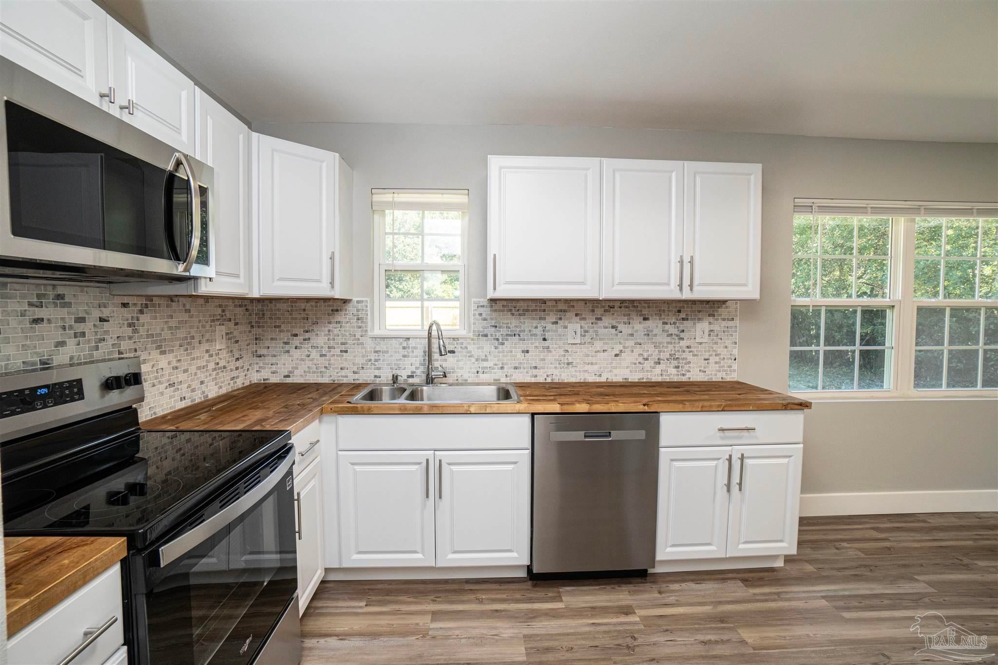 Discover the ultimate blend of function and value in this turnkey, fully remodeled 4-bedroom, 2-bathroom home. Designed for comfortable living, the property delivers on space and modern updates, making it an ideal choice for a variety of buyers. The kitchen and dining area flow beautifully into the living room, creating an open, flexible space that's excellent for daily convenience and entertaining guests. Enjoy the durability and low maintenance of new vinyl flooring installed throughout the house, and the fresh, modern appeal of two beautifully tiled bathrooms. The four spacious bedrooms ensure comfort and flexibility. Includes a utility room with a sink to add convenience to your routine, and a spacious yard ready for outdoor activities. The large driveway provides plentiful parking, and the mature landscaping adds to the curb appeal. Contact us now to learn more about this incredible opportunity, and make this move-in ready home yours!