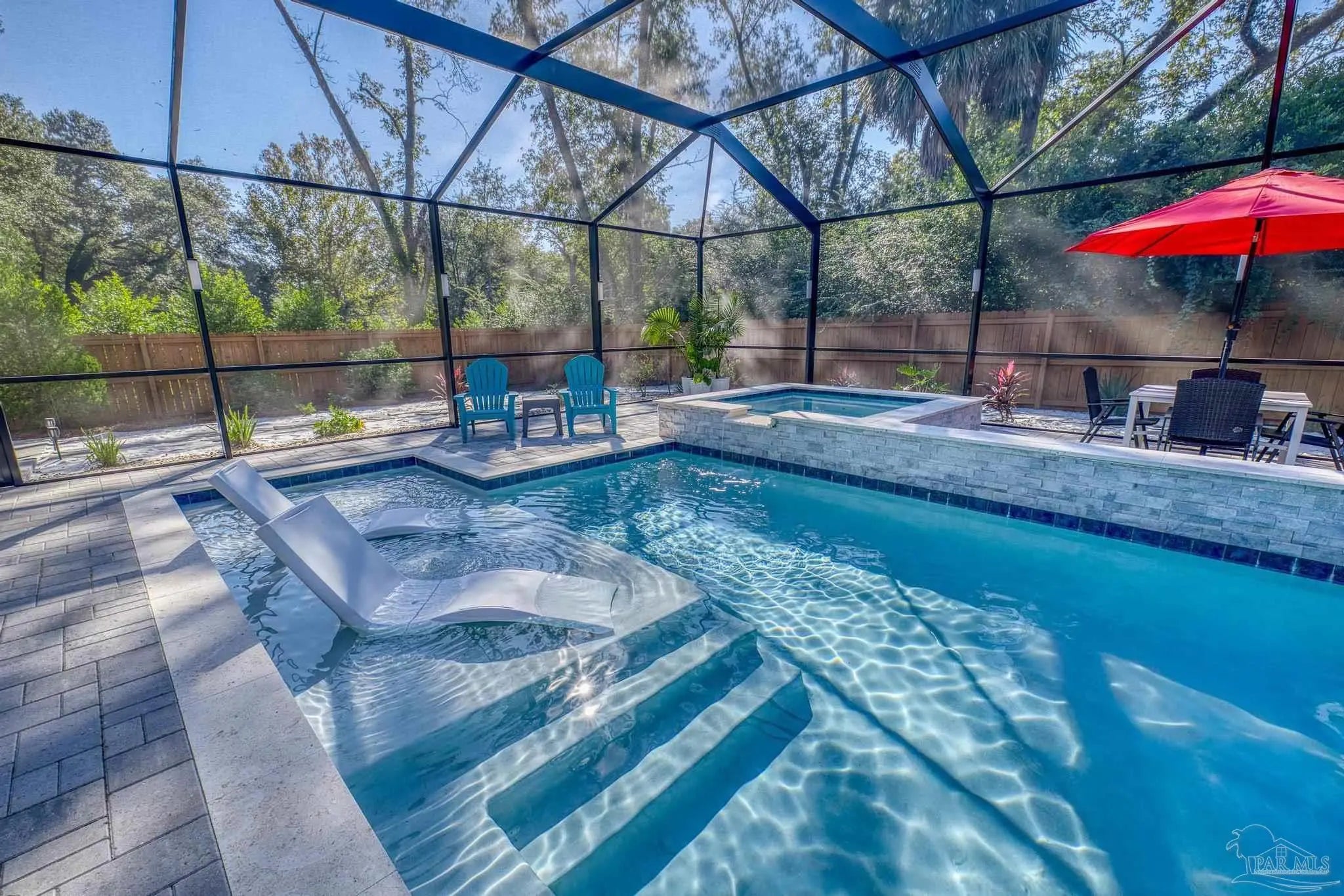- Gunite, In Ground, Pool/Spa Combo, Salt Water, Screen Enclosure