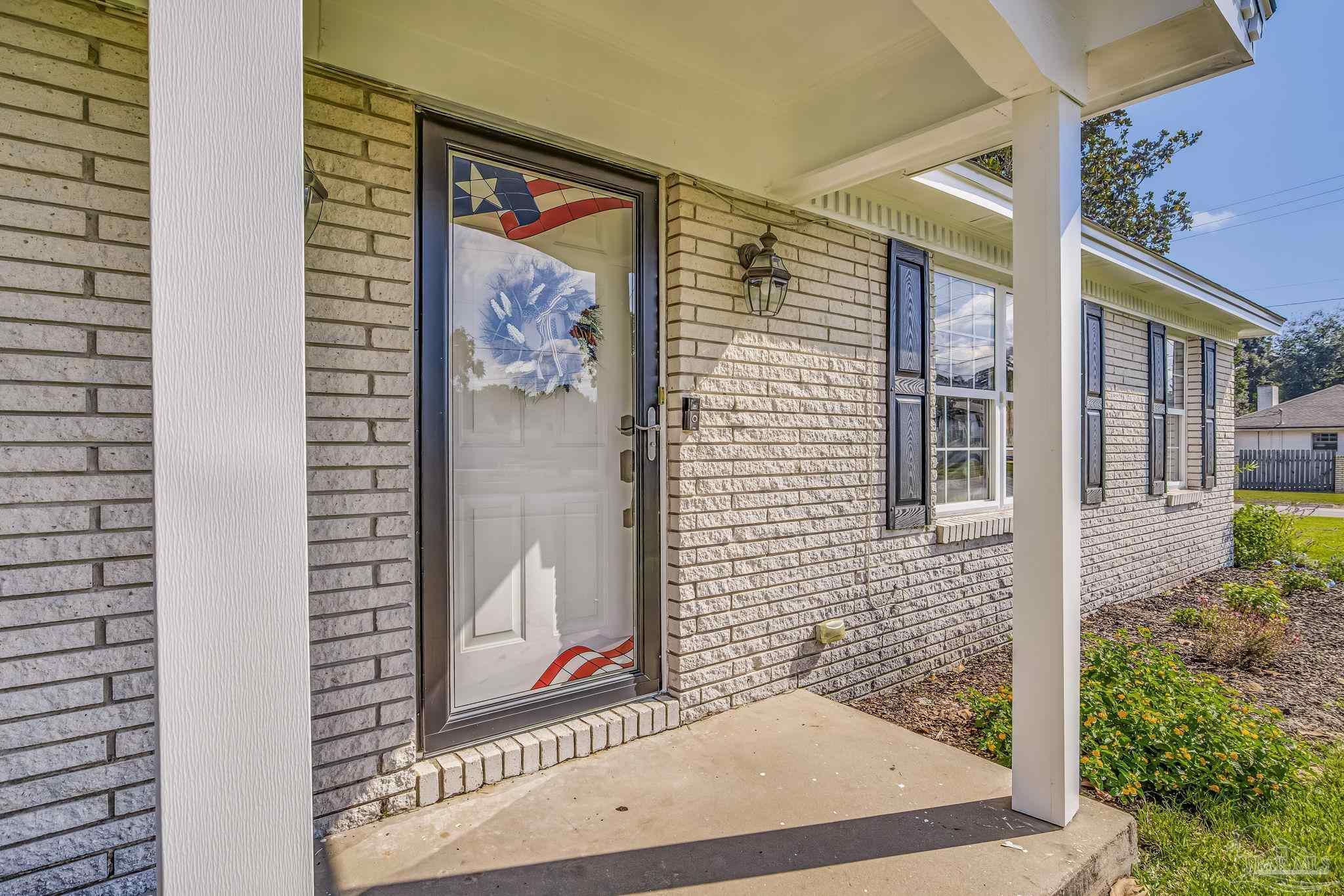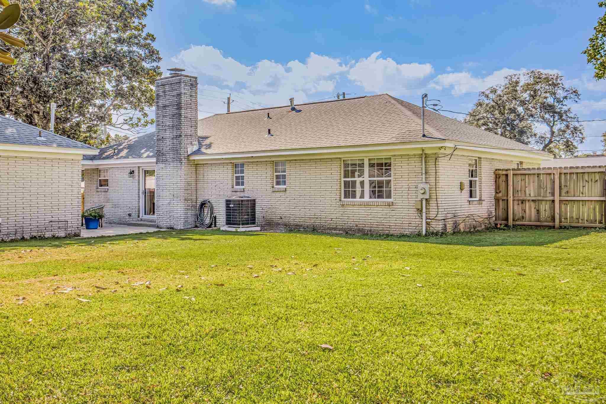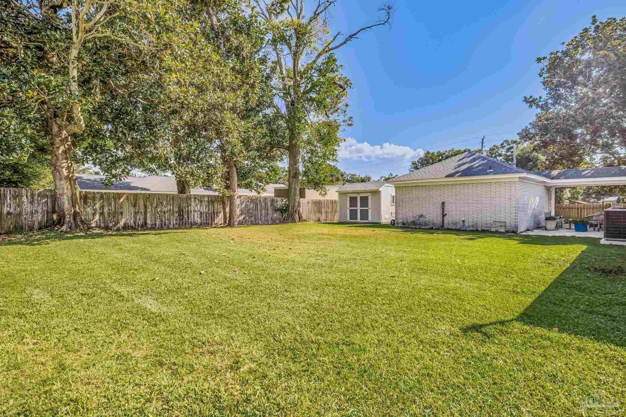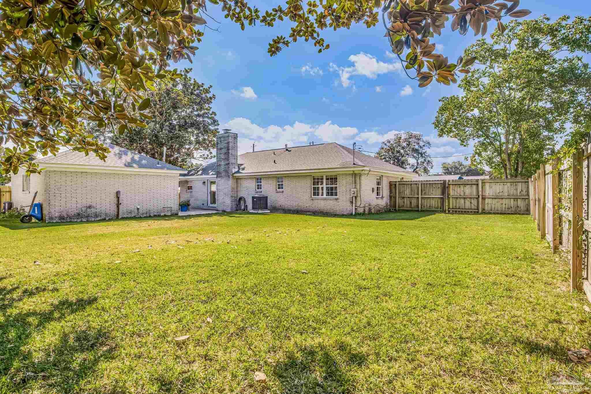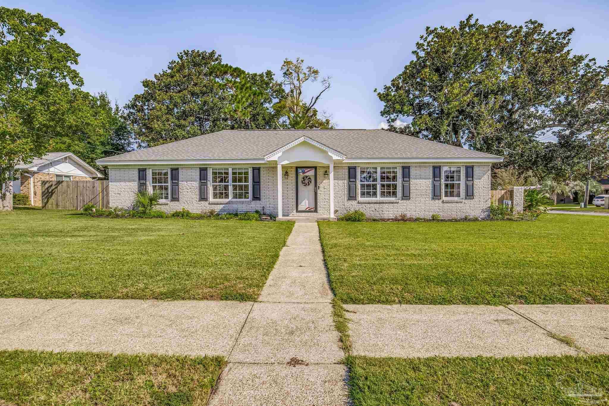 Brick home on a generously-sized corner lot in an established neighborhood - don't miss an opportunity to see why the first rule of home buying is the word "location"! The oversized side-entrance garage is connected to the home with a covered walkway, leading through a perfect private space for outdoor enjoyment and entertaining. The interior is classic ranch style, and there are separate spaces for any owner's flexible needs; a fireplace graces a family room that's open to the kitchen area. A dining area can be utilized as a home office or library that's open to the living room. This home has spaces that can adapt! Down the hall you'll find three bedrooms, a guest bath, and a main bedroom ensuite set up. Main living area has 1/2" Australian cypress hardwood, No high water bills here, an irrigation well for the yard will keep the grass and flower beds green all year round. Plus, a 10 X 12 yard building is secure and dry, and will hold all your tools and equipment. The fascia and soffits have been recently replaced and paint refreshed in main living area. 2016 Roof with NW Florida upgrades, brand new 2025 HVAC system and 2015 Water Heater. Located in a very walkable neighborhood with sidewalks, and near retail shopping areas, hospitals, and colleges, right down the street from Hitzman- Optimist Park, 15 minutes to downtown Pensacola and less than 30 minutes to Pensacola Beach. Make your appointment soon to see this wonderful family home!
