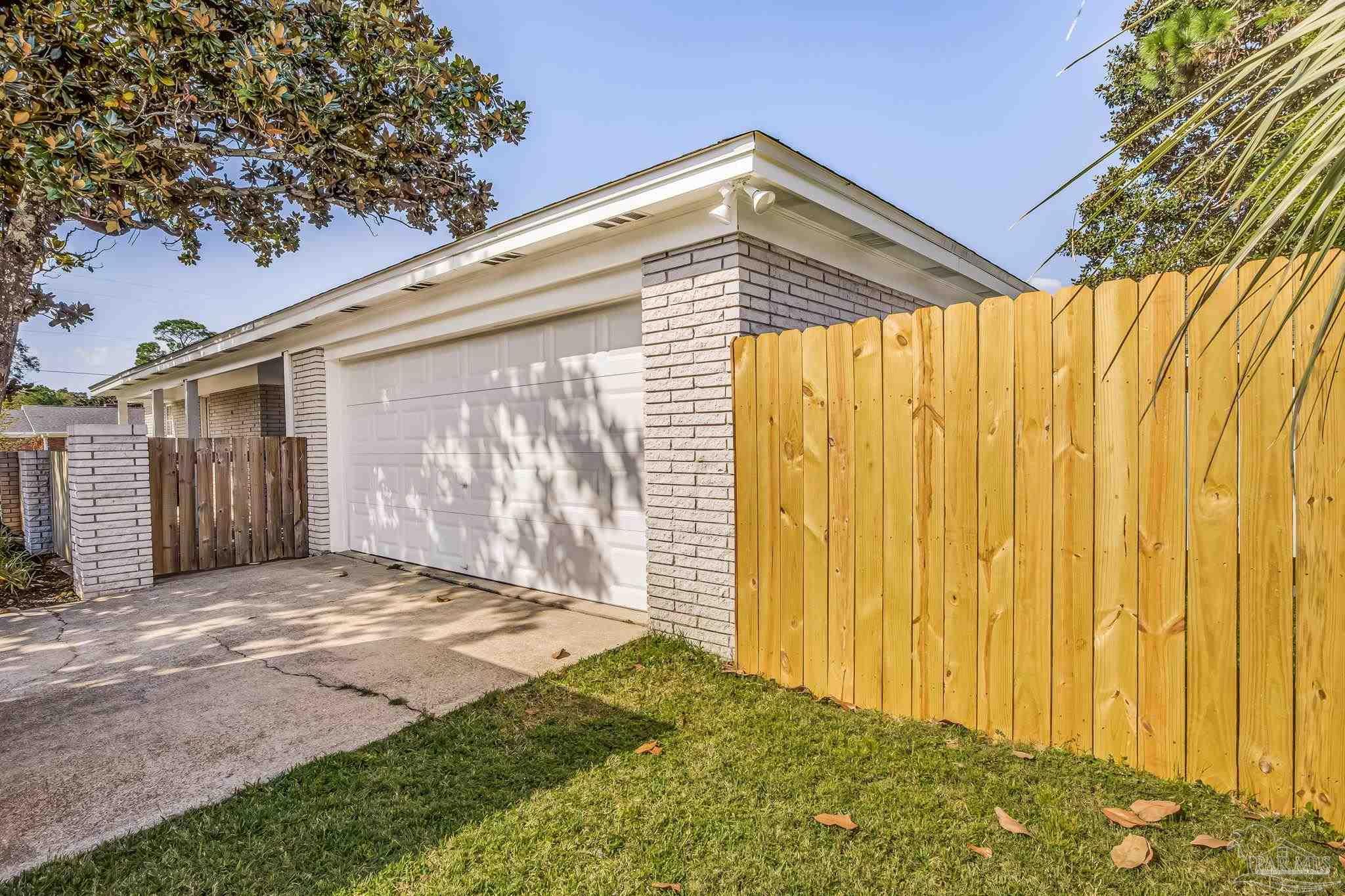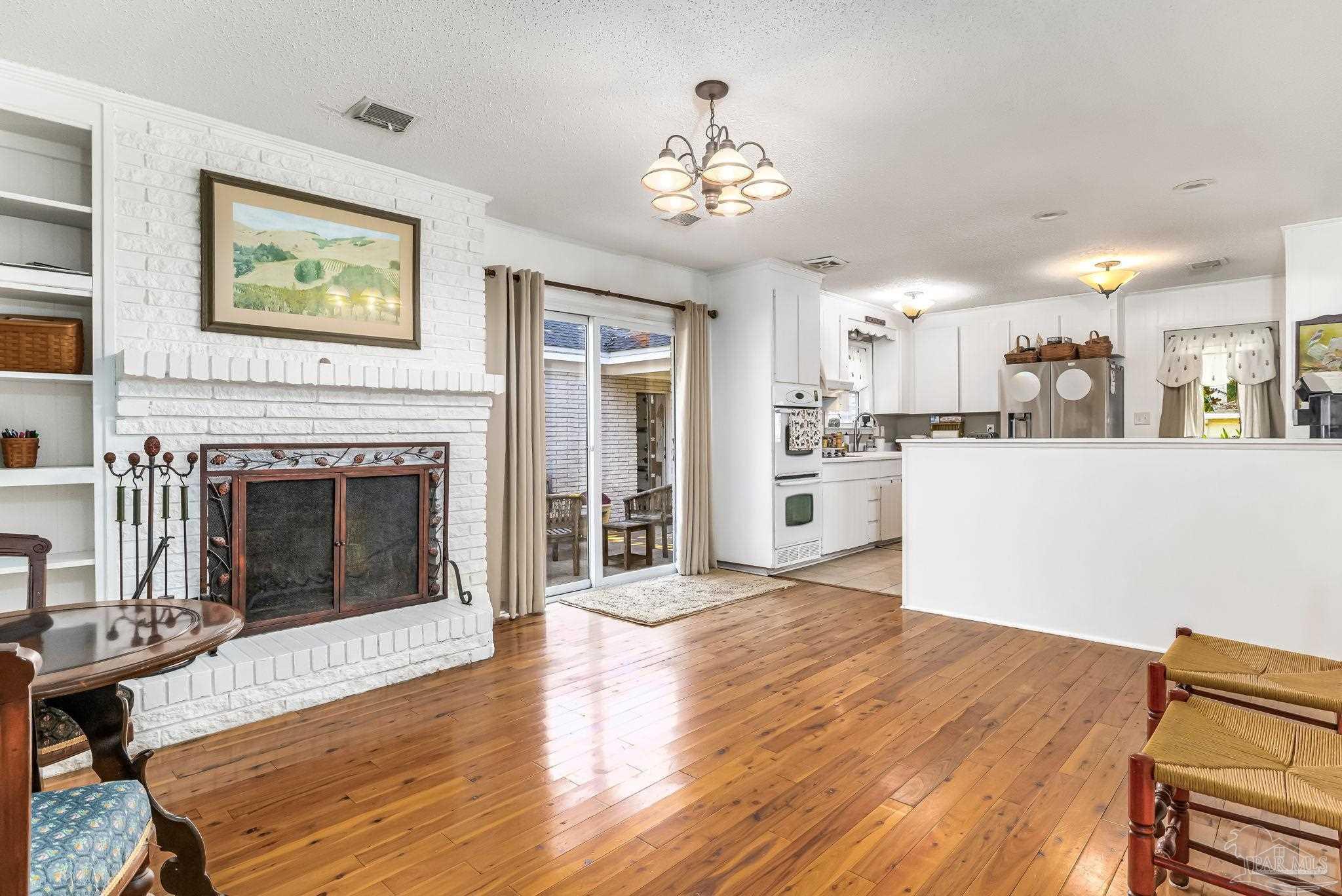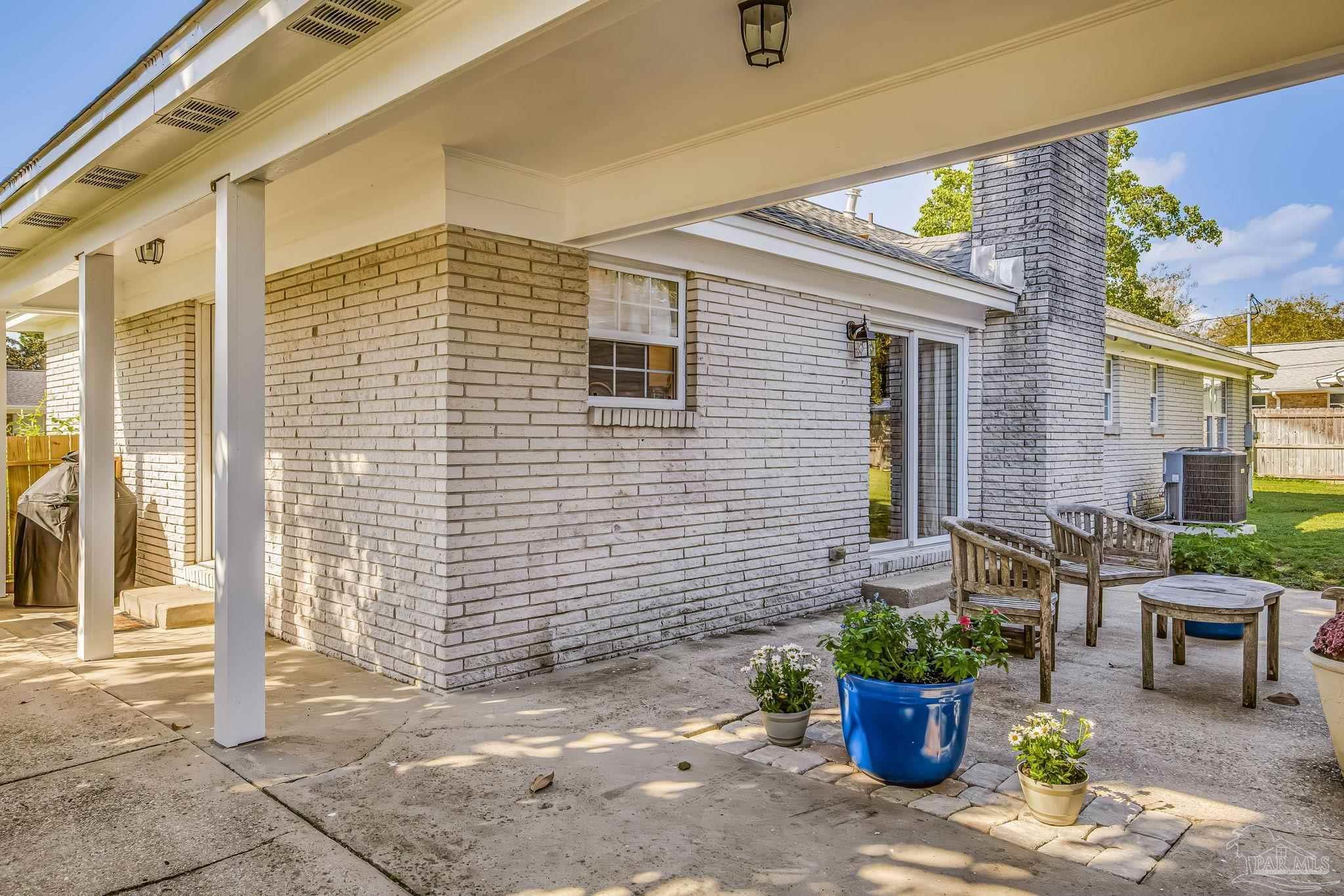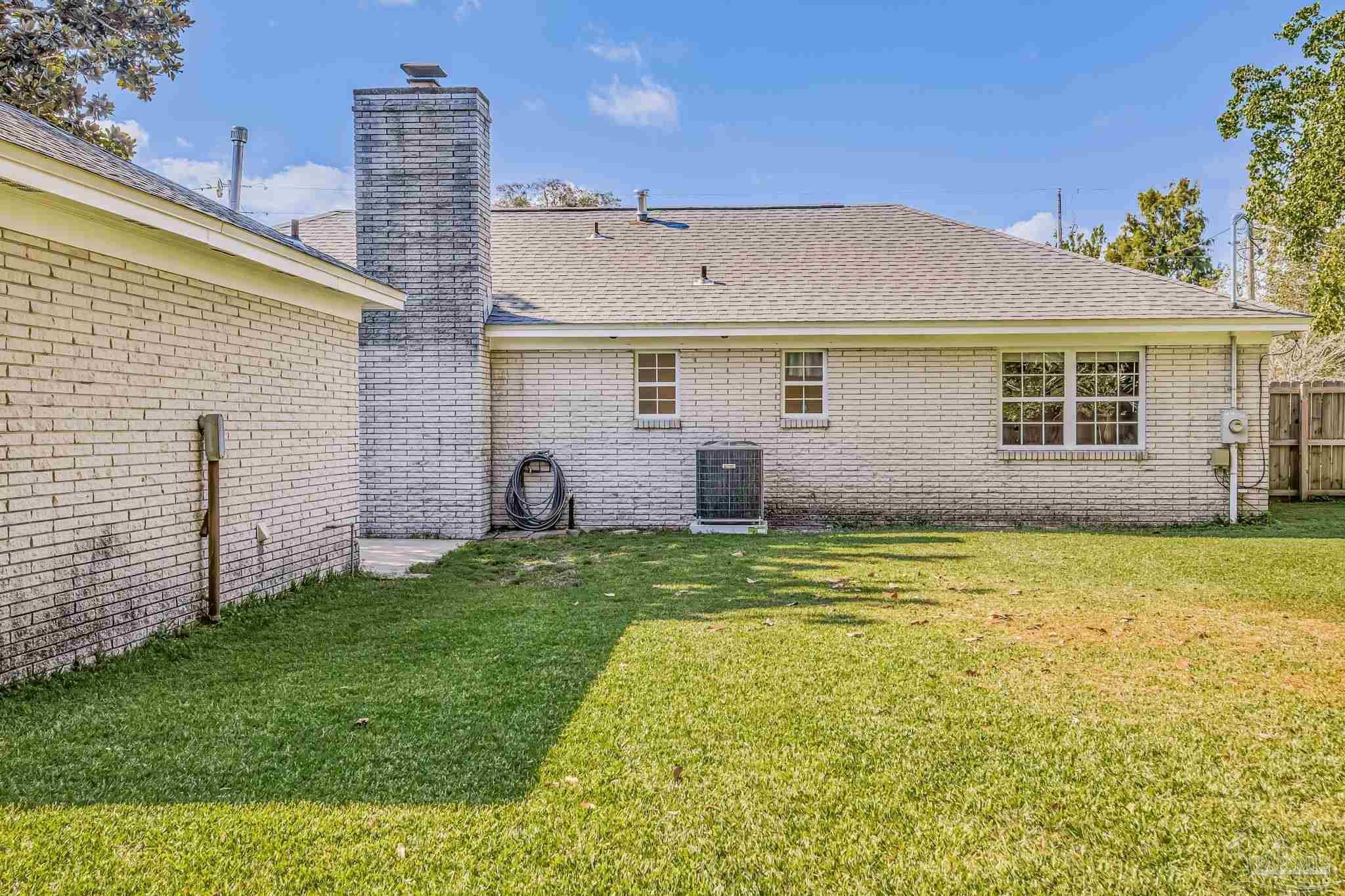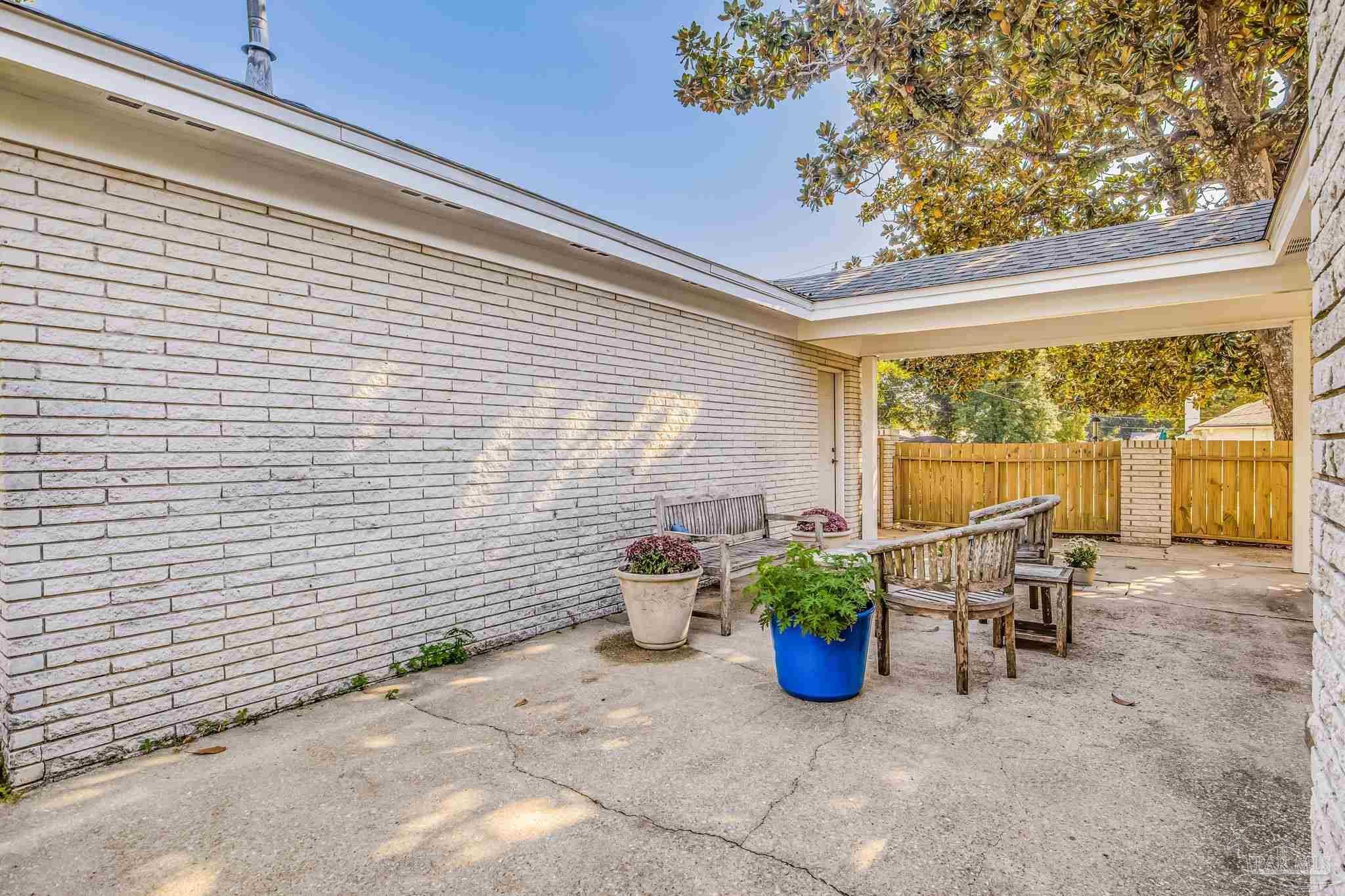 Brick home on a generously-sized corner lot in an established neighborhood - don't miss an opportunity to see why the first rule of home buying is the word "location"! The oversized side-entrance garage is connected to the home with a covered walkway, leading through a perfect private space for outdoor enjoyment and entertaining. The interior is classic ranch style, and there are separate spaces for any owner's flexible needs; a fireplace graces a family room that's open to the kitchen area. A dining area can be utilized as a home office or library that's open to the living room. This home has spaces that can adapt! Down the hall you'll find three bedrooms, a guest bath, and a main bedroom ensuite set up. Main living area has 1/2" Australian cypress hardwood, No high water bills here, an irrigation well for the yard will keep the grass and flower beds green all year round. Plus, a 10 X 12 yard building is secure and dry, and will hold all your tools and equipment. The fascia and soffits have been recently replaced and paint refreshed in main living area. 2016 Roof with NW Florida upgrades, brand new 2025 HVAC system and 2015 Water Heater. Located in a very walkable neighborhood with sidewalks, and near retail shopping areas, hospitals, and colleges, right down the street from Hitzman- Optimist Park, 15 minutes to downtown Pensacola and less than 30 minutes to Pensacola Beach. Make your appointment soon to see this wonderful family home!
