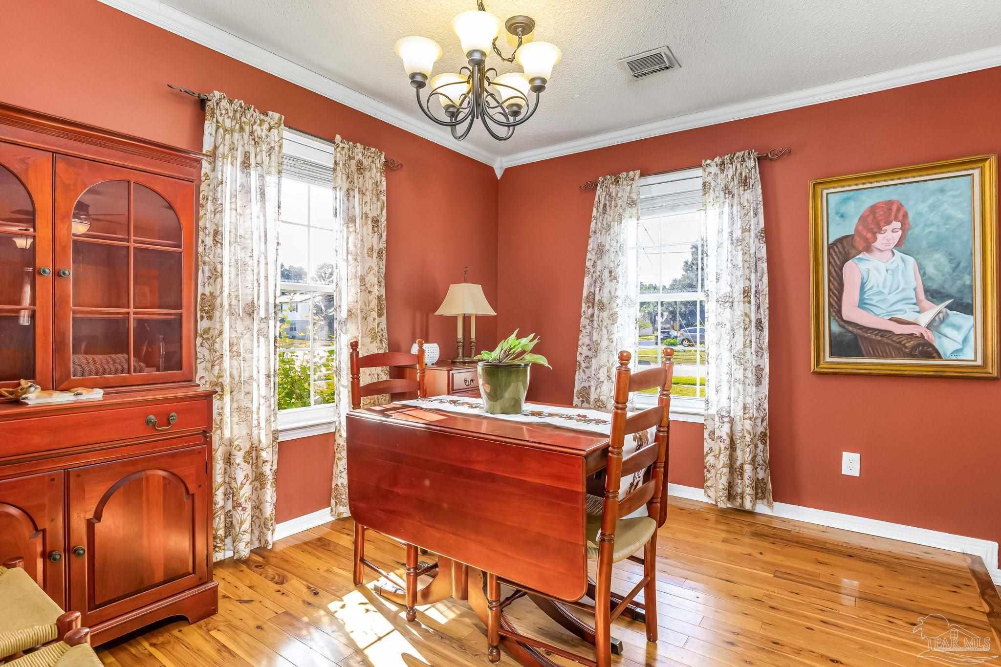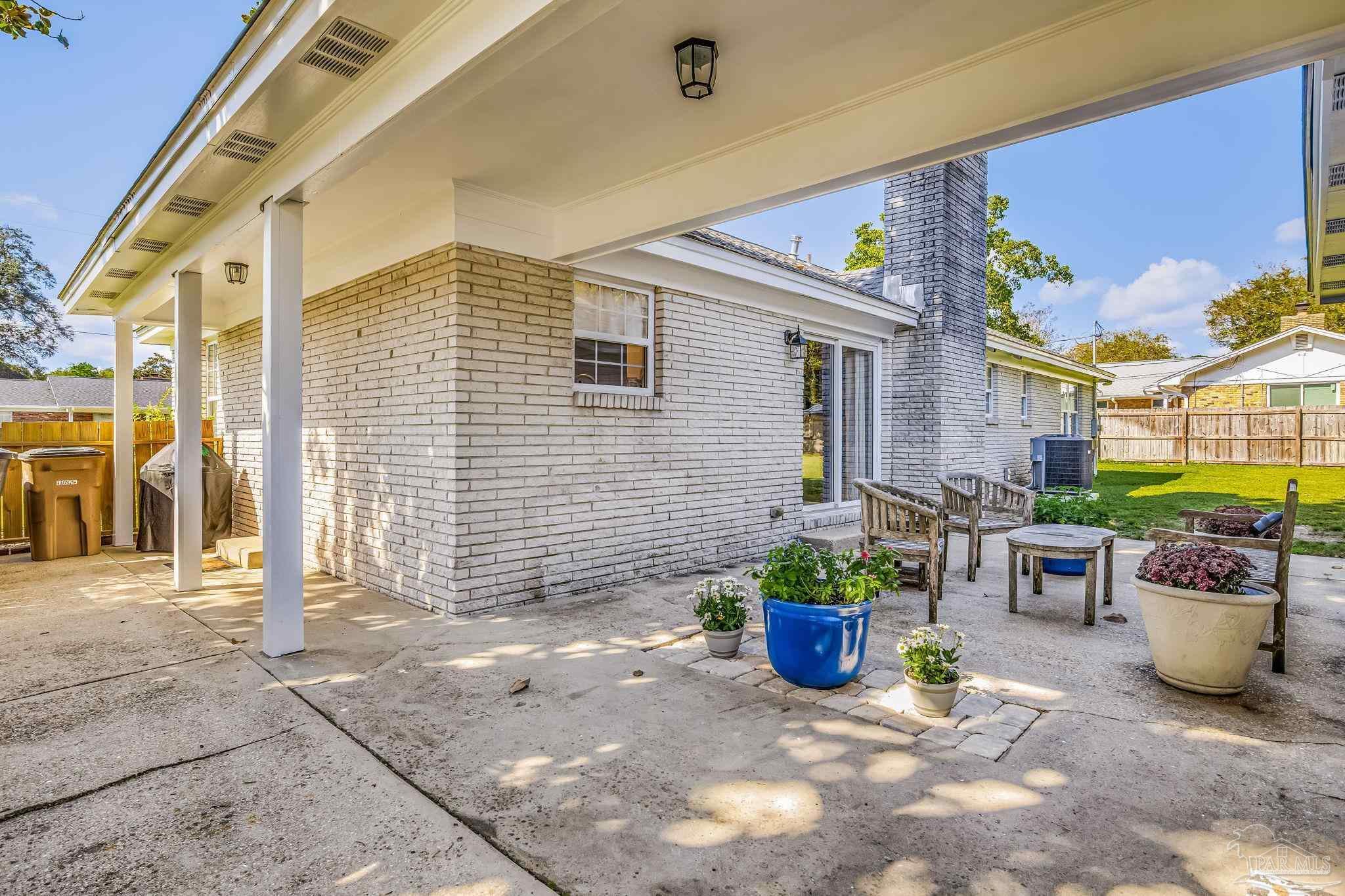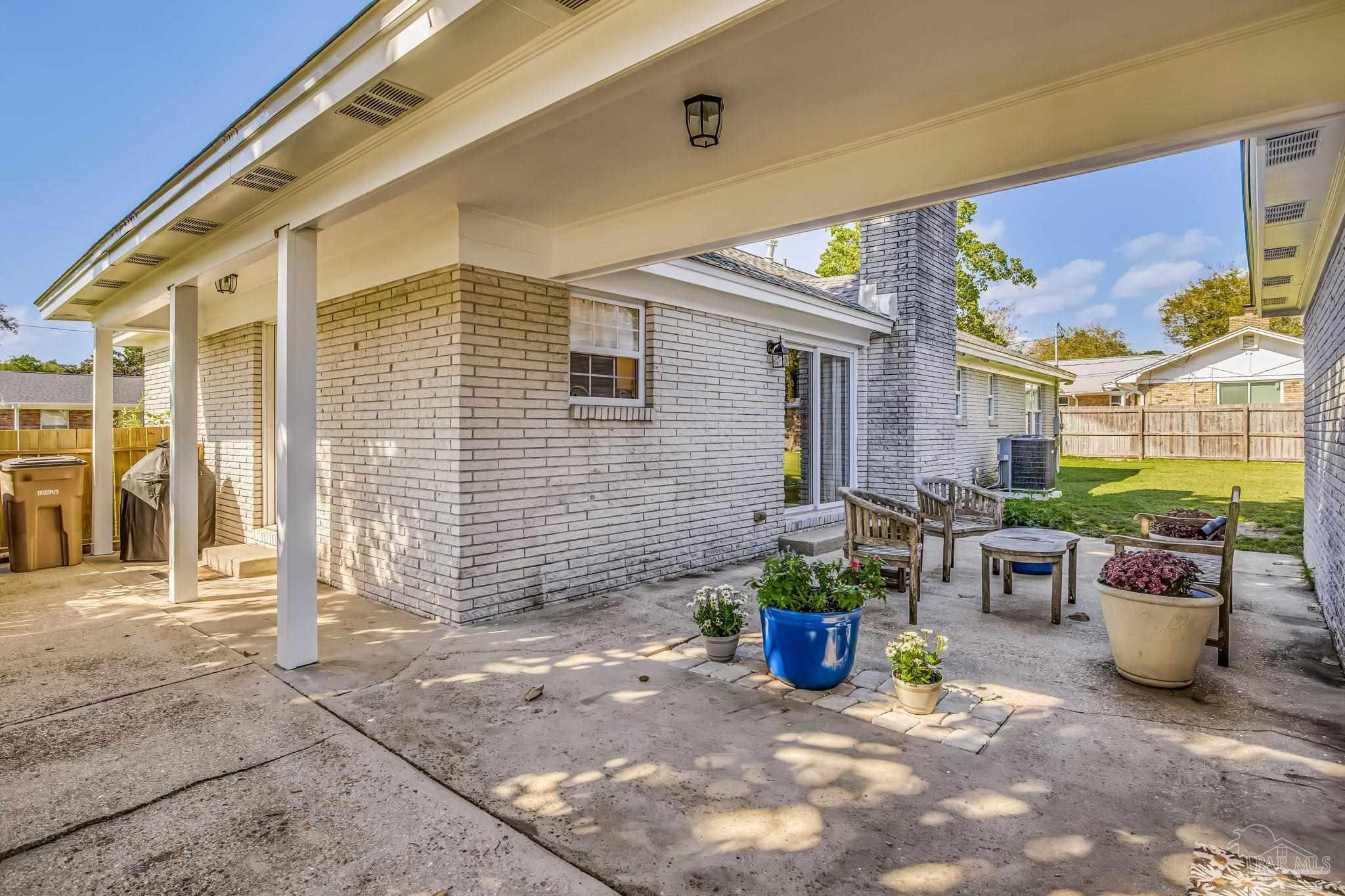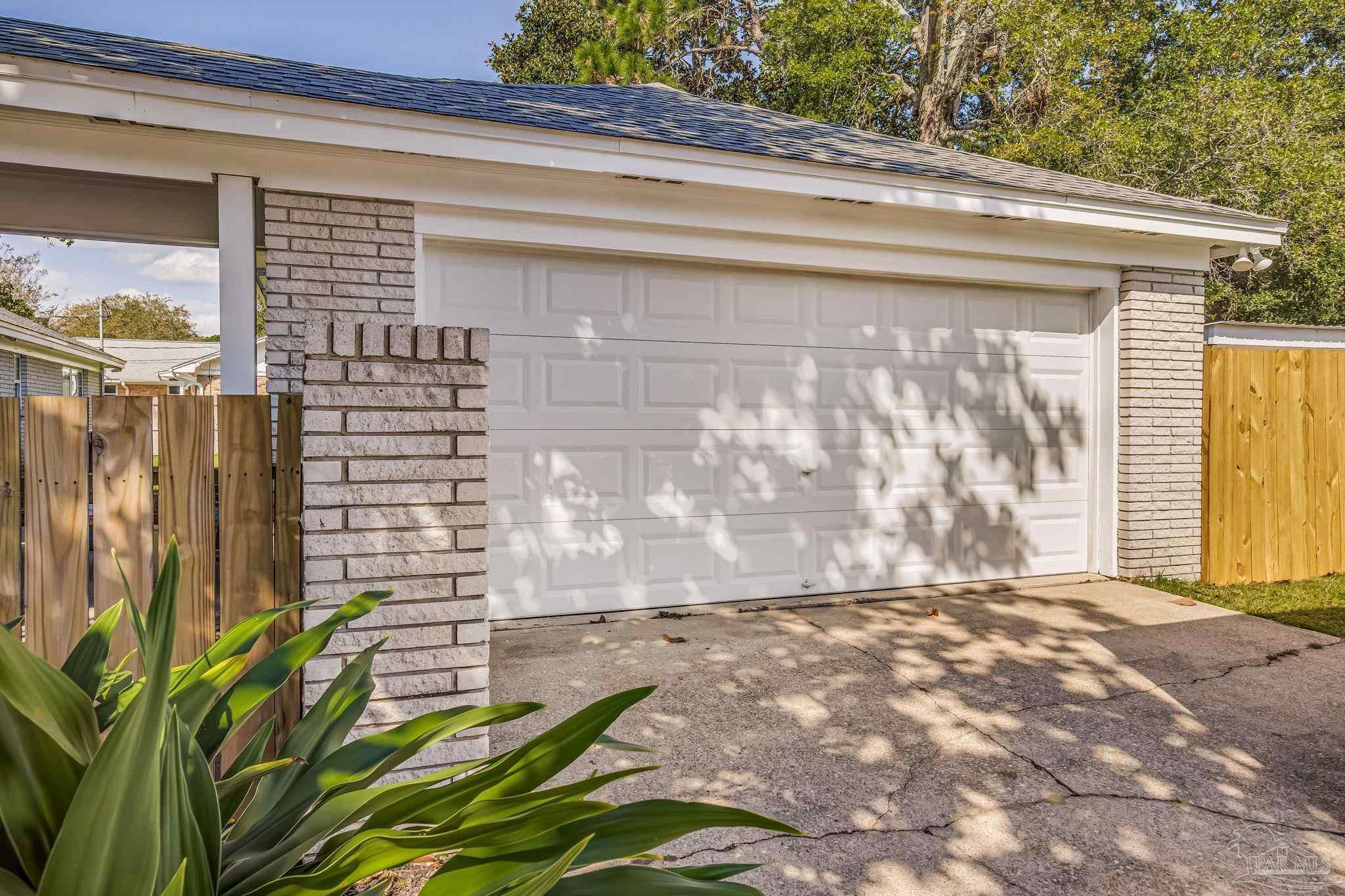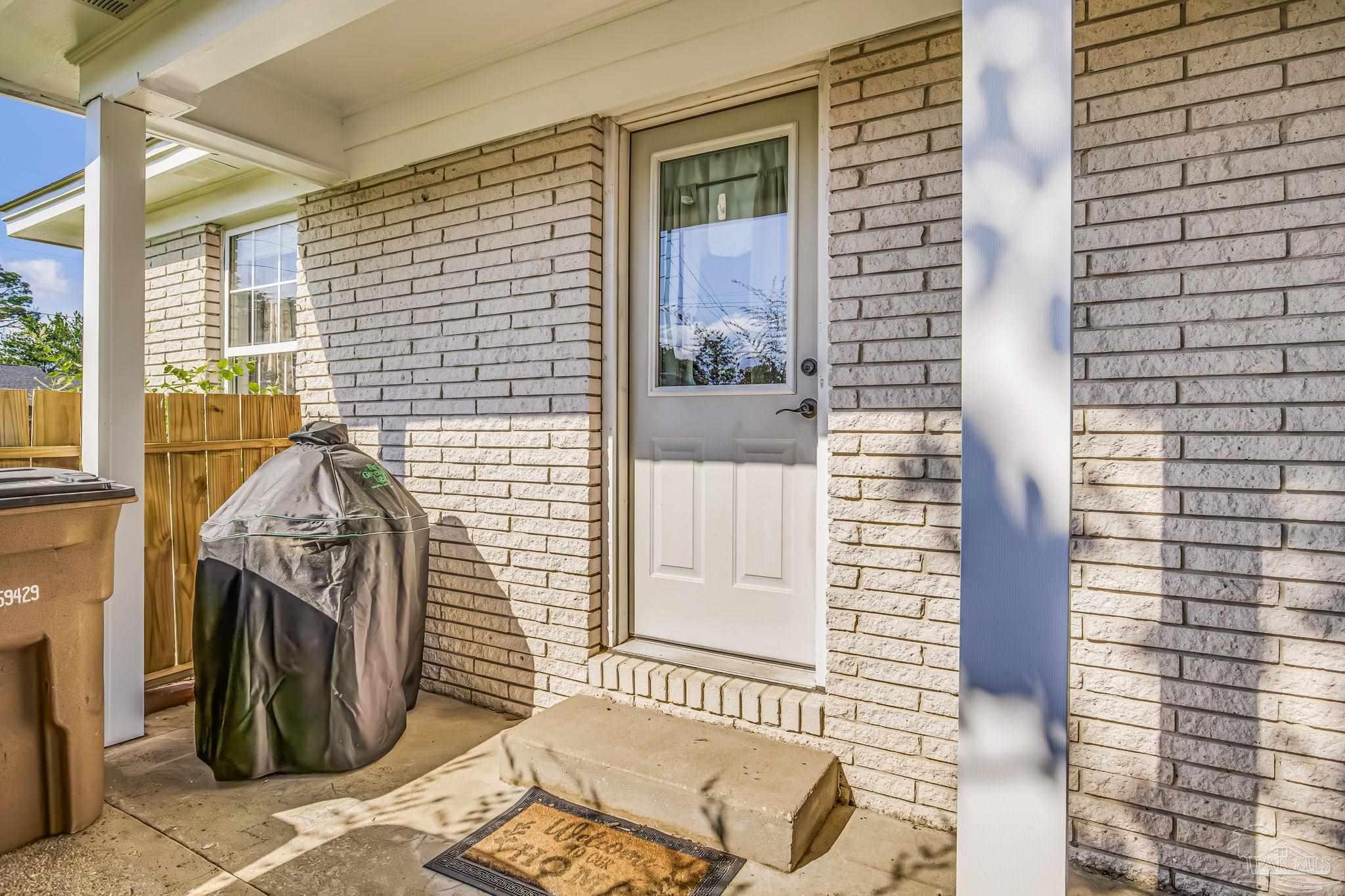 Brick home on a generously-sized corner lot in an established neighborhood - don't miss an opportunity to see why the first rule of home buying is the word "location"! The oversized side-entrance garage is connected to the home with a covered walkway, leading through a perfect private space for outdoor enjoyment and entertaining. The interior is classic ranch style, and there are separate spaces for any owner's flexible needs; a fireplace graces a family room that's open to the kitchen area. A dining area can be utilized as a home office or library that's open to the living room. This home has spaces that can adapt! Down the hall you'll find three bedrooms, a guest bath, and a main bedroom ensuite set up. Main living area has 1/2" Australian cypress hardwood, No high water bills here, an irrigation well for the yard will keep the grass and flower beds green all year round. Plus, a 10 X 12 yard building is secure and dry, and will hold all your tools and equipment. The fascia and soffits have been recently replaced and paint refreshed in main living area. 2016 Roof with NW Florida upgrades, brand new 2025 HVAC system and 2015 Water Heater. Located in a very walkable neighborhood with sidewalks, and near retail shopping areas, hospitals, and colleges, right down the street from Hitzman- Optimist Park, 15 minutes to downtown Pensacola and less than 30 minutes to Pensacola Beach. Make your appointment soon to see this wonderful family home!
