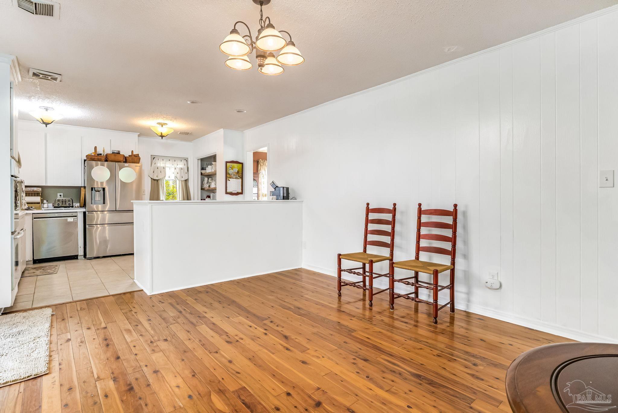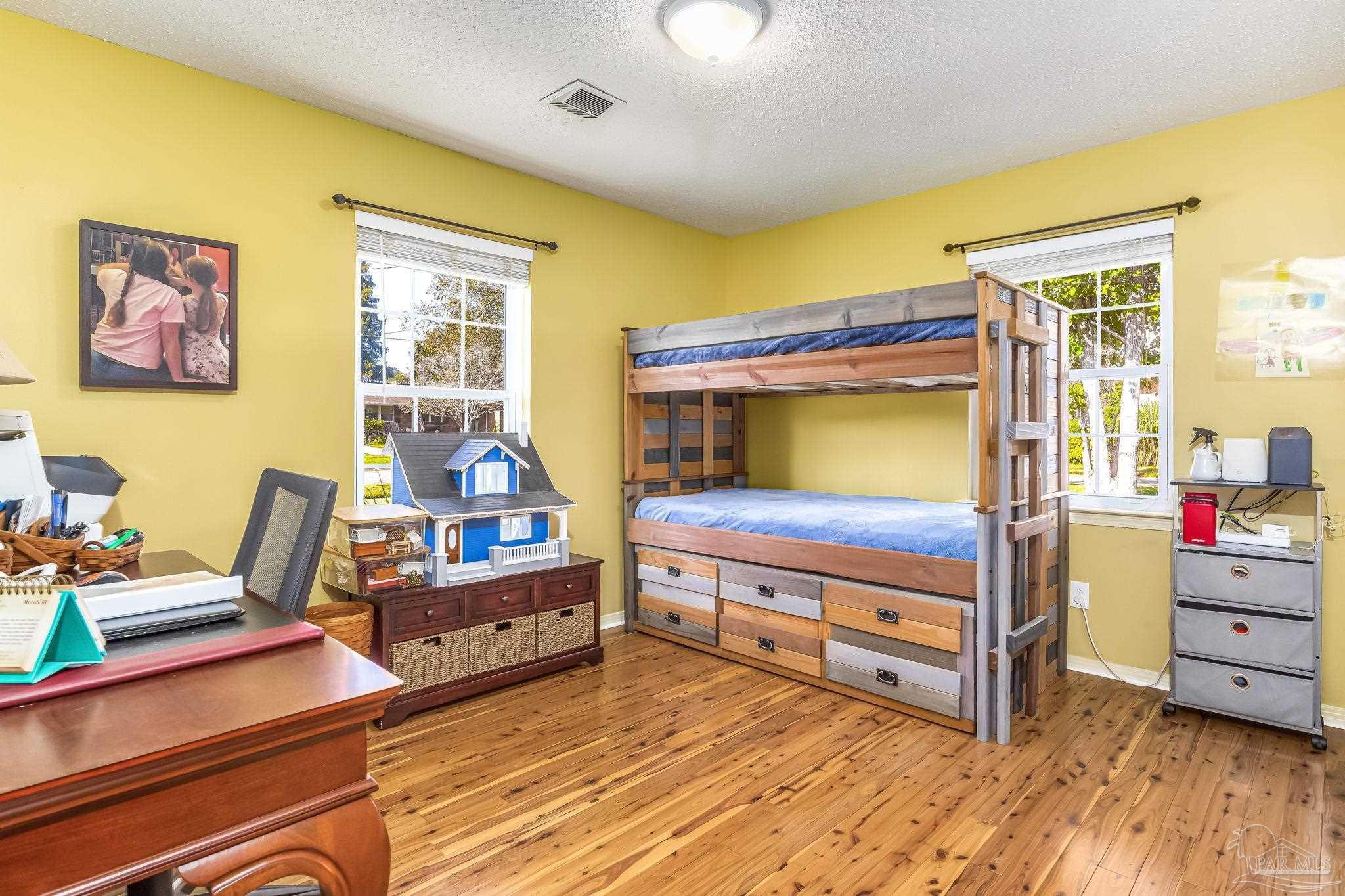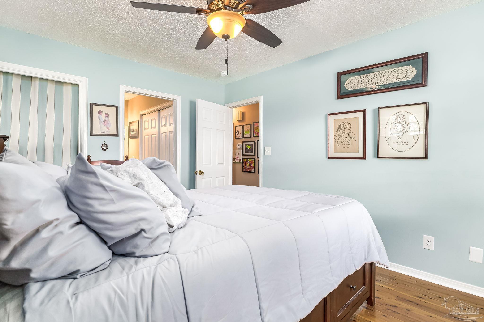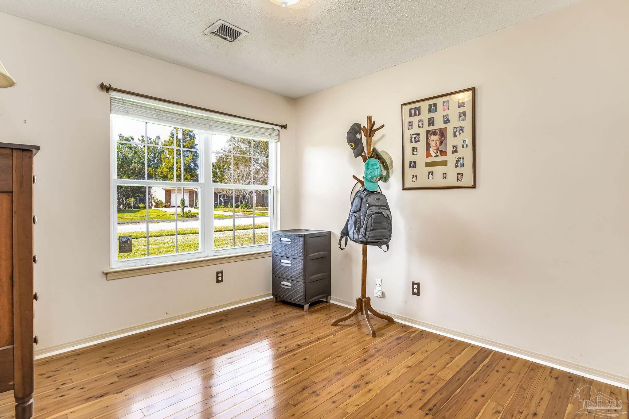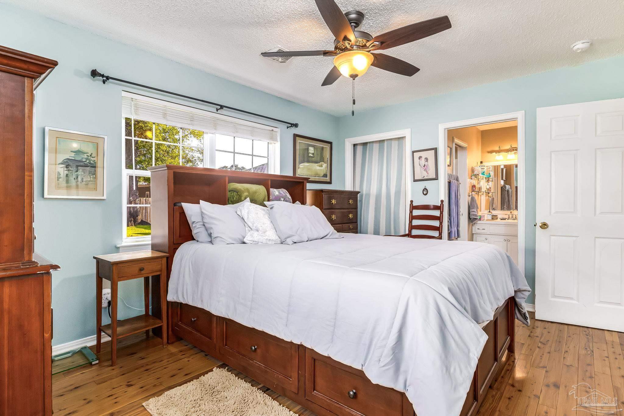 Brick home on a generously-sized corner lot in an established neighborhood - don't miss an opportunity to see why the first rule of home buying is the word "location"! The oversized side-entrance garage is connected to the home with a covered walkway, leading through a perfect private space for outdoor enjoyment and entertaining. The interior is classic ranch style, and there are separate spaces for any owner's flexible needs; a fireplace graces a family room that's open to the kitchen area. A dining area can be utilized as a home office or library that's open to the living room. This home has spaces that can adapt! Down the hall you'll find three bedrooms, a guest bath, and a main bedroom ensuite set up. Main living area has 1/2" Australian cypress hardwood, No high water bills here, an irrigation well for the yard will keep the grass and flower beds green all year round. Plus, a 10 X 12 yard building is secure and dry, and will hold all your tools and equipment. The fascia and soffits have been recently replaced and paint refreshed in main living area. 2016 Roof with NW Florida upgrades, brand new 2025 HVAC system and 2015 Water Heater. Located in a very walkable neighborhood with sidewalks, and near retail shopping areas, hospitals, and colleges, right down the street from Hitzman- Optimist Park, 15 minutes to downtown Pensacola and less than 30 minutes to Pensacola Beach. Make your appointment soon to see this wonderful family home!