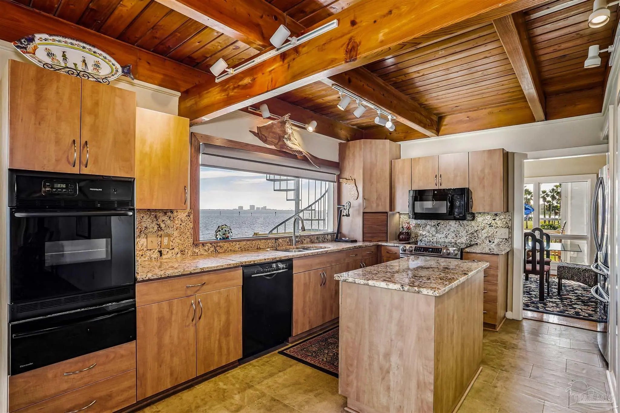 This custom home on Santa Rosa Sound is a rare opportunity to enjoy a truly unique resort lifestyle. You will be captivated by 180-degree views of the national seashore, Pensacola Beach, and the Naval Live Oaks. Watch dolphins frolic from your salt-water pool, entertain on 1298 sf of decks and patios and keep your boat protected in the "owners only" canal. On the second level, a large entry features artist tiles and a private office with closet. French doors open to a spectacular view of the Sound in the large living/dining area. Get cozy in front of a stunning Peter King bas-relief gas FP and bask in sunsets on your covered deck. The wet bar is definitely a charming party starter, while the formal dining area provides hypnotic views of sparkling water, wading birds and Portofino's fireworks. The well-appointed eat-in kitchen has one of the best views. Cooks will appreciate double ovens/warming drawers, storage galore and a walk-thru pantry. The laundry room has an electric dumbwaiter that services all floors. Two more bedrooms, a full bath and powder room complete the living floor. On the third floor is a large, light-filled adult retreat with a sun deck, wood cathedral ceiling, and remote controlled fireplace. There's also room to add a refreshment area. The bath has two walk-in closets, deep jetted tub and a separate walk-in shower w/ water closet. Up a ship's ladder is the "Crow's Nest" with glass doors to a "telescope balcony"- think artist loft, reading & nap nook. Dock the boat in a private canal with a 12,000 lb. covered lift, 50' x 10' Trex dock, wet fish sink and 200 sf storage building for all the tackle you'll need. You can quickly boat to dining, watch the Blue Angels fly or easily reach deep water from your front door. Mature trees, palms and landscape thrive with a deep-well irrigation system. The home's exterior has been totally remodeled/renovated and improved with new Hardi plank siding, Trex decks/stairs, and a new roof in 2025.