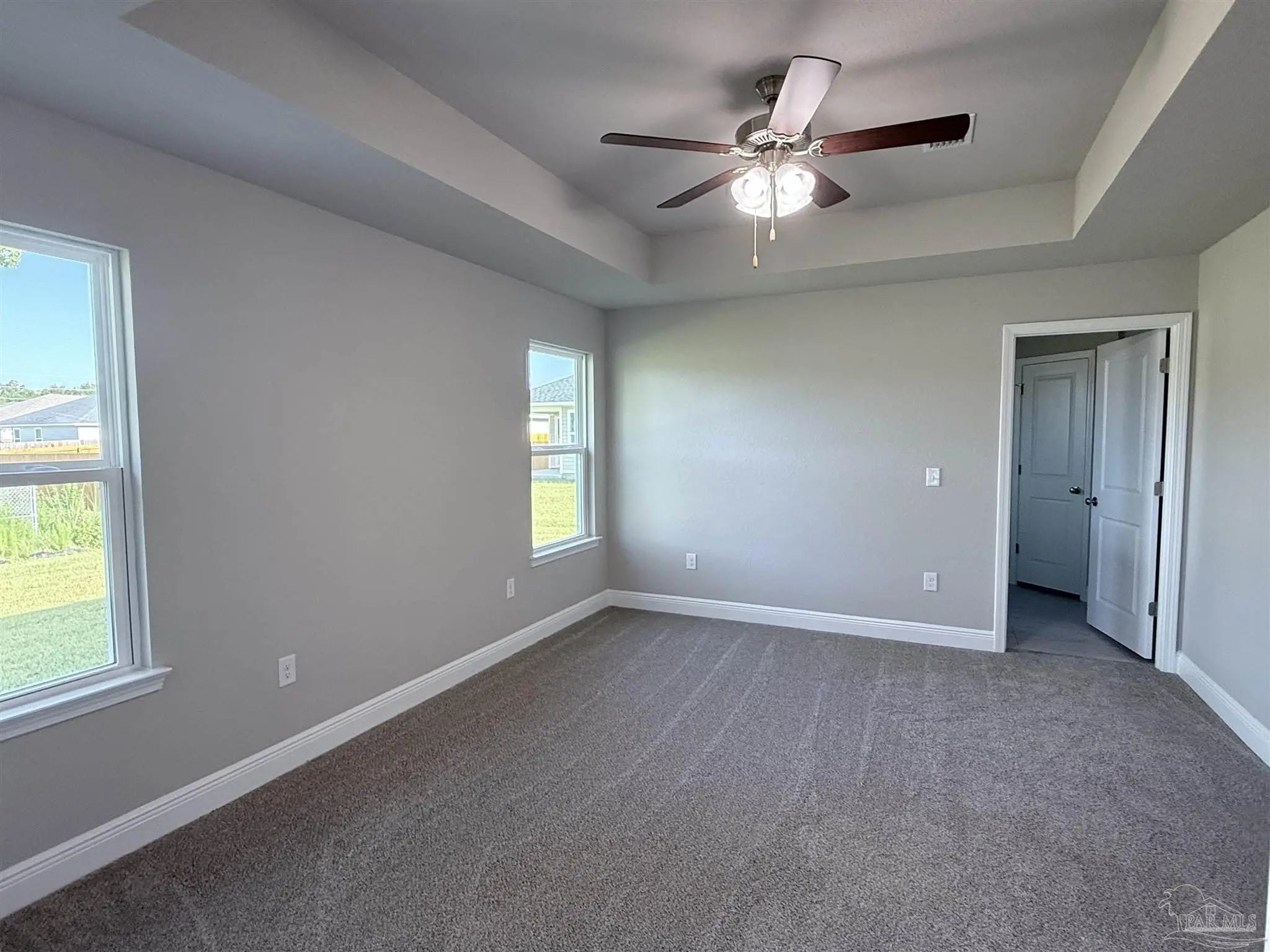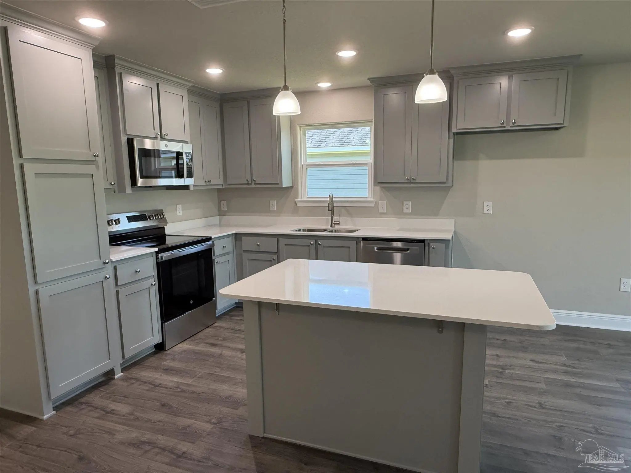 Spacious 1486 sq.ft.– Split Floor Plan, 3 Bedroom, 2 Baths, 2 Car Garage with Back Patio. Open Floorplan with an Island Kitchen, quartz countertops, custom maple cabinets with soft close drawers, and stainless-steel appliances. Trey ceilings in the master bedroom and living room as well as ceiling fans. All other rooms are braced and wired for ceiling fans. Quartz countertops in both bathrooms. Brushed Nickel Light Fixtures with matching finish on all faucets.