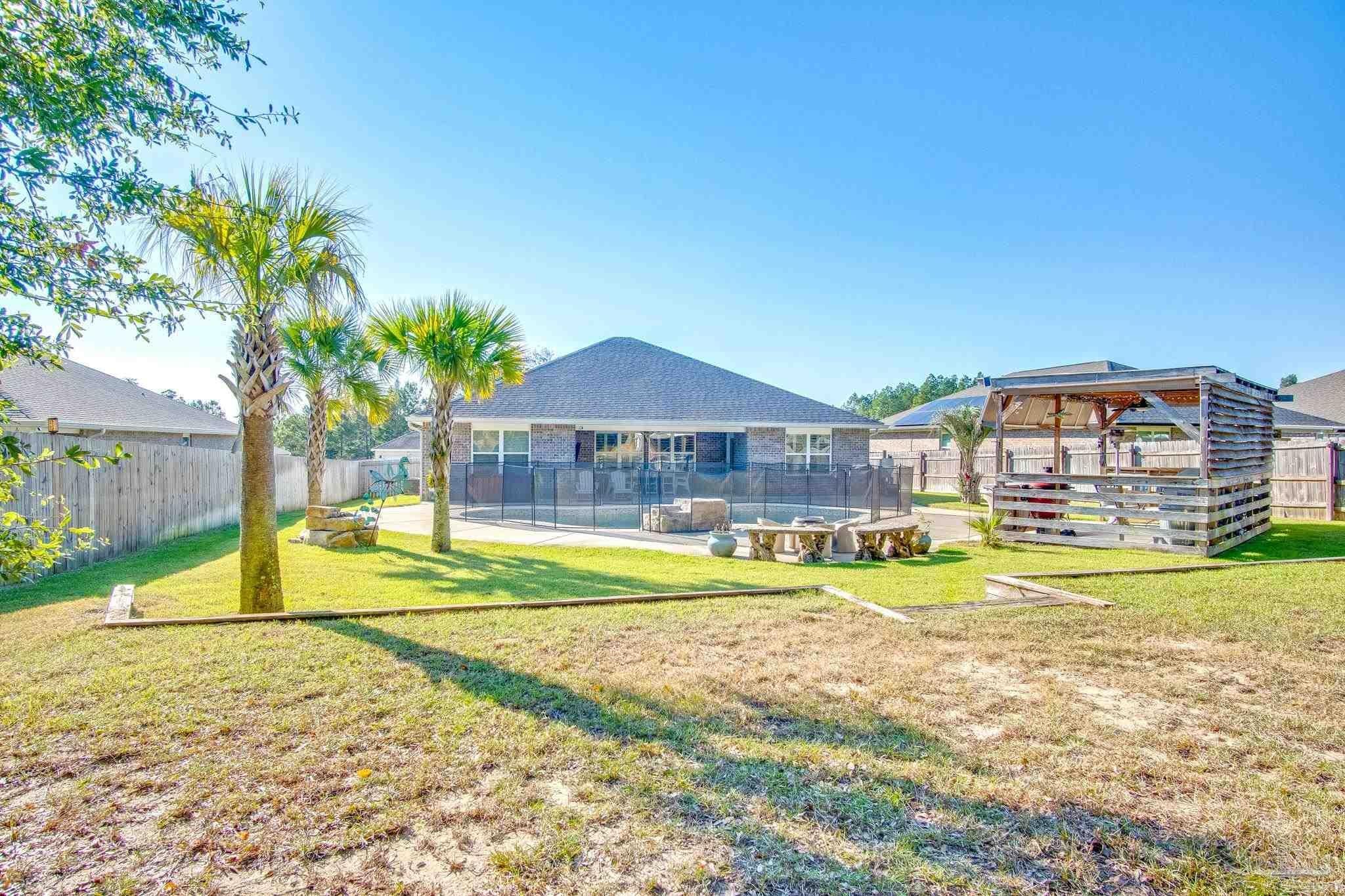 Pool Home with Backyard Paradise – Coming Soon! This beautiful 4-bedroom, 2-bath rental home features a true backyard oasis with a heated saltwater gunite pool, fountains, an outdoor kitchen cabana with bar seating, and tropical palm trees for that perfect Florida feel. Inside, the foyer opens to a split floor plan with guest bedrooms and a bath on one side and the spacious primary suite on the other. The open living area flows seamlessly into the kitchen, complete with granite counters, shaker cabinets, stainless steel appliances, and premium light fixtures, making it ideal for everyday living and entertaining. Elegant LVP flooring runs throughout the home with fresh neutral tones and modern accents. Outside, enjoy the lush irrigated zoysia lawn, half-acre lot with room for outdoor activities, and a fire pit area for relaxing evenings. Pets are welcome upon owner approval with a $250 non-refundable pet fee per pet (no aggressive breeds accepted). Residents are required to carry renter liability insurance, which can be added for $11.95/month, or you may opt into the Resident Benefits Package (RBP) for $45/month that includes renter liability insurance, HVAC air filter delivery, and on-demand pest control.