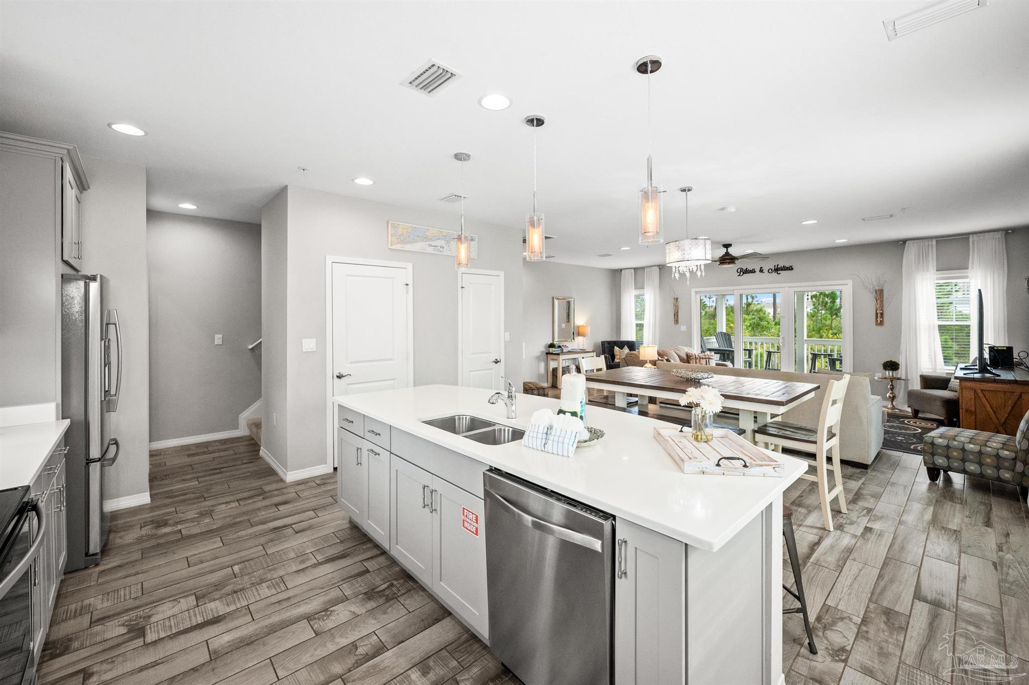 Beautifully furnished 3BR/2.5BA end-unit townhome in the gated Lost Key Golf & Beach Club in Perdido Key. This turnkey coastal retreat offers a proven short-term rental history—grossing over $50K at peak and averaging $35K–$40K annually while allowing flexible owner use throughout the year. The bright, open layout features a modern kitchen with quartz countertops, ceramic backsplash, stainless steel appliances, and premium cookware included. Dual HVAC systems ensure energy efficiency and year-round comfort. Enjoy two private patios—an upstairs balcony overlooking a peaceful pond and a ground-level patio perfect for grilling or entertaining. Additional highlights include a garage with extra storage, a second refrigerator, two secure owner closets, and a grassy yard ideal for pets. Residents of Lost Key enjoy resort-style amenities including a private beach club with restaurant and pool, an Arnold Palmer–designed golf course, tennis courts, fitness center, two additional pools, and a beach shuttle. Conveniently located near Johnson Beach, Gulf Islands National Seashore, NAS Pensacola, Orange Beach, and Gulf Shores, this property offers both lifestyle and investment potential. It’s fully furnished, short-term rental approved, and move-in ready—ideal for Airbnb or seasonal guests seeking the ultimate Florida Gulf Coast experience. This energy-efficient three-bedroom, two-and-a-half-bath townhome delivers the perfect combination of comfort, income, and resort living within a secure, gated community. Schedule your private showing or visit the open house to experience why Lost Key Golf & Beach Club is one of Perdido Key’s most desirable coastal communities.