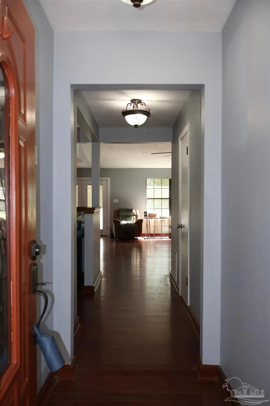 Welcome to your private slice of Florida paradise! Nestled on 4.88 acres in McDavid, this beautifully maintained 3-bedroom, 3-bathroom brick home offers the perfect blend of space, comfort, and quiet country living. Step inside to find a spacious and functional layout. Formal dining room, which could be used or double as an office space. A large kitchen overlooks the living room featuring an island with breakfast bar. Utility room and third bathroom are available in the oversized, two-car garage. Outside, relax on the covered patio where you can enjoy this beautiful property and your very own private pond. The expansive lot provides plenty of room for gardening, animals, or even future expansion — all without sacrificing privacy. Tucked away on a quiet country road yet still within reach of schools, shopping, and major routes, this property is a rare opportunity for anyone seeking space and the tranquility of rural life. Set up your showing today!