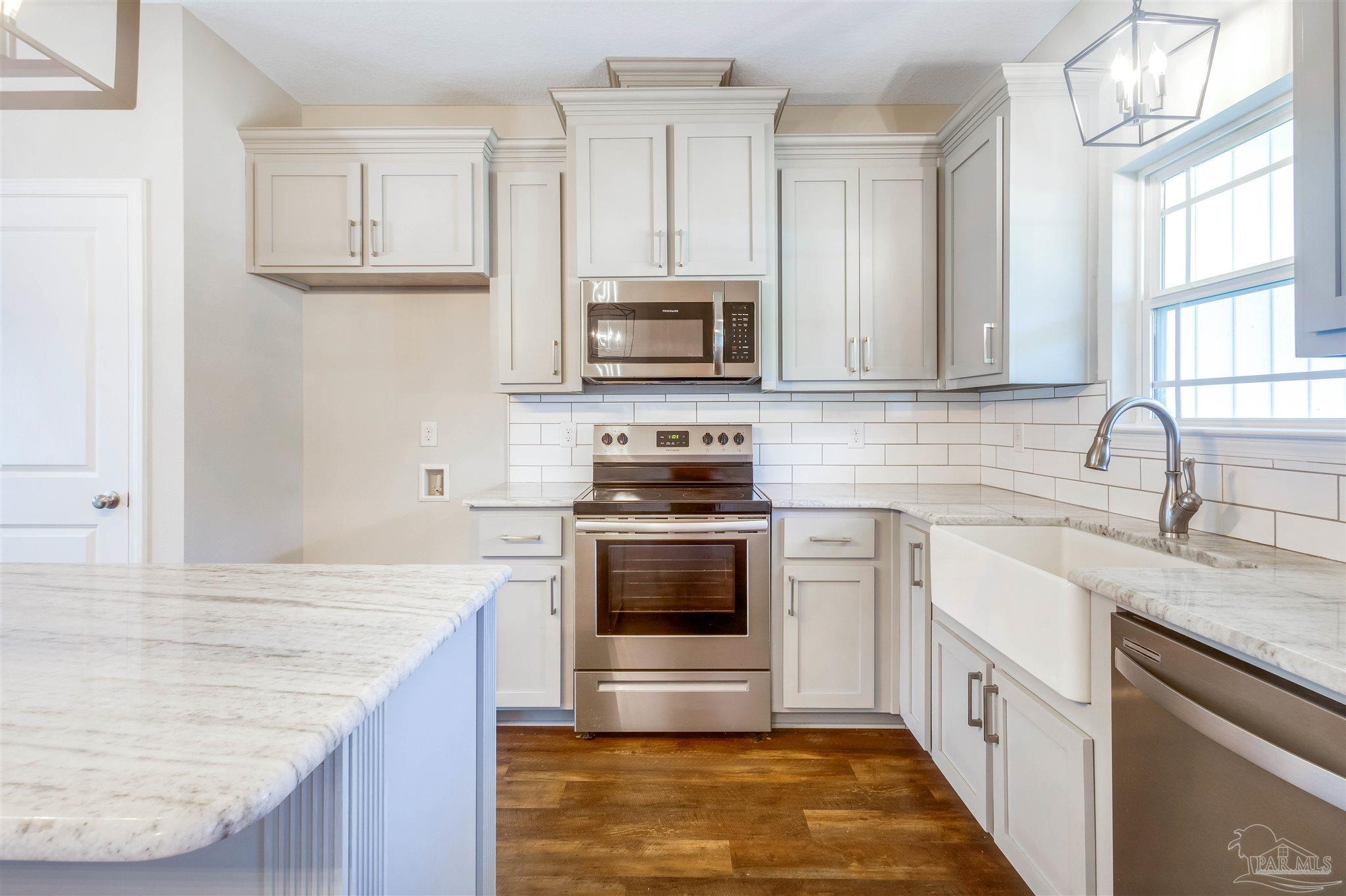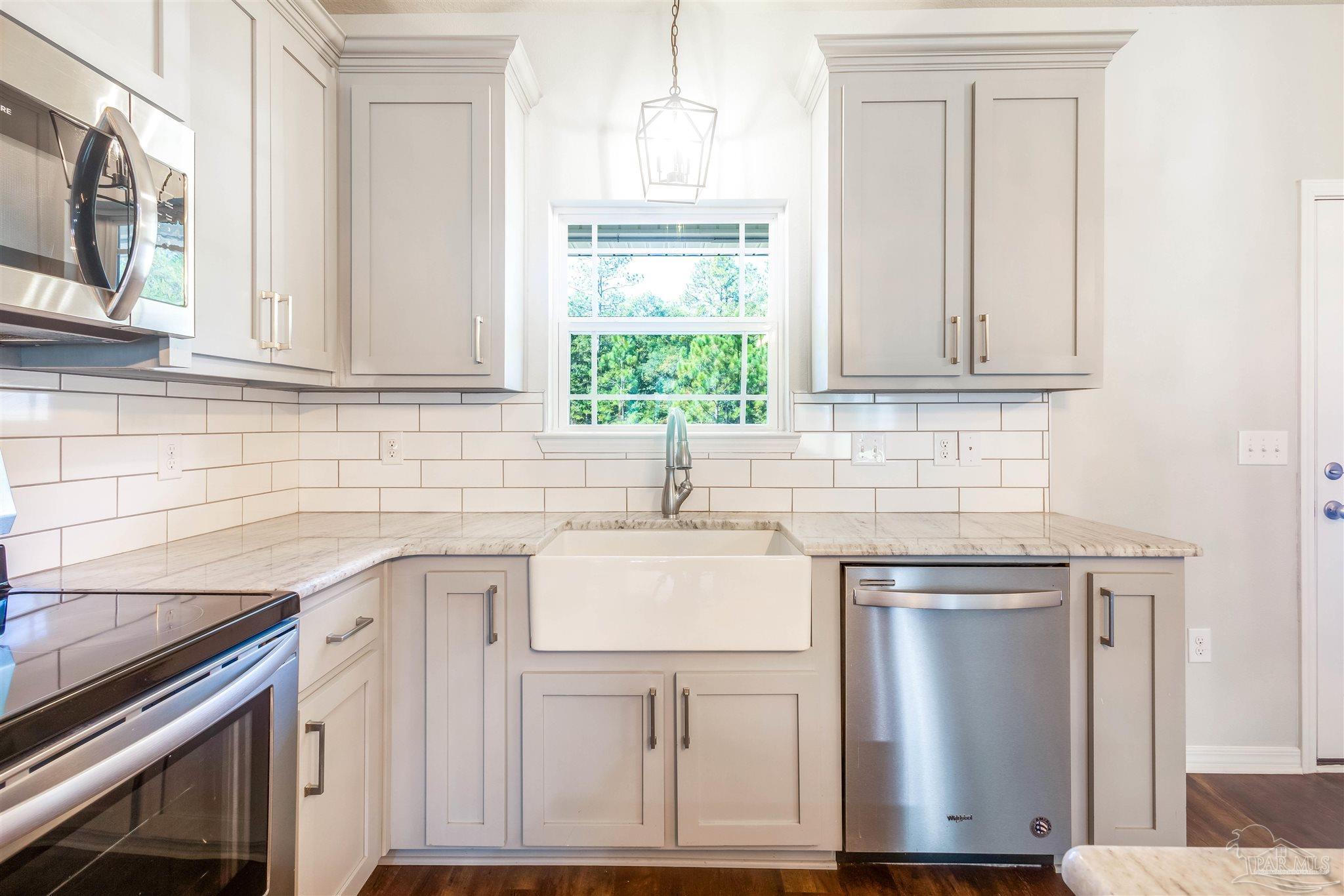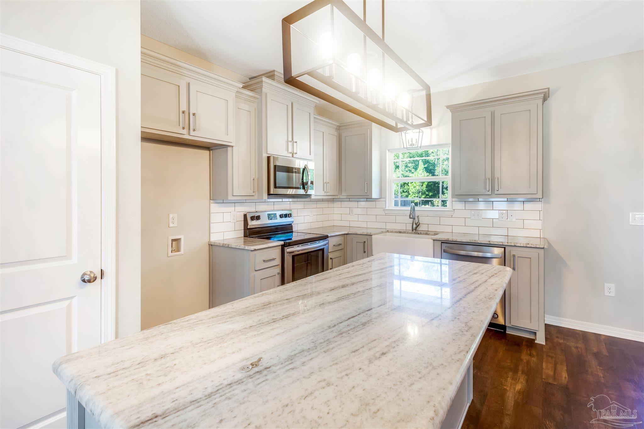 Welcome to this stunning home nestled on a spacious half-acre lot in a quiet Milton neighborhood. This home combines modern finishes with practical features for comfortable Florida living. A deep driveway leads to an oversized side-load two-car garage, offering plenty of parking and room for projects, while additional space allows for RV and boat storage behind the fully fenced backyard. Step inside to find luxury vinyl plank (LVP) flooring throughout, tray ceilings, and an open-concept layout perfect for entertaining. The kitchen features a large island, granite countertops, shaker-style cabinets, stainless steel appliances, a farmhouse-style single basin sink, and pendant lighting. The bathrooms continue the elegant design with granite counters, undermounted sinks, and subway tile shower surrounds. Relax outdoors under the covered back patio, ideal for morning coffee or evening gatherings overlooking the spacious backyard. With its blend of charm, function, and modern finishes, this home offers the perfect mix of country space and contemporary comfort, all just minutes from shopping, schools, and local conveniences. At Rob Brooks Realty, we strive to provide an experience that is cost-effective and convenient. That's why we provide a Resident Benefits Package (RBP) to address common headaches for our residents. Our program handles insurance, identity protection, pest control, air filter changes, utility set up, credit building, rent rewards, and more at a rate of $39.95/month, added to every property as a required program. More details upon application. Total monthly payment (Rent + $39.95).