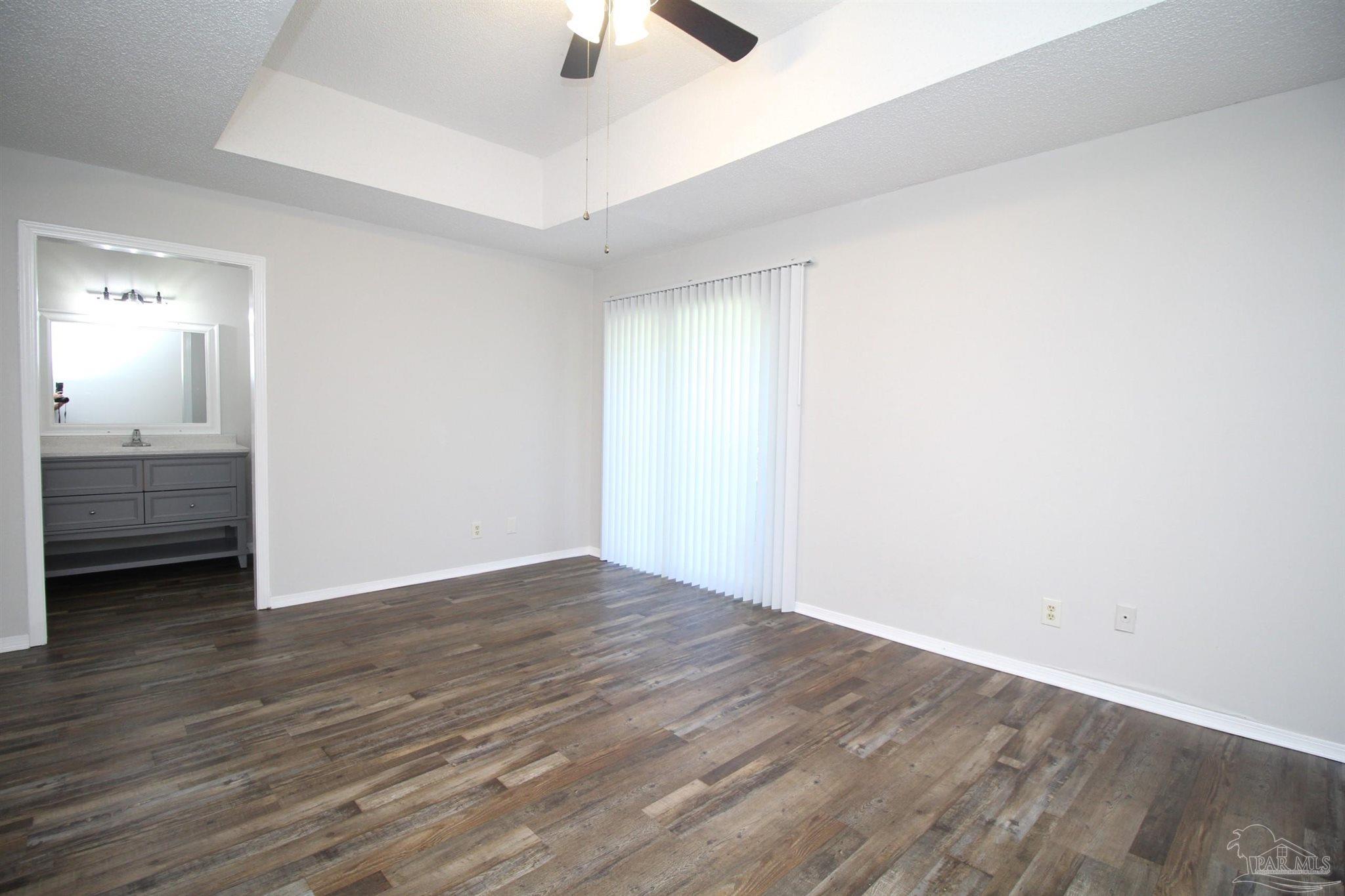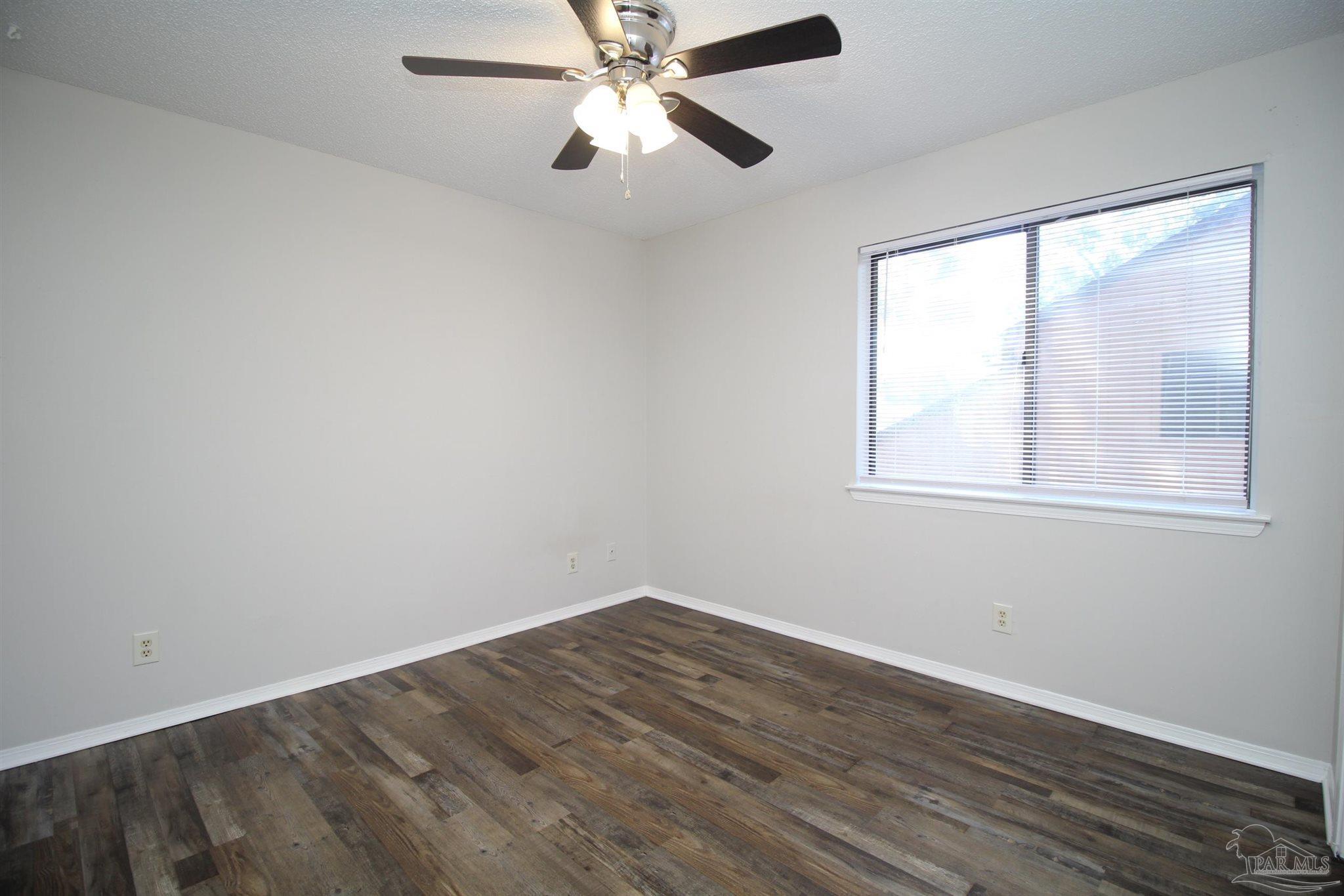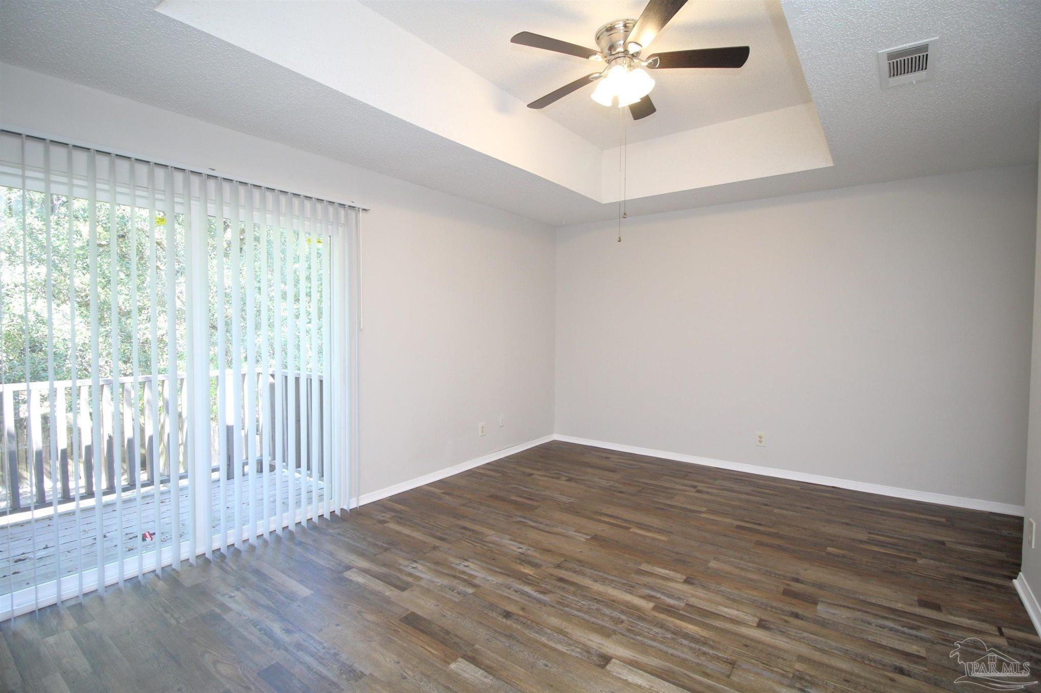 Spacious 2-story townhome conveniently located near I-10, Pensacola State College, and just 15 minutes from Pensacola Beach, offering over 1,500 sq. ft. of living space. The main floor features a large flexible room that can be used as an office, den, or extra living space, along with a half bath in the hall and the main living areas, including a bright living room flowing into the dining area. The tiled eat-in kitchen comes with all appliances, including refrigerator, dishwasher, and stove, along with updated cabinets. LVP flooring throughout and fresh paint give the home a clean, modern feel. Upstairs, the primary bedroom offers a tray ceiling, oversized closet, private balcony, and its own vanity area, with a door leading into the shared full Jack-and-Jill style bathroom, which features a second updated vanity and is shared with the two additional bedrooms, one of which has its own balcony facing the street. Inside laundry includes washer and dryer in as-is condition. Step outside to a fenced backyard with a covered patio, perfect for relaxing or entertaining. Pets are welcome with owner approval and a $250 non-refundable fee per pet (no aggressive breeds). Residents can opt into the Resident Benefits Package (RBP) for $45/month, which includes renter liability insurance, HVAC air filter delivery, and on-demand pest control. Available for immediate move-in.