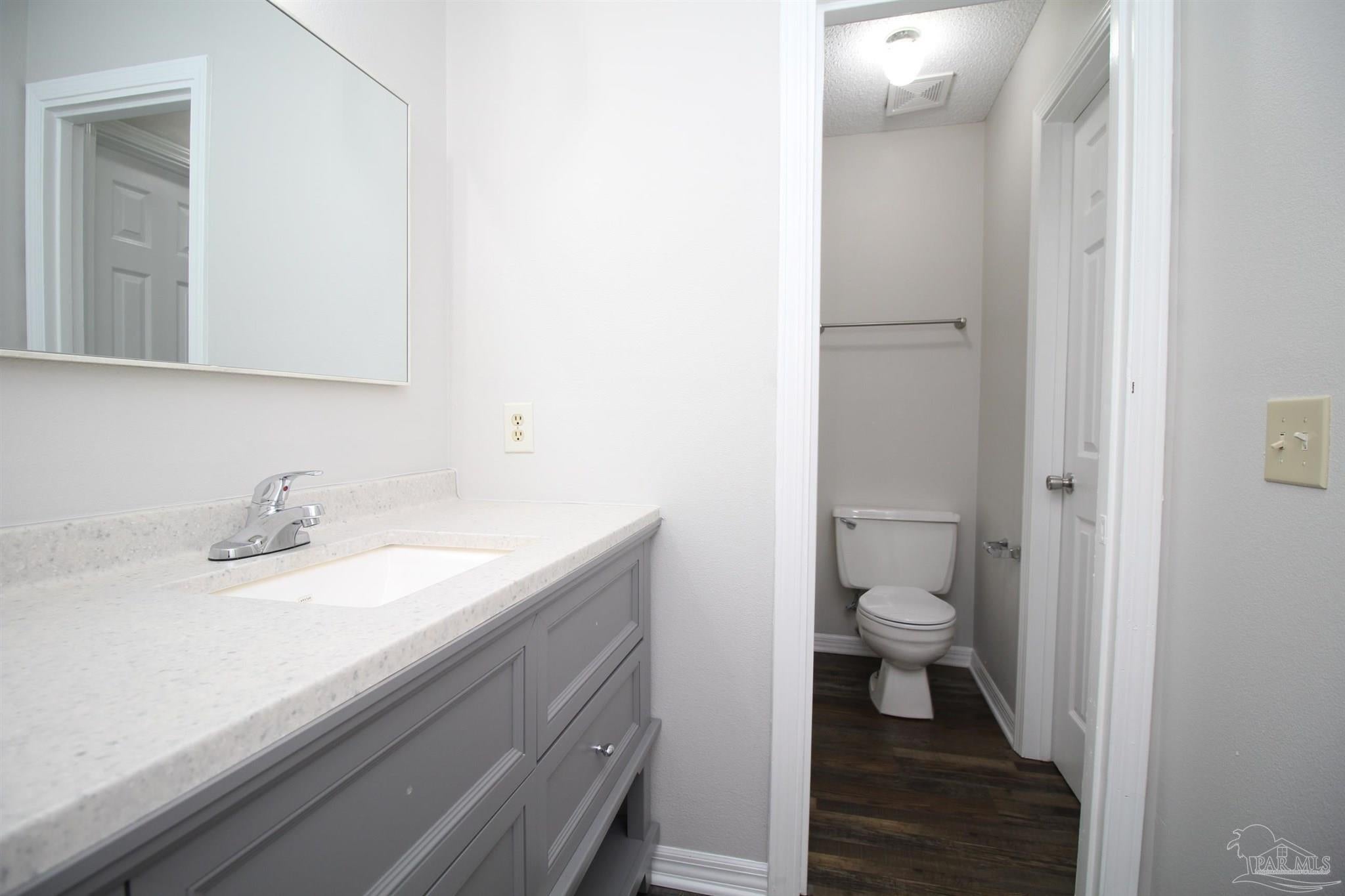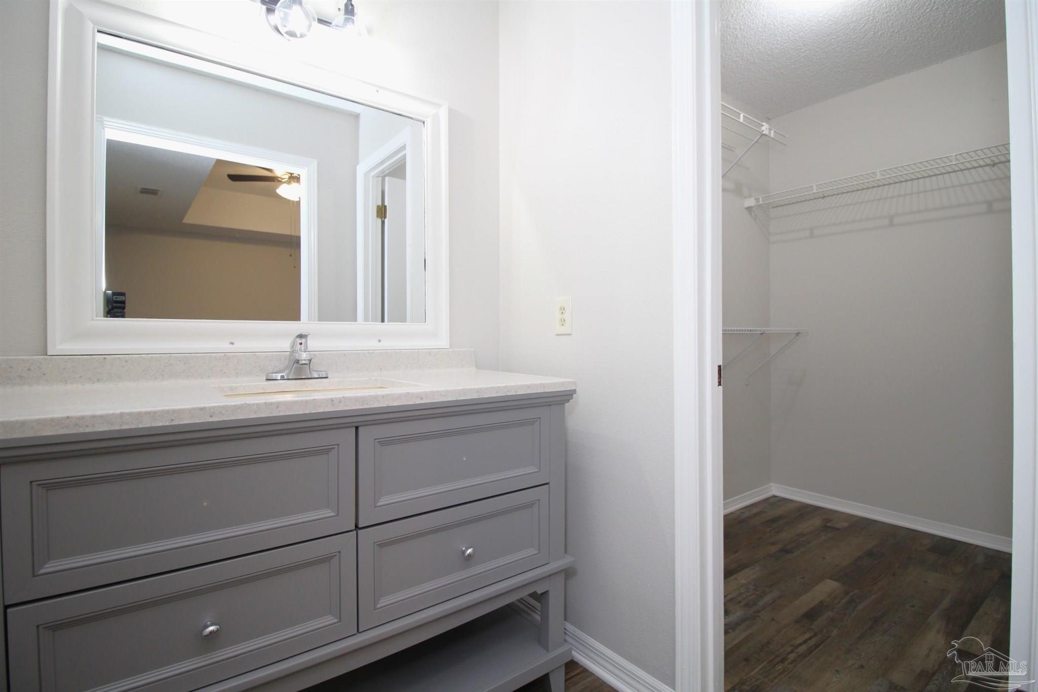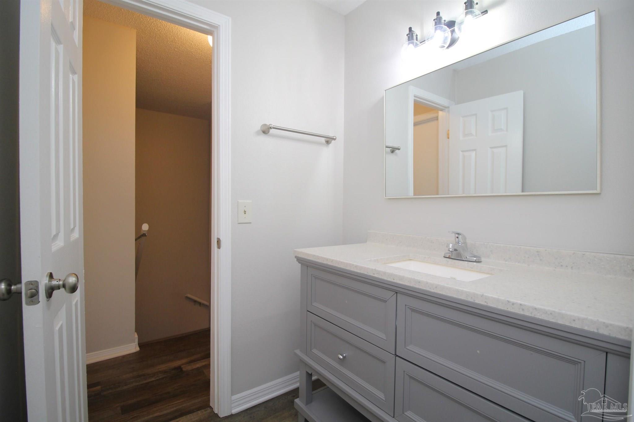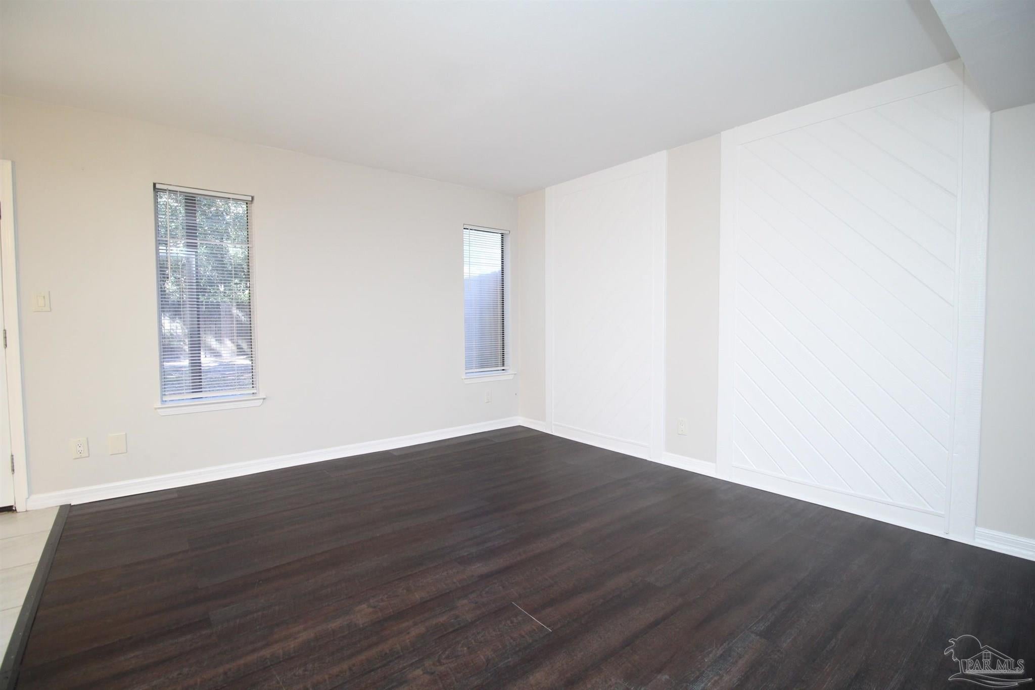 Spacious 2-story townhome conveniently located near I-10, Pensacola State College, and just 15 minutes from Pensacola Beach, offering over 1,500 sq. ft. of living space. The main floor features a large flexible room that can be used as an office, den, or extra living space, along with a half bath in the hall and the main living areas, including a bright living room flowing into the dining area. The tiled eat-in kitchen comes with all appliances, including refrigerator, dishwasher, and stove, along with updated cabinets. LVP flooring throughout and fresh paint give the home a clean, modern feel. Upstairs, the primary bedroom offers a tray ceiling, oversized closet, private balcony, and its own vanity area, with a door leading into the shared full Jack-and-Jill style bathroom, which features a second updated vanity and is shared with the two additional bedrooms, one of which has its own balcony facing the street. Inside laundry includes washer and dryer in as-is condition. Step outside to a fenced backyard with a covered patio, perfect for relaxing or entertaining. Pets are welcome with owner approval and a $250 non-refundable fee per pet (no aggressive breeds). Residents can opt into the Resident Benefits Package (RBP) for $45/month, which includes renter liability insurance, HVAC air filter delivery, and on-demand pest control. Available for immediate move-in.