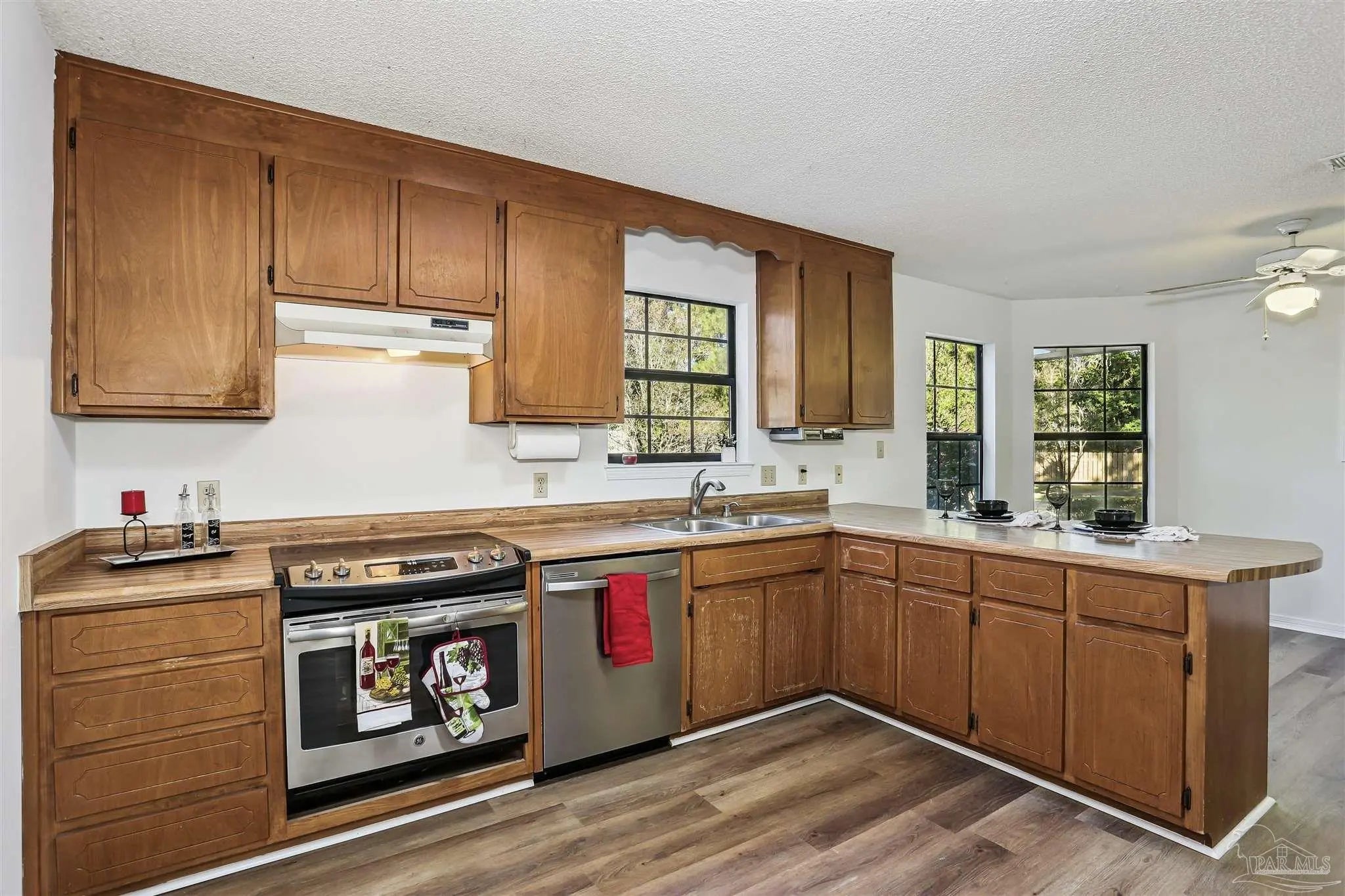 Beautifully Maintained Home in Highly Sought-After Tiger Point Village! Welcome to this charming 3-bedroom, 2-bath home located in the desirable, golf cart–friendly Tiger Point Village neighborhood. Enjoy the convenience of being just a short walk or golf cart ride to grocery stores, local restaurants, a community park with sports facilities, walking trails, and the golf course. Nestled on a quiet street surrounded by mature trees, this home offers the perfect blend of comfort, convenience, and coastal living—just minutes from the beach, boat launches, and the Santa Rosa Sound. The home has been freshly painted inside and out and features all-new LVP flooring throughout. It’s move-in ready, allowing you to settle in now and update at your own pace to make it truly your own. Relax or entertain outdoors in the fully screened-in back porch, overlooking a large backyard with beautiful shade trees. A spacious garage offers ample storage and parking. Homes in this highly sought-after area rarely last long—especially at this price. Well-priced and full of potential, this Tiger Point gem is ready for its next chapter!