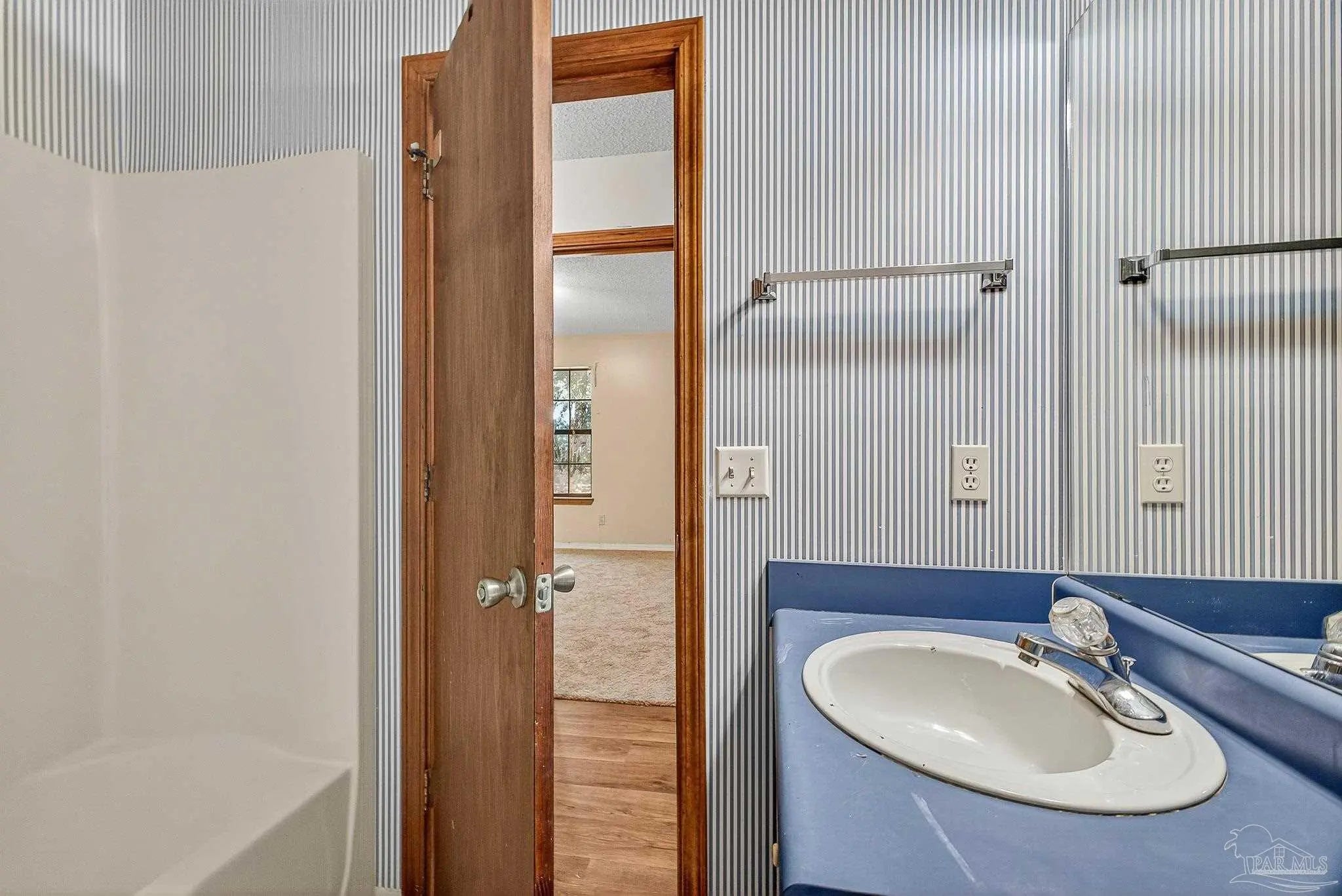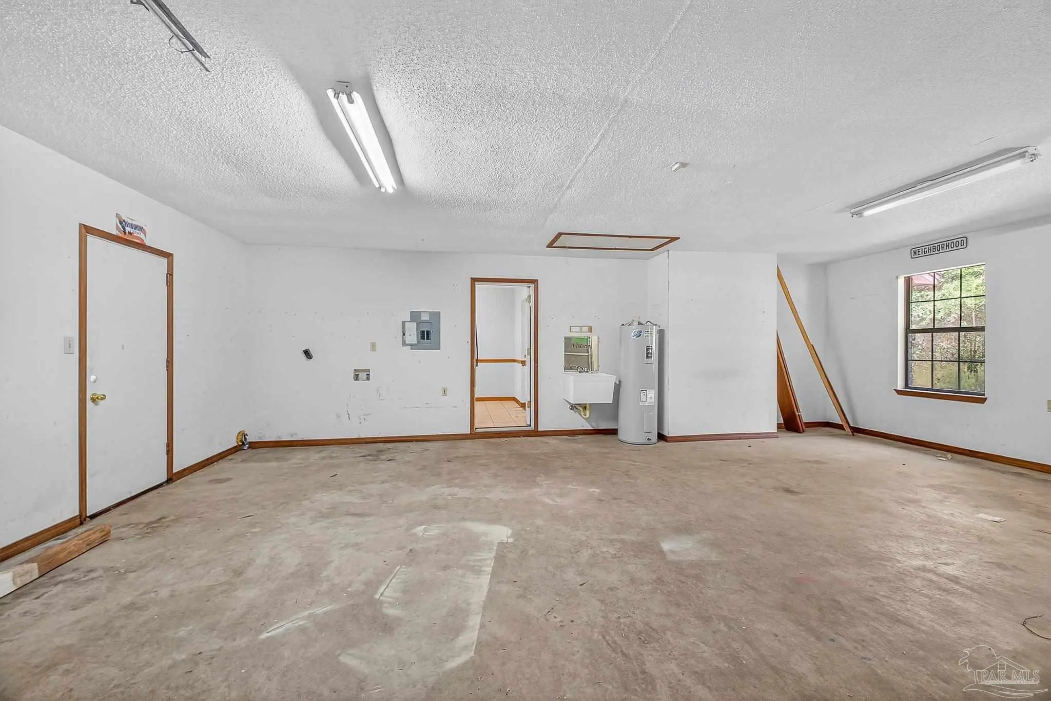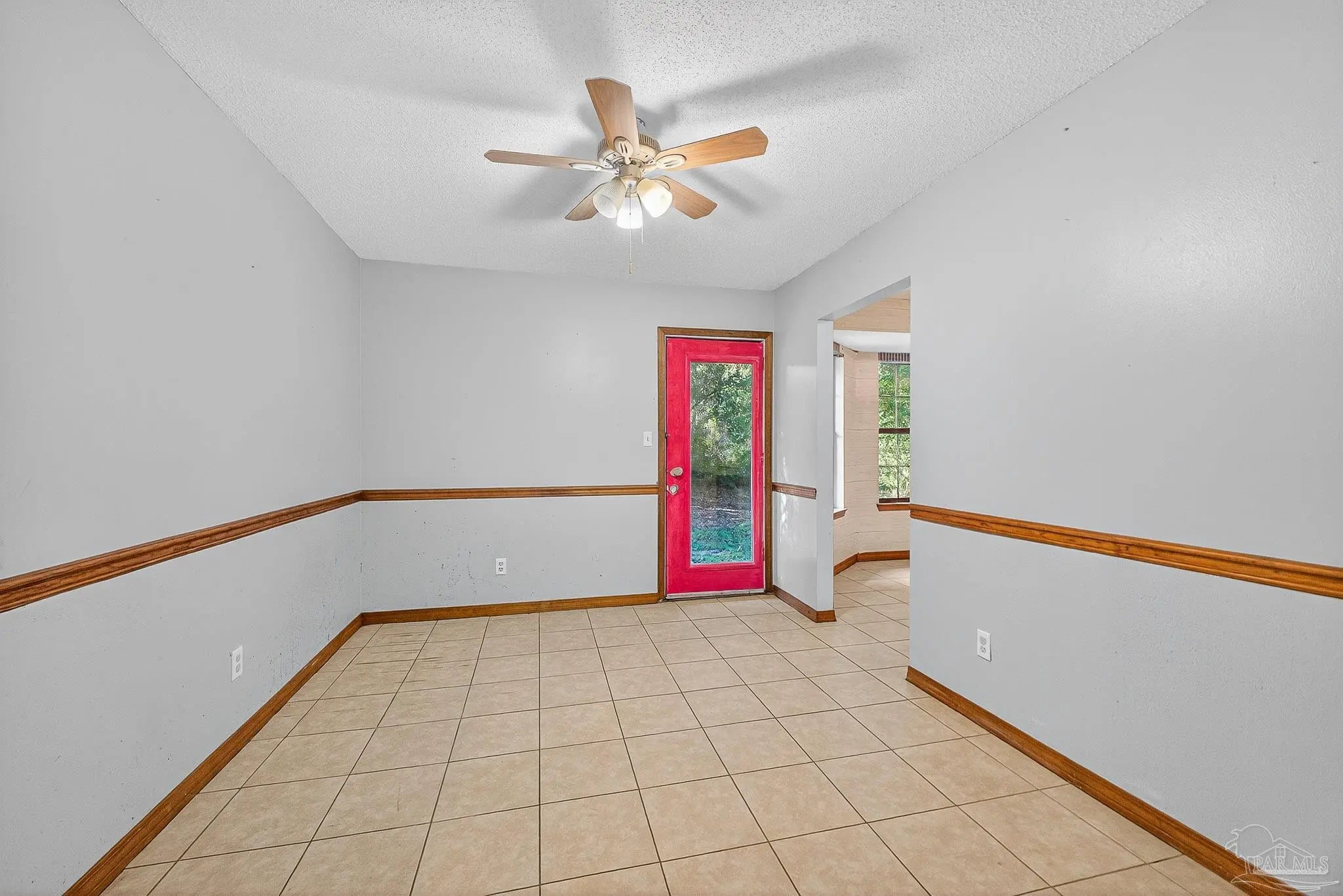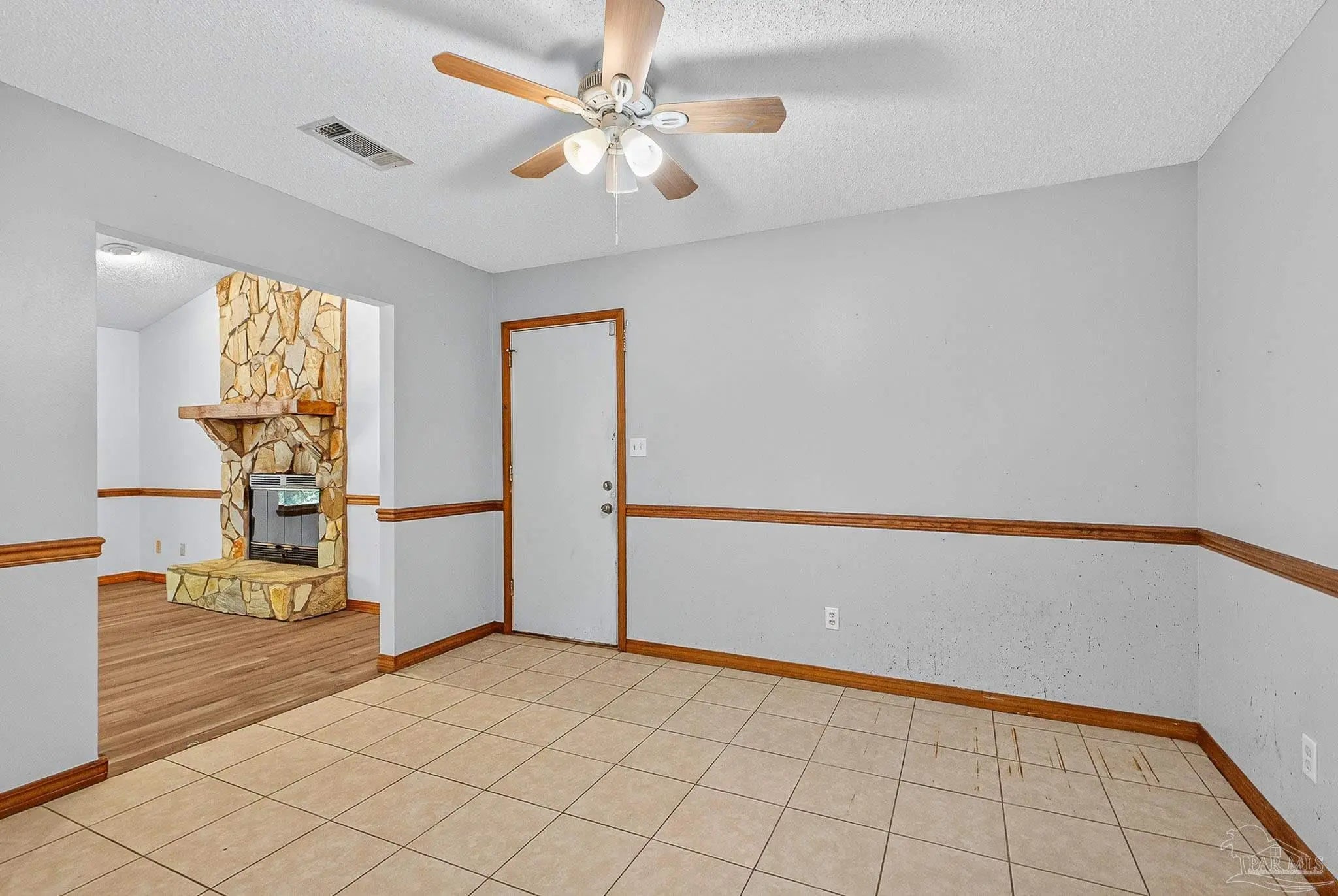 Now is your chance on this very spacious home on an expansive ONE ACRE lot. Brick home with wood siding, nice country style open front porch for rocking in the evening. New LVP flooring in the great room and hallway, with new carpet in the bedrooms. New HVAC unit installed in 2025. House features vaulted ceiling and fireplace in the Great Room; a formal dining room; breakfast nook in kitchen with island, smooth-top burners on cooktop, separate oven, new microwave, and new refrigerator; chair rail through Great Room, dining room, hallway, master bedroom; oversized 2-Car garage with washer/dryer hookup, pull-down stairs with lighting and storage. Master Bed/Bath area has 2 master closets and double vanity sinks. Hallway has extra large storage room with shelving. Ceiling fans located in master bedroom and great room. New roof installed in 2005. Two septic tanks - one large, one small. Seller has left portions of front and rear yard in natural state for privacy. Do not miss your chance to own a full acre of land while still being in the heart of Pace.