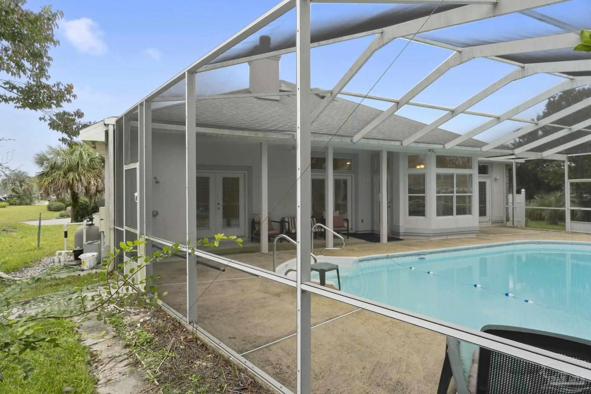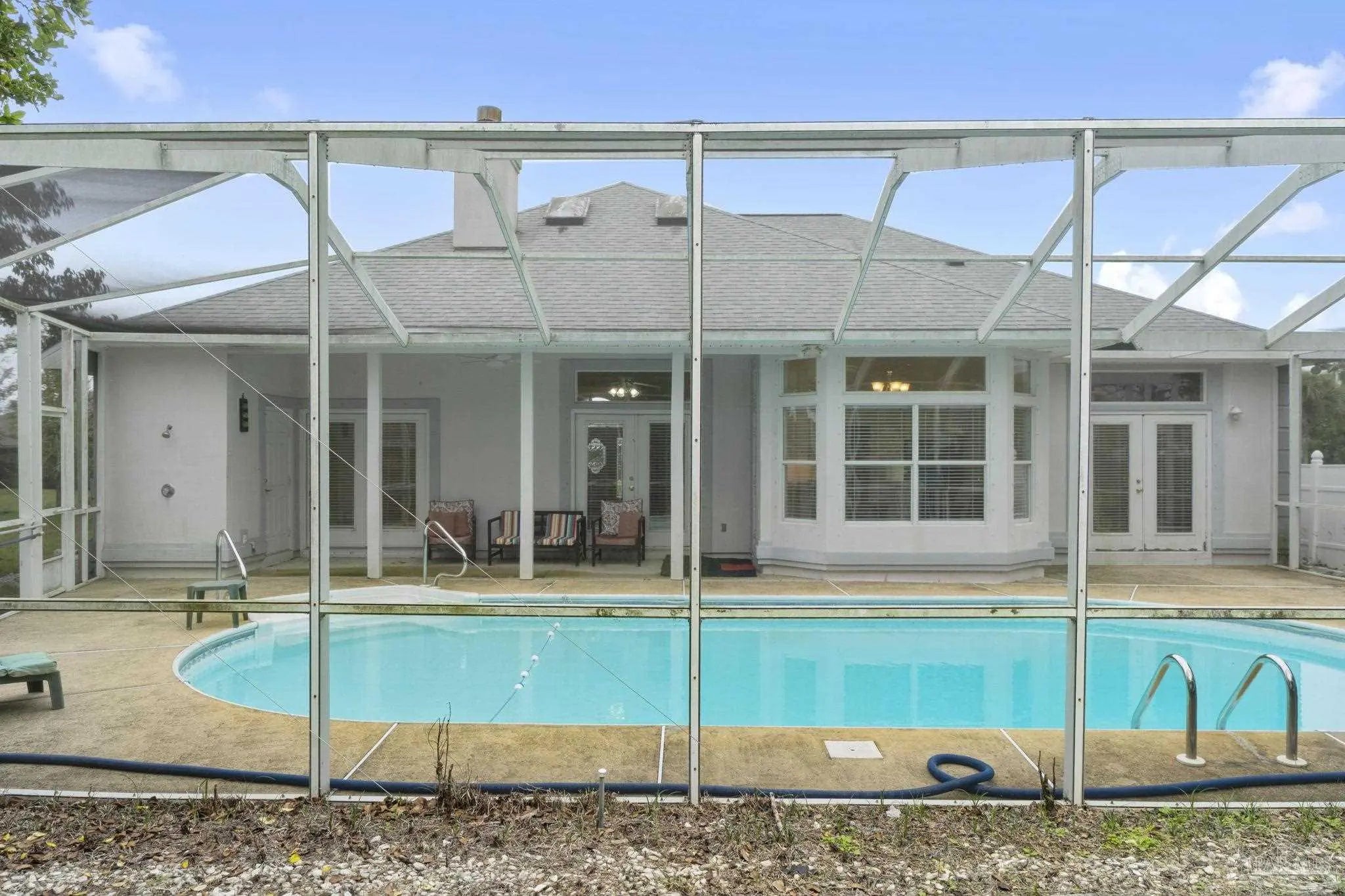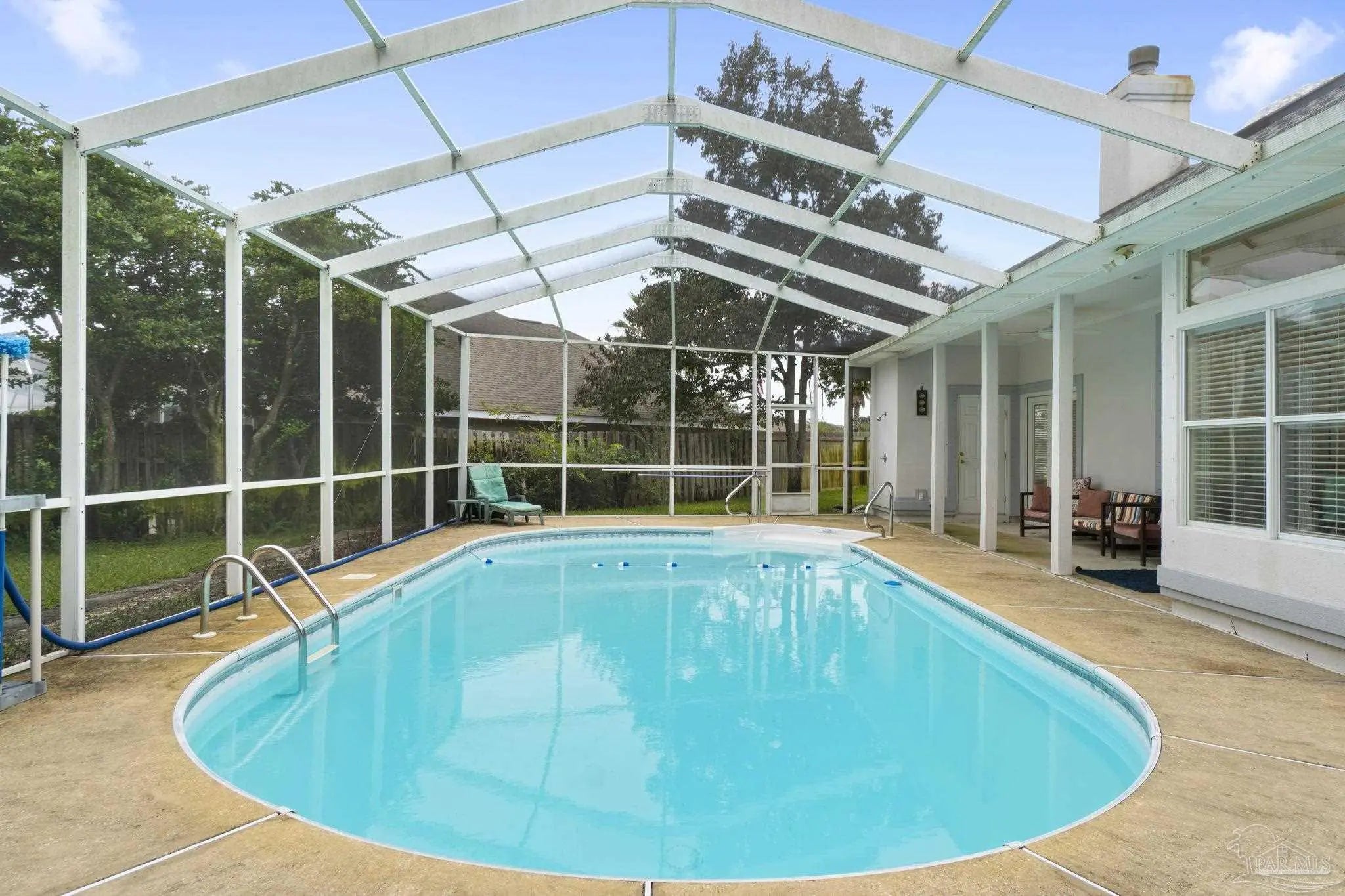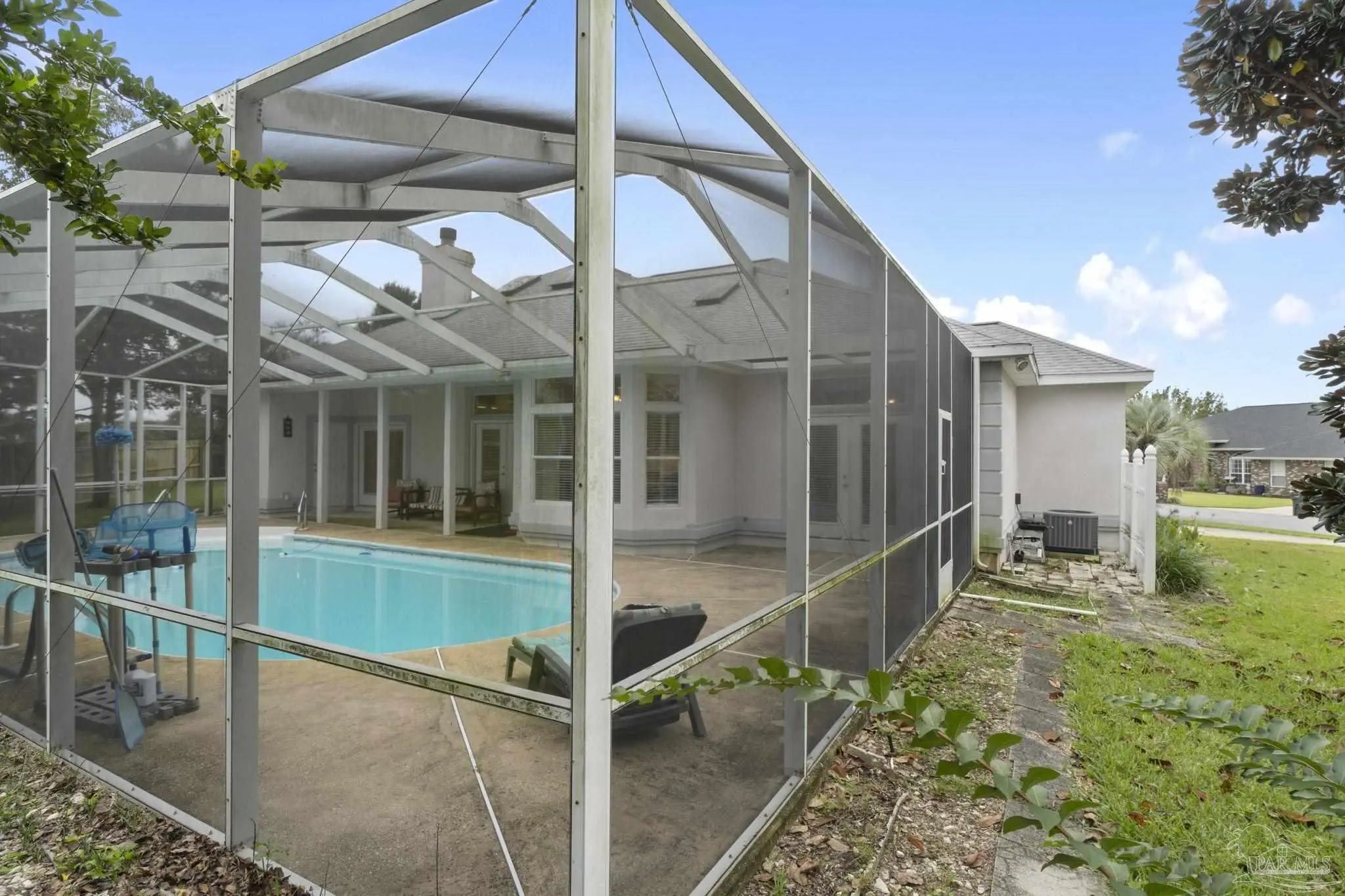 This beautifully maintained South Florida–style home in Chevalier, built in 1997, offers 2,045 square feet of inviting living space. With 3 bedrooms and 2 baths, and a large office area, this home combines comfort, functionality, and timeless design. Inside, vaulted ceilings in the kitchen and great room create an open, airy feel, while skylights and lighted plant ledges bring warmth and character. Flooring includes a mix of tile and carpet, and the great room is centered by a cozy gas fireplace. The kitchen features a gas cooktop, complemented by a gas water heater for efficiency. An indoor laundry room adds everyday convenience. The primary suite serves as a private retreat, while the additional bedrooms provide ample space for family or guests. A side-entry garage, complete with built-in cabinets, ensures privacy and extra storage. Situated on a desirable high corner lot with established landscaping, this property includes a new roof, HVAC system, pool enclosure, and brand new windows. Outdoors, enjoy your private inground swimming pool, enhanced by a screened enclosure. Located just minutes from Johnson Beach and military bases, this home offers the perfect blend of relaxation, convenience, and coastal living. A must-see property that is move-in ready and designed for both everyday comfort and entertaining.