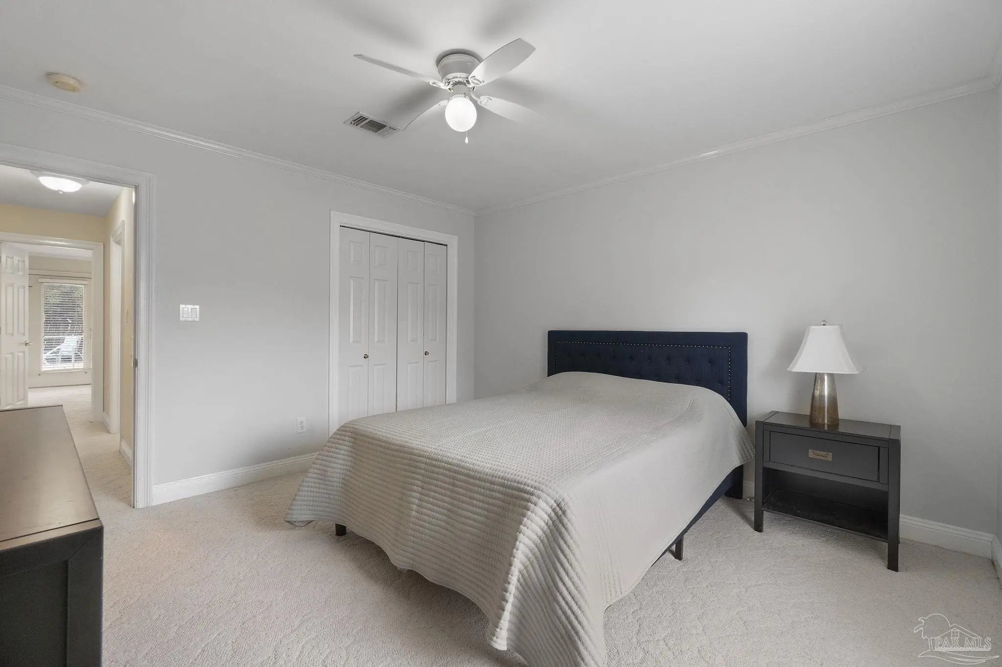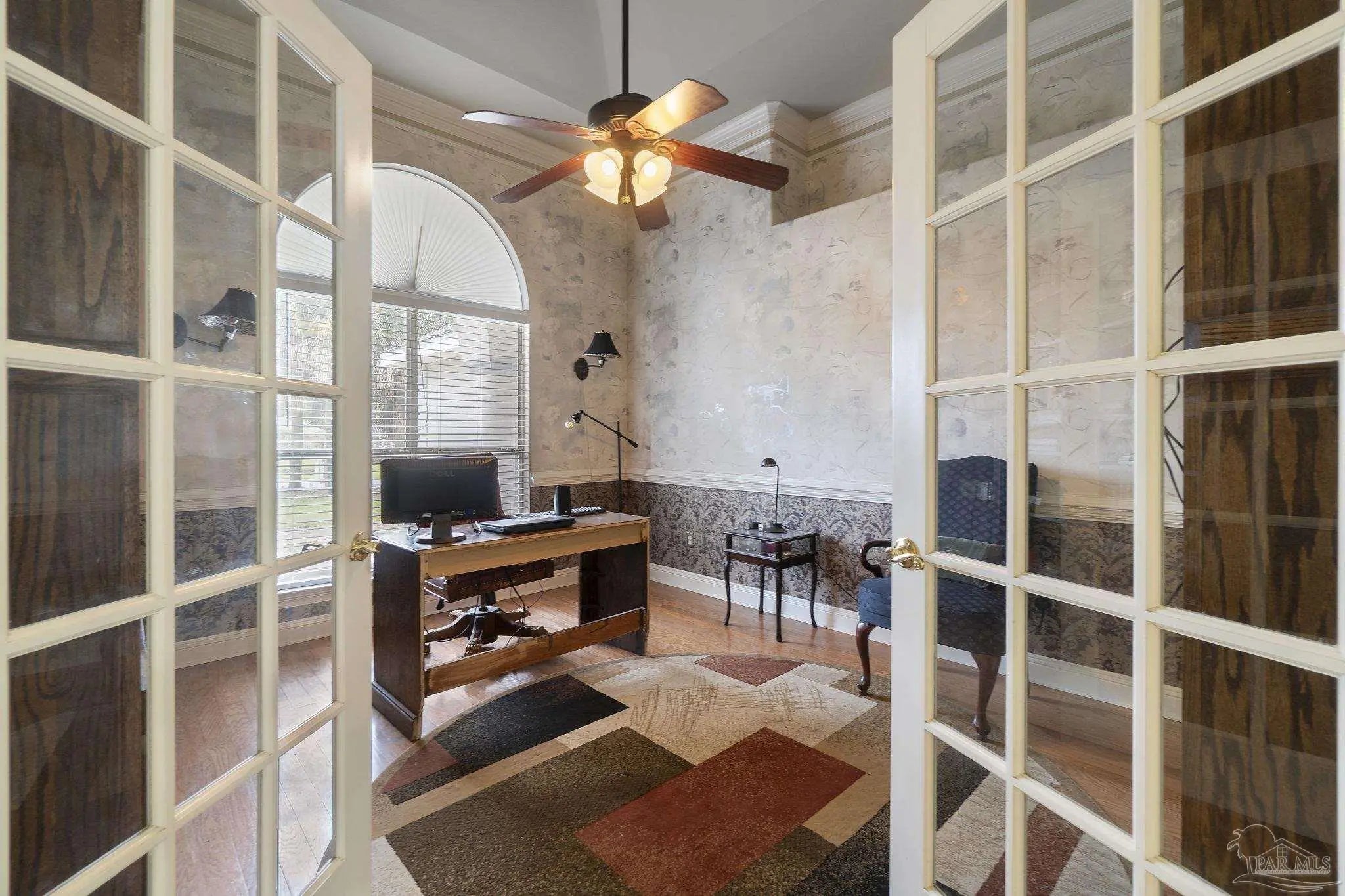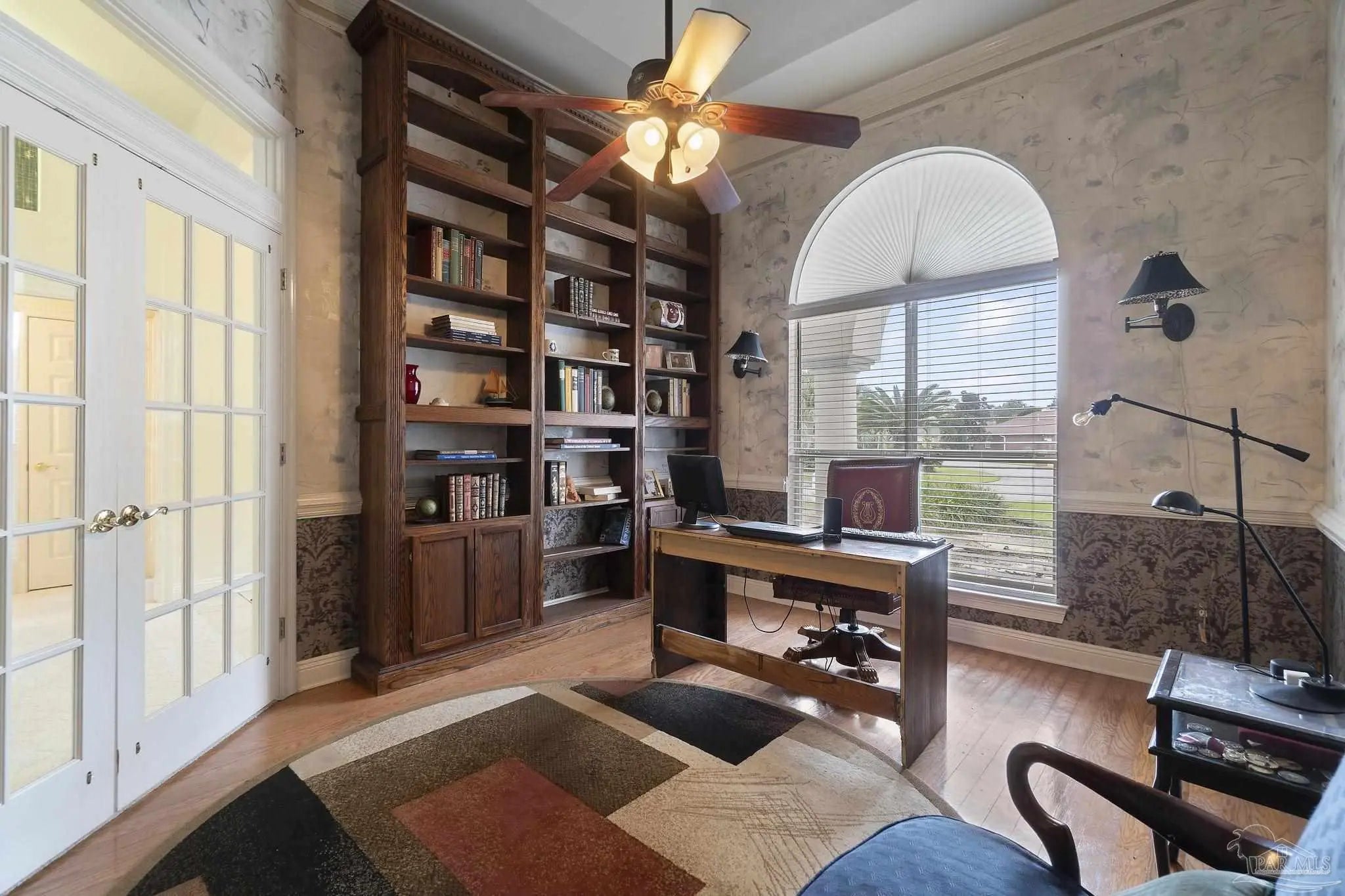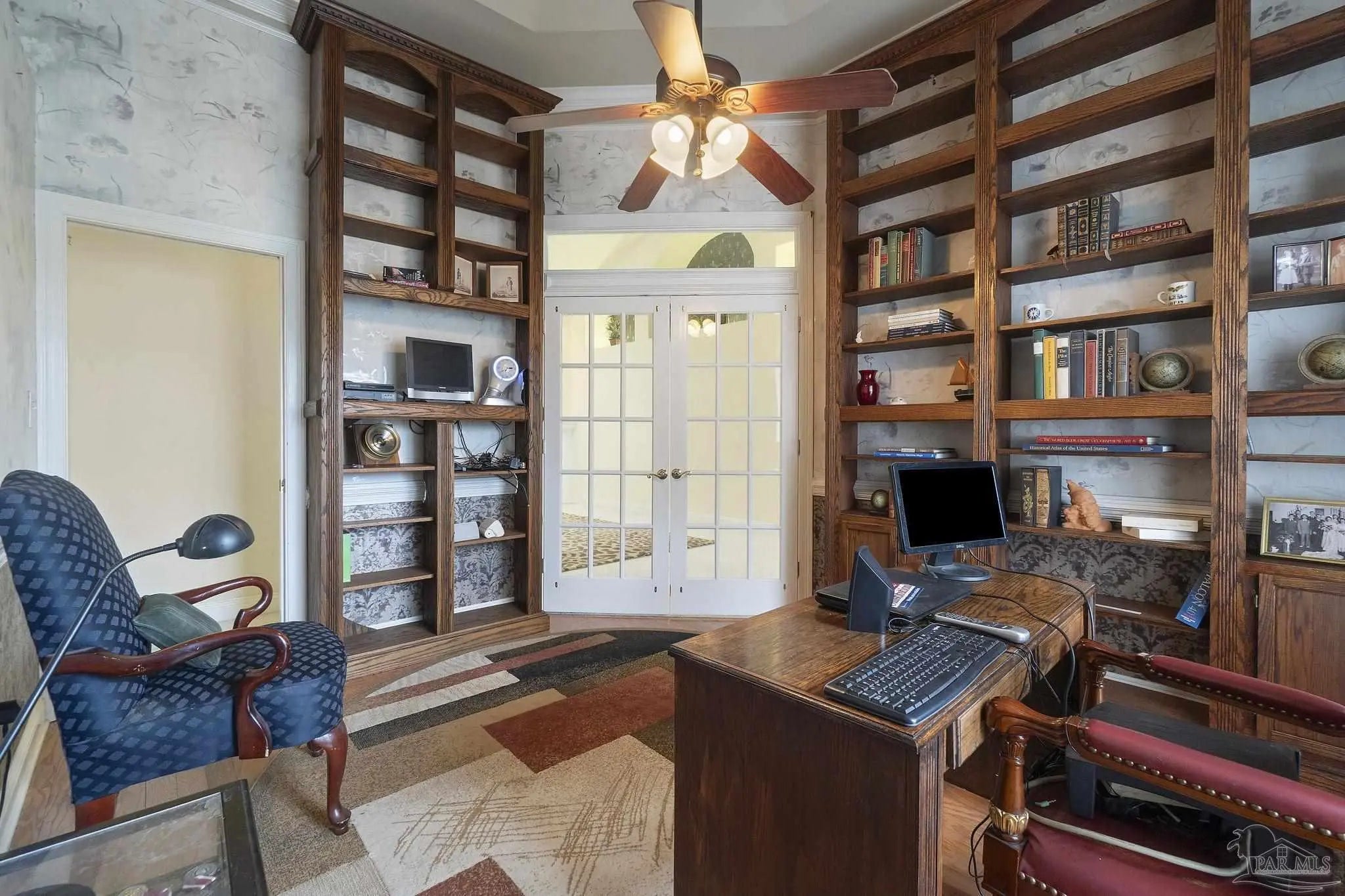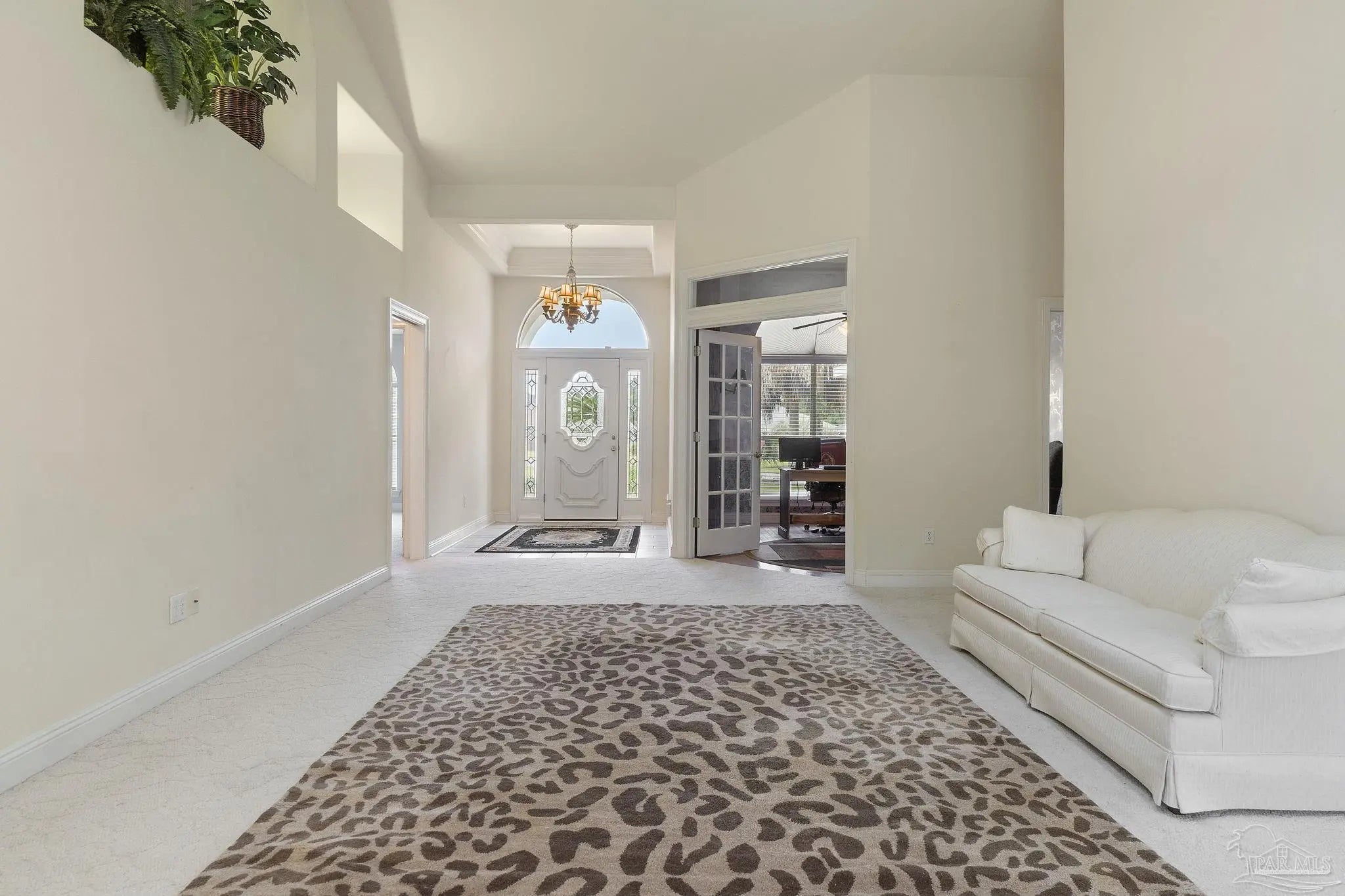 This beautifully maintained South Florida–style home in Chevalier, built in 1997, offers 2,045 square feet of inviting living space. With 3 bedrooms and 2 baths, and a large office area, this home combines comfort, functionality, and timeless design. Inside, vaulted ceilings in the kitchen and great room create an open, airy feel, while skylights and lighted plant ledges bring warmth and character. Flooring includes a mix of tile and carpet, and the great room is centered by a cozy gas fireplace. The kitchen features a gas cooktop, complemented by a gas water heater for efficiency. An indoor laundry room adds everyday convenience. The primary suite serves as a private retreat, while the additional bedrooms provide ample space for family or guests. A side-entry garage, complete with built-in cabinets, ensures privacy and extra storage. Situated on a desirable high corner lot with established landscaping, this property includes a new roof, HVAC system, pool enclosure, and brand new windows. Outdoors, enjoy your private inground swimming pool, enhanced by a screened enclosure. Located just minutes from Johnson Beach and military bases, this home offers the perfect blend of relaxation, convenience, and coastal living. A must-see property that is move-in ready and designed for both everyday comfort and entertaining.