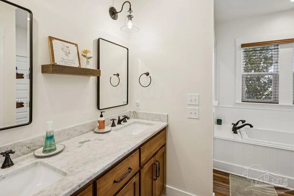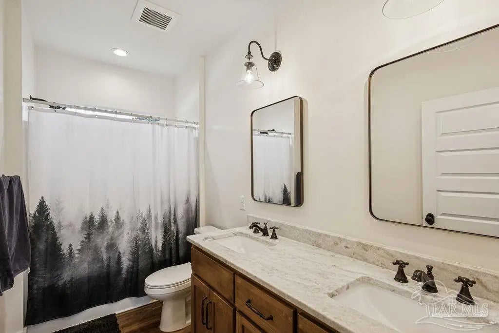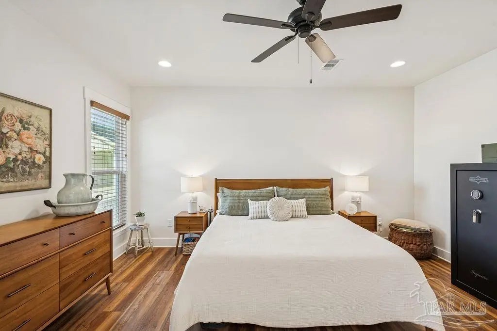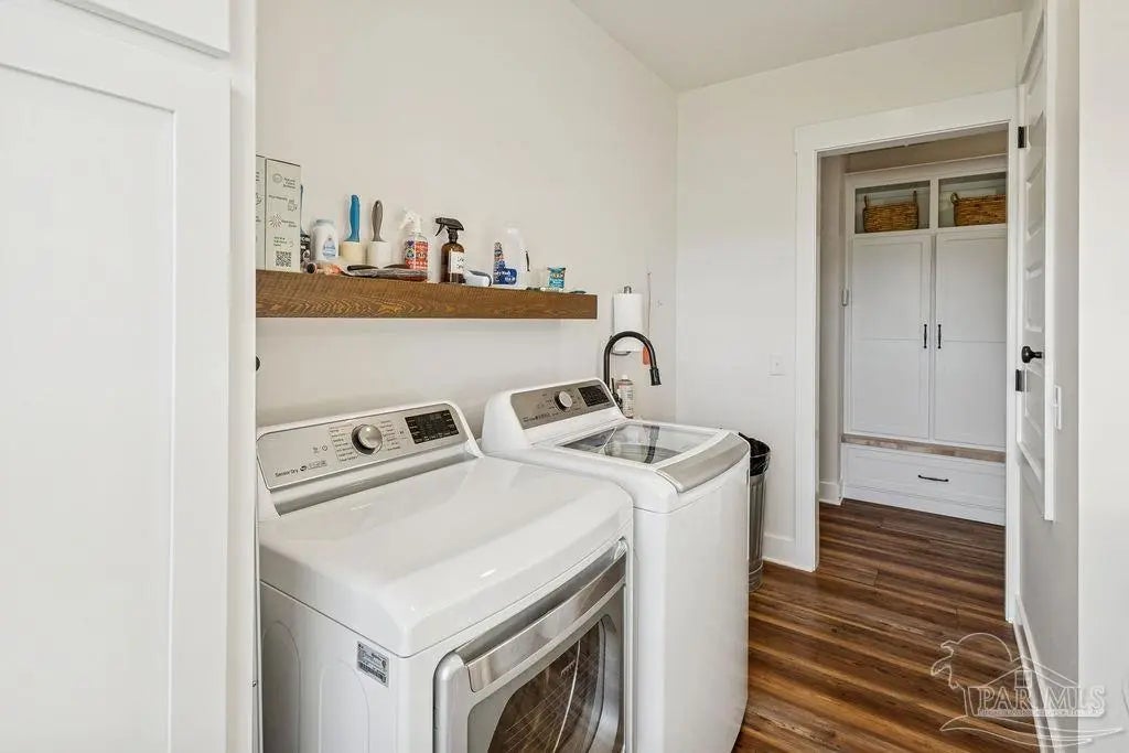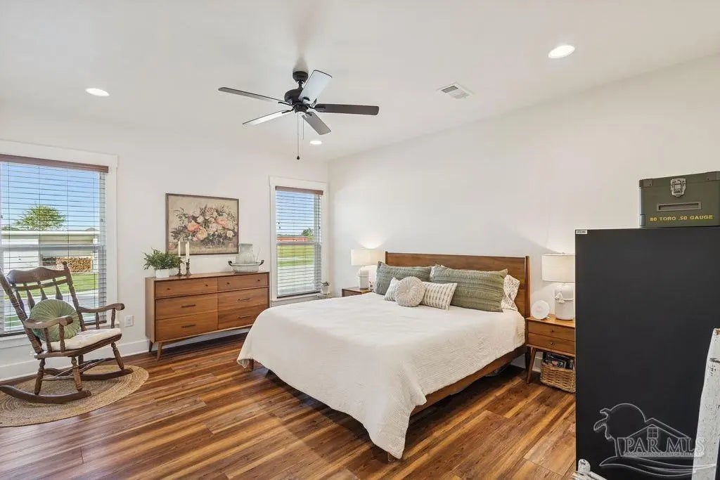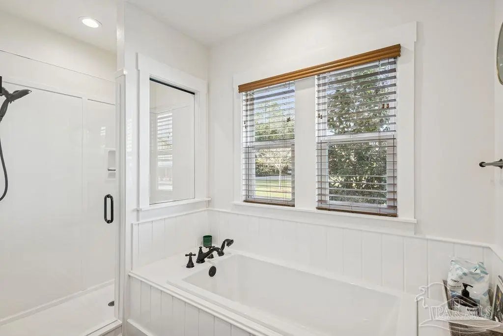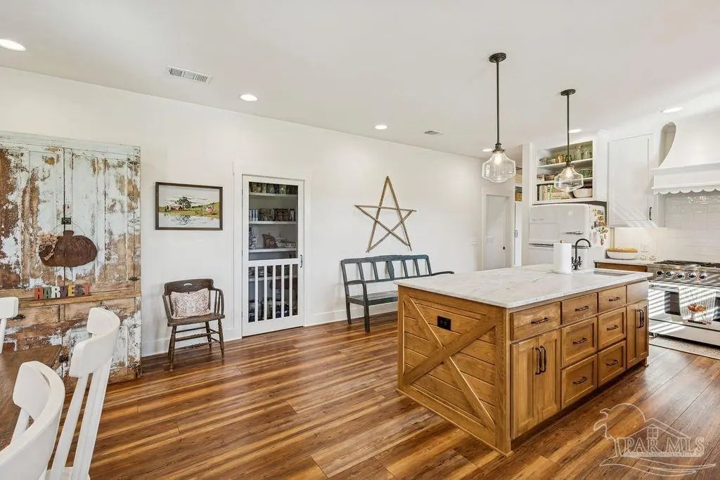 Beautifully designed home on 5 scenic acres surrounded by high-end estates. Ideally located just 5 minutes to Five Points and 20 minutes to Pensacola, this property features 2,263 sq ft of well-planned living space, a 30x50 insulated red-iron workshop, and quality finishes throughout. Interior highlights include LVP flooring, a wood-burning fireplace, and soft-close cabinetry paired with leathered Dolomite countertops and Big Chill appliances, including a gas range. The kitchen offers a tile backsplash, built-in pantry shelving with a charming screen door, and a separate mudroom entry with beautiful built-ins. The primary suite includes a walk-in closet with built-ins, a drop-in tub, and a marble walk-in shower. Additional bedrooms feature a 1 bedroom w a private en-suite and 2 additional bedrooms sharing a hallway bath with dual sinks and hallway linen storage. Additional features include: • Whole-home air purifier integrated into HVAC • Spray-foam insulation • Two 50-gallon electric water heaters • Screened back porch with dual exterior doors & transoms • Spacious laundry room with Charles Phillips barn doors • Well with pH neutralizer and filtration system Exterior amenities include a 30x50 engineered red-iron shop (25x30 enclosed + 25x30 carport) with concrete flooring, RV hookup (50 amp), generator switch, concrete drive, gutters, irrigation, wet-weather pond, and fencing. 3500 Red Ryder Lane offers the perfect balance of luxury, privacy, and convenience in a highly desirable Northwest Florida setting.