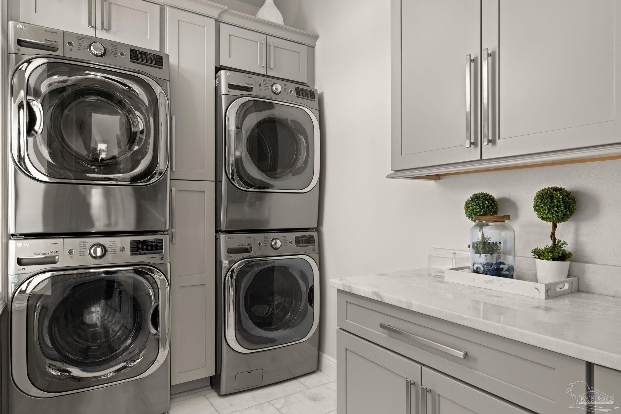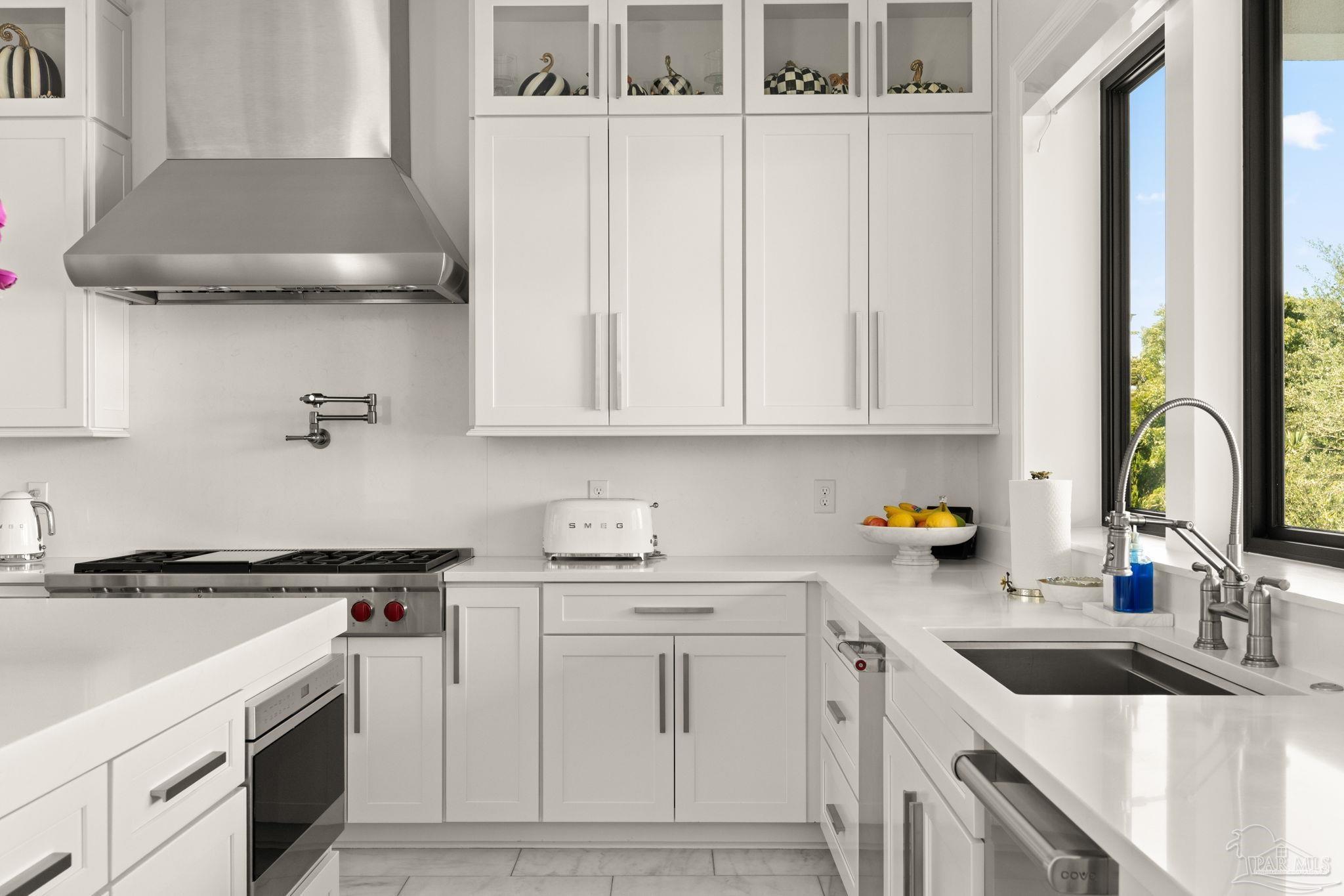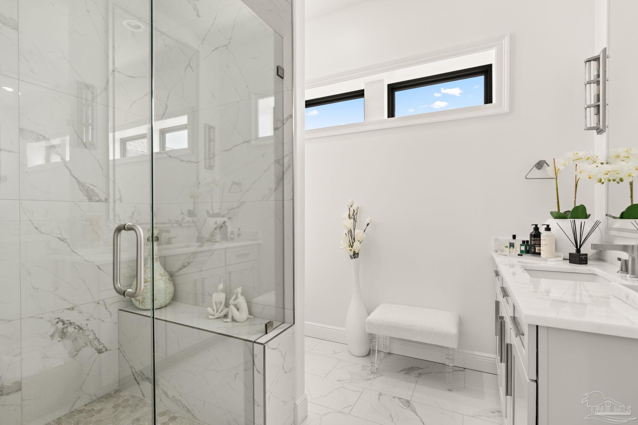 Experience modern coastal elegance in this architecturally stunning Brian Spencer home, ideally located in the prestigious Santa Rosa Shores community of Gulf Breeze. Built in 2021 with ICF construction, this residence was designed for strength, efficiency, and enduring beauty — blending timeless craftsmanship with contemporary design. This 5-bedroom, 5-bath home offers expansive, light-filled spaces with soaring ceilings, designer lighting, and exquisite millwork throughout. The chef’s kitchen is a showpiece featuring Wolf appliances, a built-in coffee system, quartz countertops, custom cabinetry, and a generous walk-in pantry — seamlessly connected to the open-concept living and dining areas, perfect for both entertaining and everyday living. A private elevator provides access to all levels, while the primary suite offers a priceless views and a serene retreat with a spa-inspired bath. The oversized walk incloset will bring so much joy to the Lady of the house with its ambiance and luxe feel. Additional highlights include a dedicated 8.1 surround-sound theater, smart home automation, and an oversized tandem garage with built-in storage. The outdoor living space rivals any resort, showcasing a newly constructed gourmet kitchen with premium appliances, bar seating, and stone detailing, all overlooking a sparkling pool and spacious patio surrounded by tropical landscaping. Located minutes from Tiger Point Golf Club, the public boat launch, boutique dining, playground, pickle ball courts, top-rated schools — and just a short drive to the sugar-white sands of Pensacola Beach — this property captures the best of coastal living. Listed below appraised value, this Brian Spencer masterpiece offers unmatched quality, innovation, and lifestyle along the Gulf Coast.