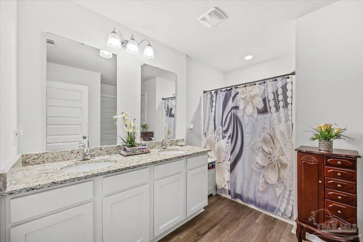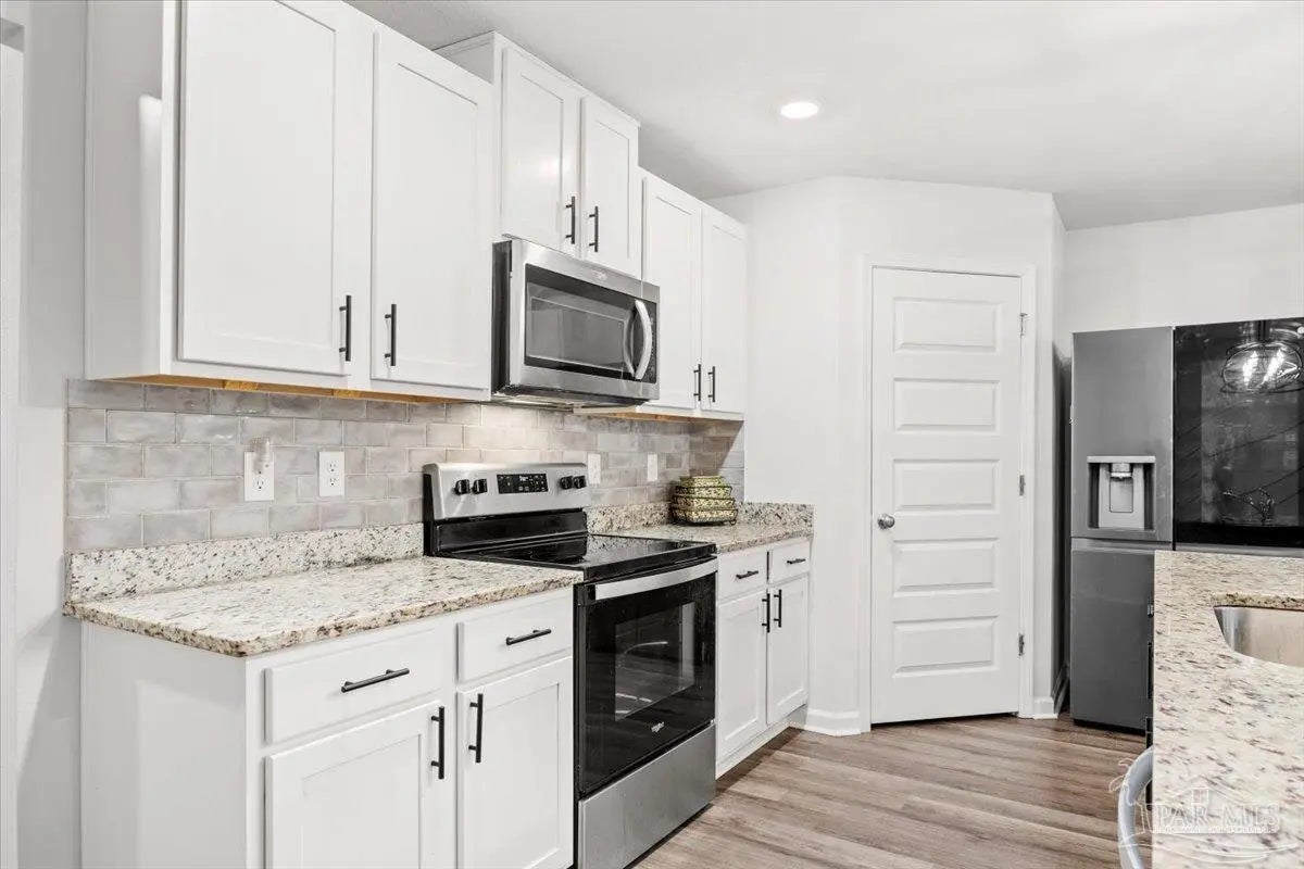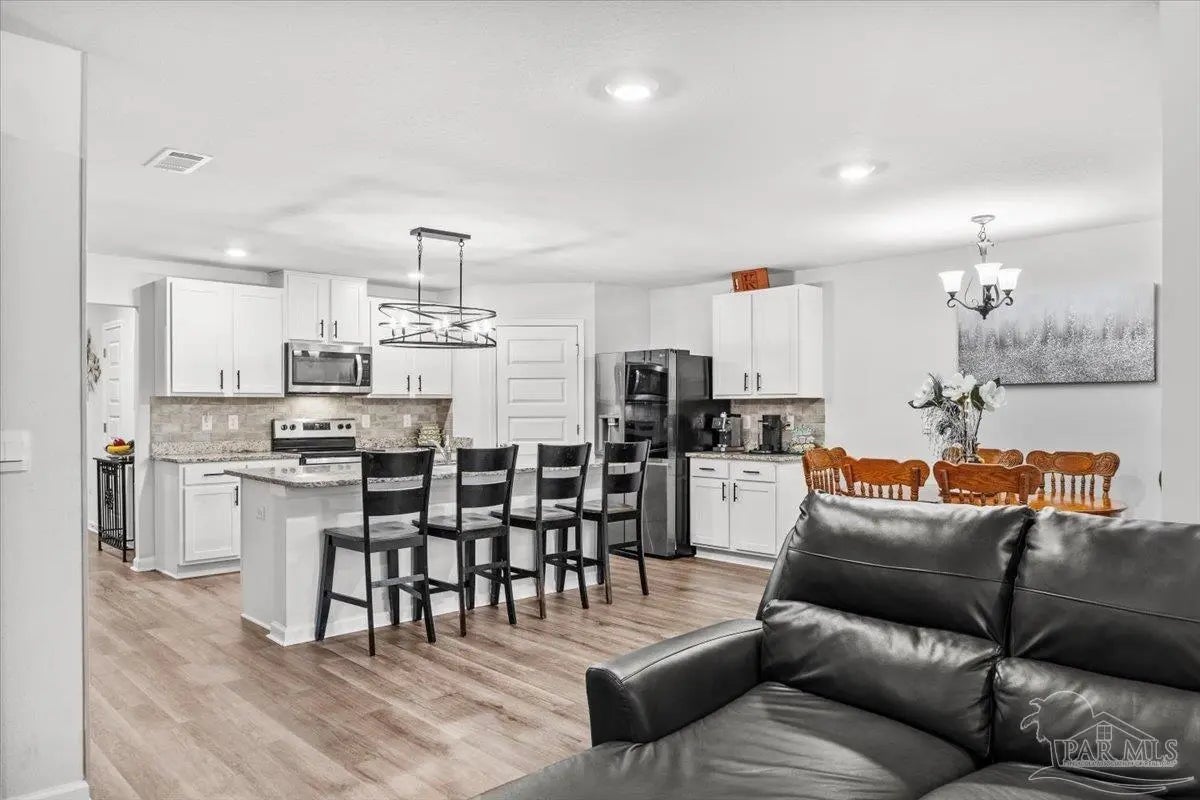Discover this beautifully updated 2023 Craftsman-style home located in the heart of East Milton. Featuring 4 bedrooms and 2 baths, this residence blends modern design with timeless character, offering both style and function for today's lifestyle. As you step inside.. an open-concept living area bathed in natural light, enhanced by contemporary finishes and an eye-catching Art Deco painted feature wall adding personality and elegance to your living space. The kitchen is a chef's delight, showcasing granite countertops, sleek cabinetry, a spacious island, and matching granite surfaces in all wet areas. Whether you're preparing dinner or hosting guests, this space is designed to impress. Every window has been fitted with 2-inch faux wood blinds, providing privacy, light control, and a polished touch throughout the home. The primary suite offers a serene retreat with ample space, a walk-in closet, and a spa-inspired ensuite. The property also boasts a fully fenced-in backyard for your outdoor privacy, children and pets.