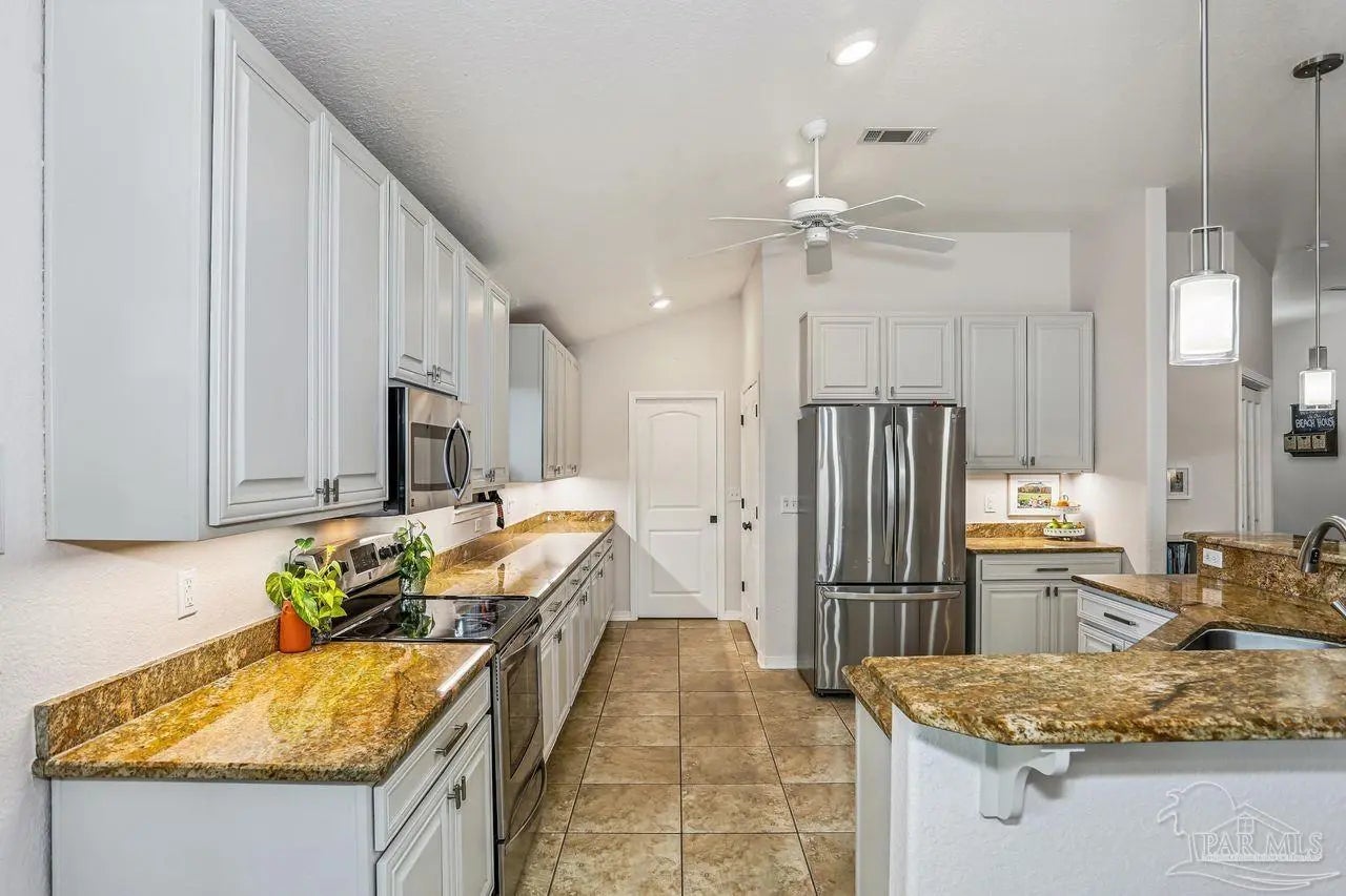 This inviting 3-bedroom, 2-bathroom home features an open floor plan designed for comfortable living and easy entertaining. The spacious kitchen offers granite countertops, stainless steel appliances, a large pantry, abundant cabinetry, generous workspace, a breakfast bar, and an eat-in dining area. The split floor plan provides privacy with the primary suite located separately from the additional bedrooms. The primary bedroom is generously sized, includes backyard access, and features a large walk-in closet. The luxurious primary bath boasts a huge walk-in shower, double vanity, and granite countertops. The additional bedrooms are nicely sized, and the laundry room offers exceptional storage with built-in cabinets. Step outside to a fully fenced backyard with both a screened porch and an open patio—perfect for relaxing in the shade or entertaining guests. Located in a quiet cul-de-sac within an established neighborhood, this home offers sidewalks, underground utilities, and mature landscaping for a welcoming, well-kept community feel.