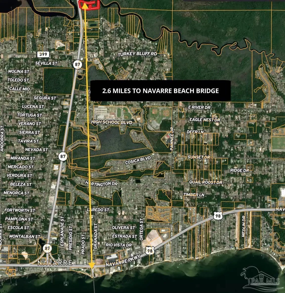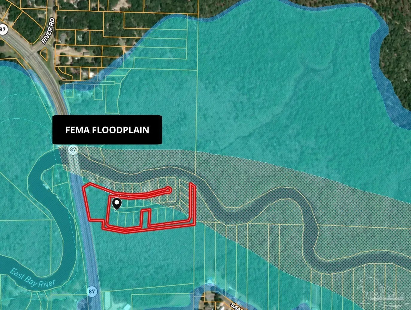 Rare Waterfront Opportunity in Navarre! Presenting 2.02 acres of prime waterfront land with incredible potential for development. This property features approximately 1 acre of buildable land—perfect for a custom single-family residence—while offering both privacy and convenience just off Highway 87. For boating enthusiasts, the East boat launch is right across the highway. The parcel includes 47 feet of East Bay frontage plus an additional 0.25-acre parcel with 75 feet of river frontage, providing expansive East Bay River views. Zoned R1M (Mixed Residential), the property allows for multiple residential possibilities. Situated within flood zone AE with an 8-foot elevation, this land provides extra security and peace of mind. Just 5 miles from Navarre Beach, you can enjoy the area’s renowned white sand beaches, shopping, and dining while living in a tranquil, natural setting. This is a rare chance to own waterfront property in one of Navarre’s most desirable and rapidly growing areas—the perfect spot for your dream home or a smart investment. Don’t miss out—schedule a showing and explore the possibilities today!