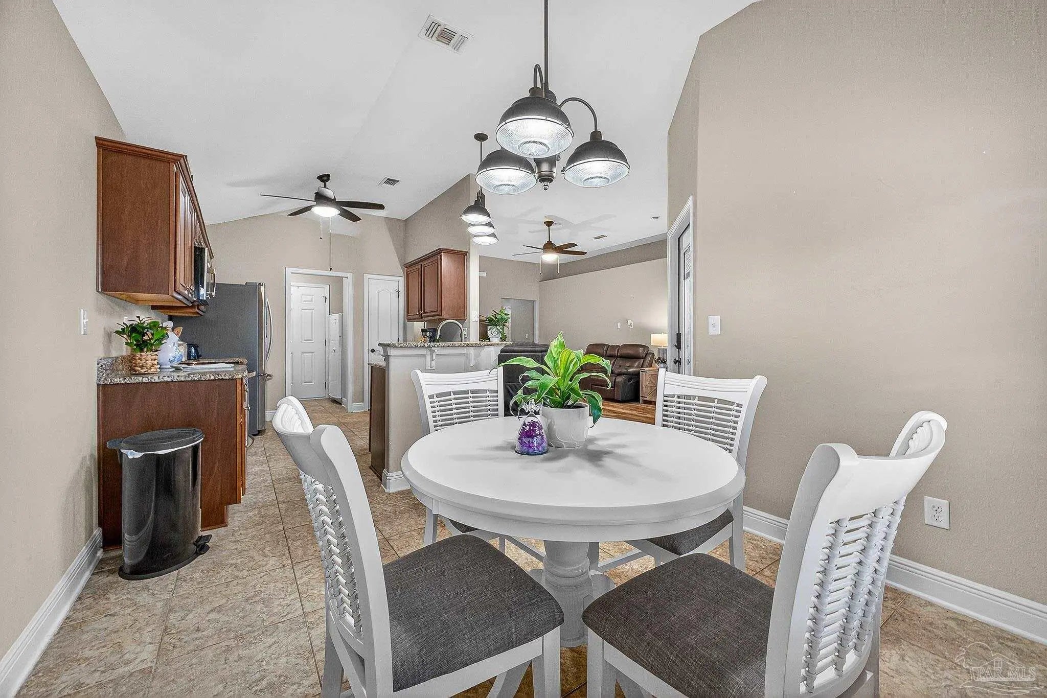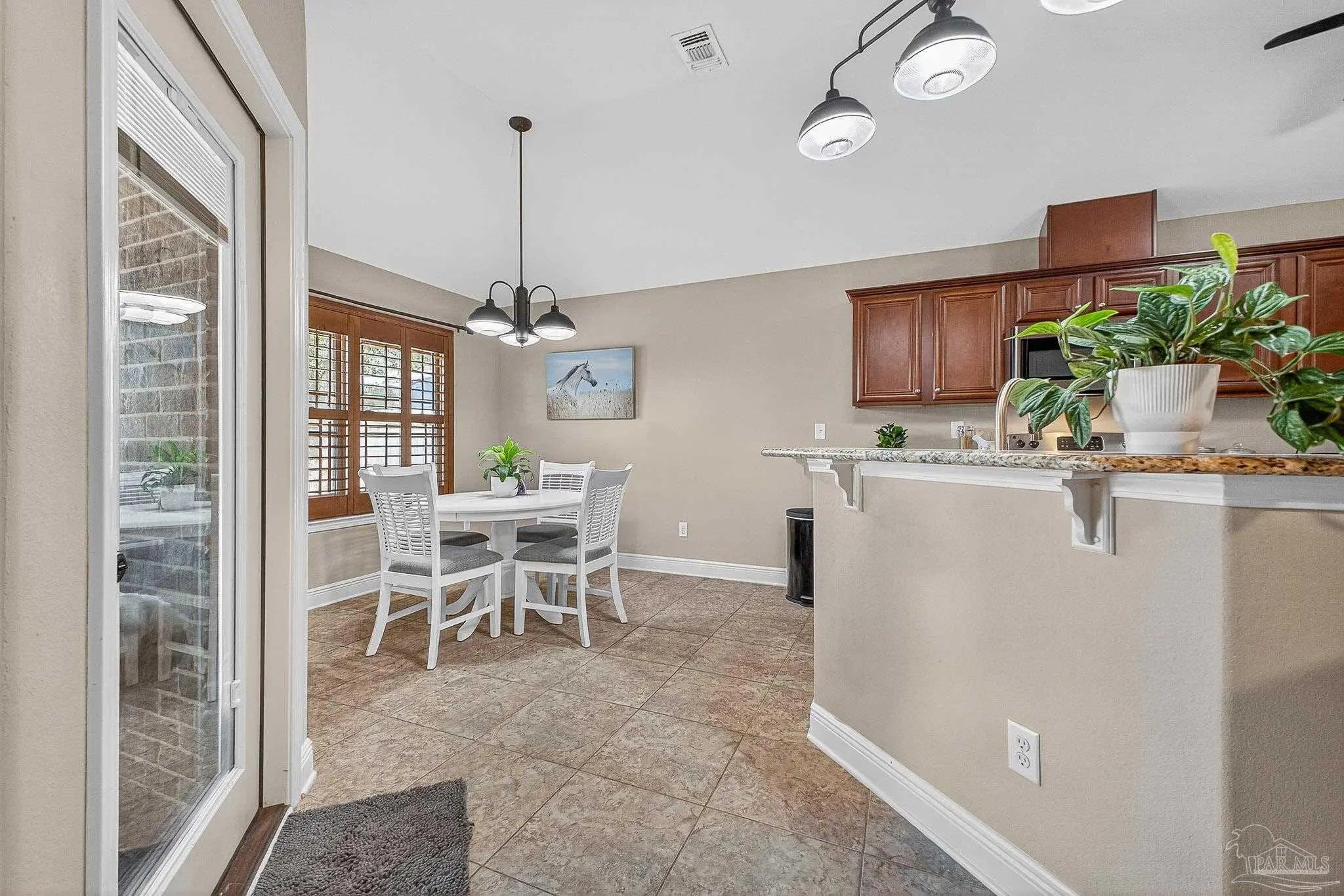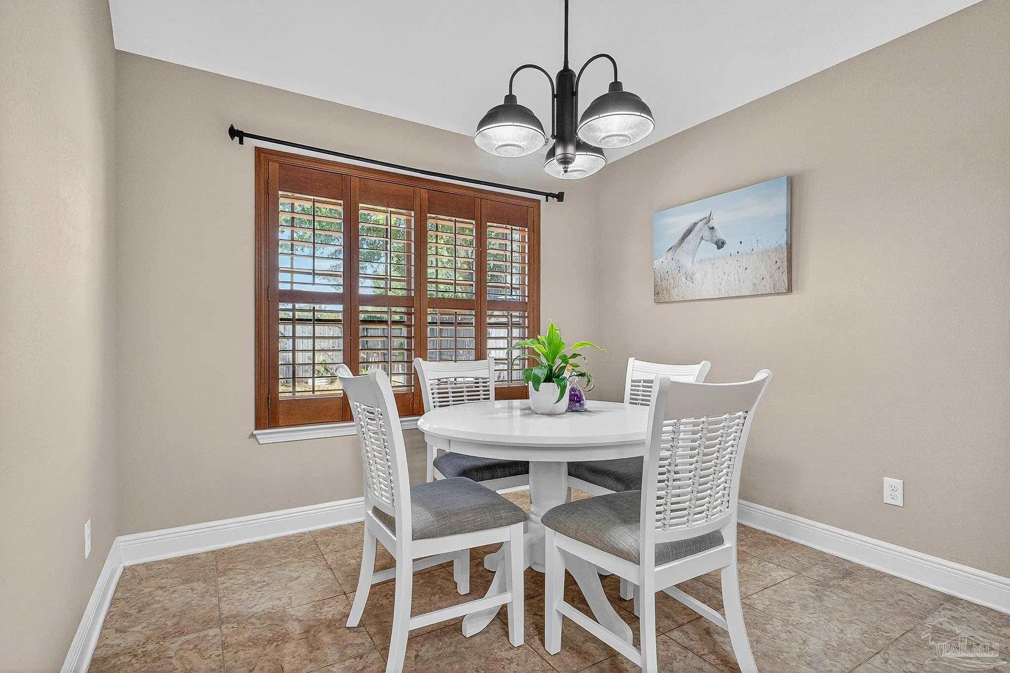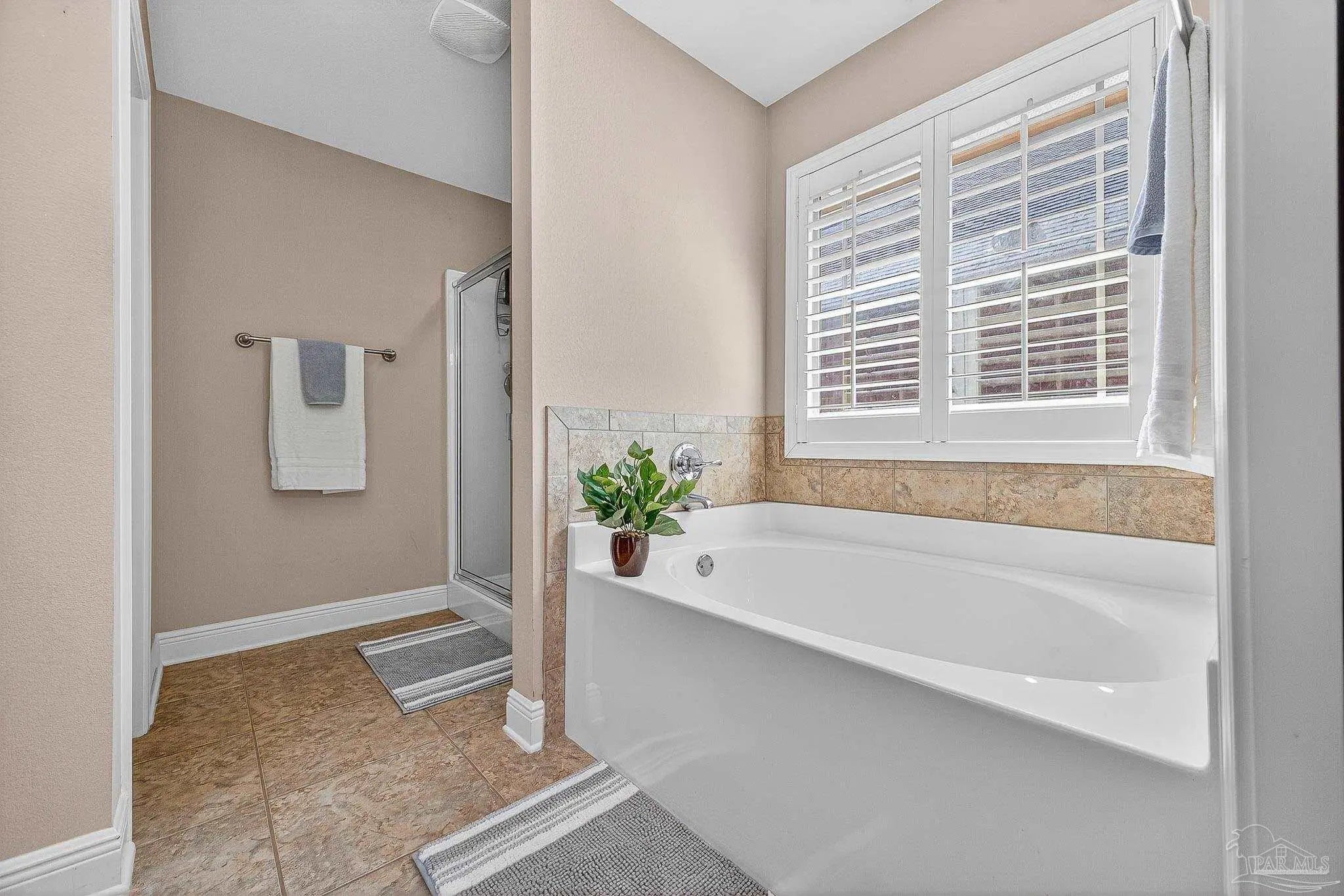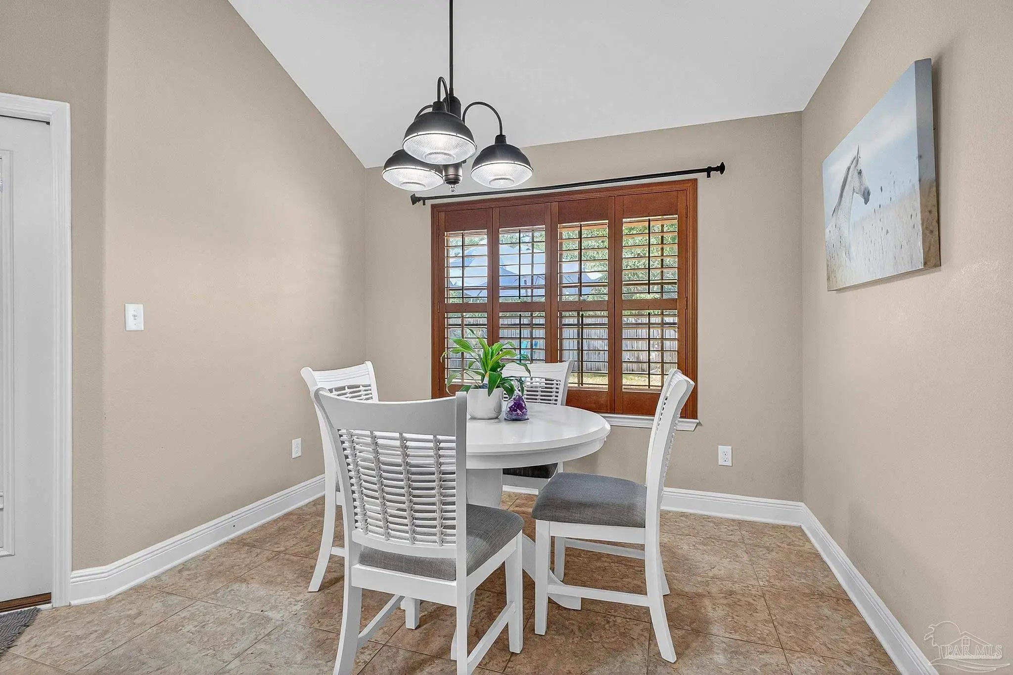 Your next home is here! This beautiful Craftsman-style brick home with Hardie plank accents offers 3 bedrooms and 2 baths in a desirable split floor plan. The home welcomes you with a bright foyer and a spacious living room featuring 10-foot ceilings and new LVP plank flooring throughout the main areas. The kitchen is well-appointed with granite countertops, a farmhouse sink with a new faucet, stainless steel appliances (refrigerator less than one year old), pantry, breakfast bar, and a cozy breakfast nook. A conveniently located inside laundry room adds everyday ease.The primary bedroom features a tray ceiling, double windows, new carpet, and a large walk-in closet. The ensuite bath includes granite countertops, a double-sink vanity, a garden tub, a separate tile shower with glass door, tile flooring, and a private water closet. The additional bedrooms are comfortably sized and share a nearby hall bath. Additional highlights include plantation shutters, plant ledges, a lighted art nook, a tankless gas water heater, and hurricane protection shields. Outdoor features include a covered back porch, an extended sitting area with fire pit, a yard building for storage, a double car garage, and gutters. The property is surrounded by well-maintained landscaping and offers excellent curb appeal. Location of this charming home has easy access to Highway 29 and I-10. With a Publix, Walmart, and restaurants close by. Plus, only a short ride to the famous BUC-EE'S!