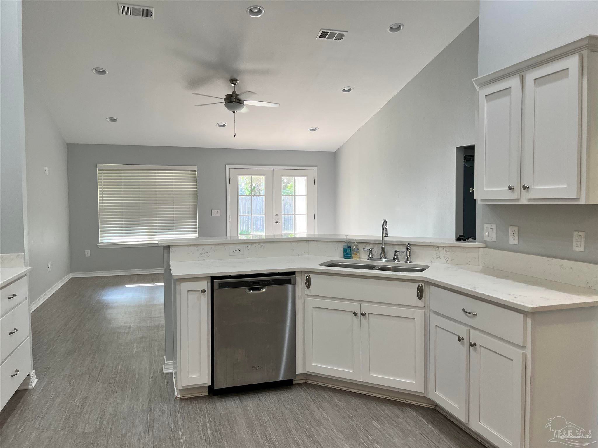 Like new Downtown Milton, 7.8 miles to Whiting Field .4 miles to Blackwater River, .5 miles to Riverwalk! Light and bright with natural light through large windows. The Kitchen is Open to the Dining Area and Living Room! Kitchen complete with soft-close White Shaker Style cabinetry, grey & white Quartz countertops, goose neck pull down faucet, deep double bowl sink, stainless steel appliances, spacious pantry, stylish lighting, under counter lighting, large windows, Dining area, and a Breakfast Bar! Spacious Living Room with lots of natural light, French Doors, high ceilings, Luxury Vinyl Plank flooring, and soft grey decorator paint! The Master Bedroom is spacious, w/ a huge walk in closet, 2 windows, fan/light fixture & Luxury Vinyl flooring! The Master Bath & Hall Bath have granite counter tops, decorator framed mirrors, and stylish lighting! Covered front and back porches, watch the river from the front or enjoy the privacy fenced back yard. All windows are energy efficient & have hurricane storm shutters for extra storm protection!