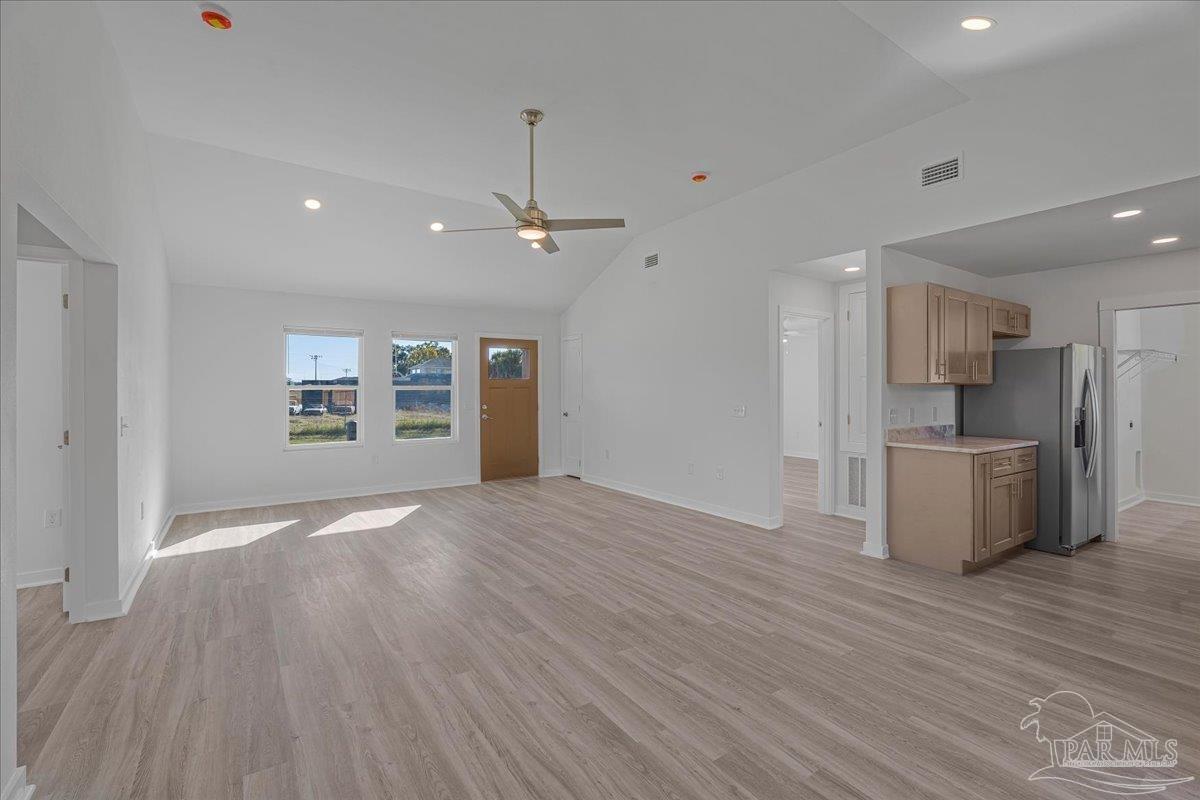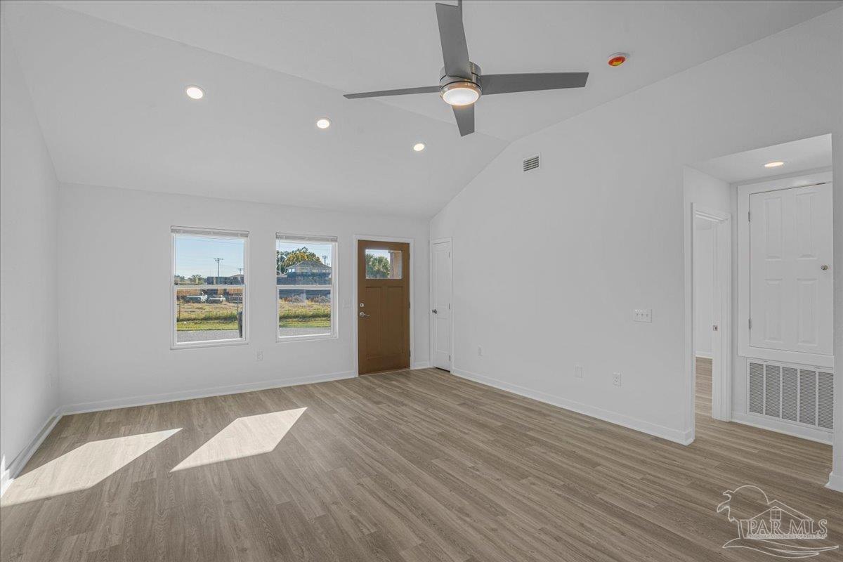 Move-in ready NEW BUILD, corner lot home near downtown Pensacola! This 3-bedroom, 2-bath home features an open, split floor plan with vaulted ceilings, ceiling fans throughout and blinds on every window. The kitchen includes granite countertops, stainless steel appliances (refrigerator, electric range, built-in microwave, and dishwasher), and an eat-in kitchen. The primary suite offers a double vanity and spacious layout. Enjoy easy-care luxury vinyl plank flooring, indoor laundry, and energy-efficient construction with insulated doors, windows, walls, and ceilings. Exterior features include vinyl siding, architectural shingle roof, fully fenced yard (privacy fence), hurricane protection, and a concrete double driveway. Public water and sewer. Located on a paved corner lot just minutes from downtown restaurants, shopping, and parks. Built to last, designed for comfort and ready for immediate move-in!