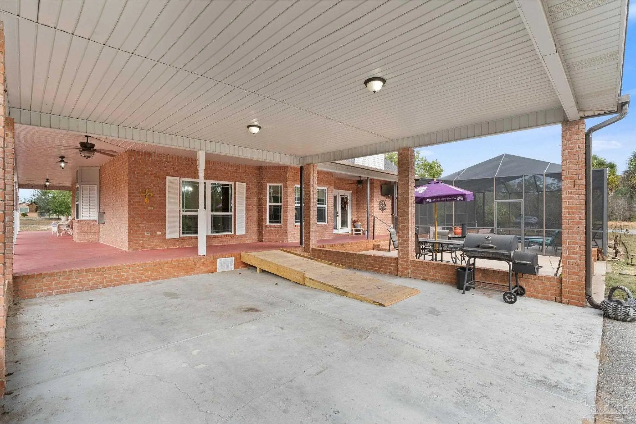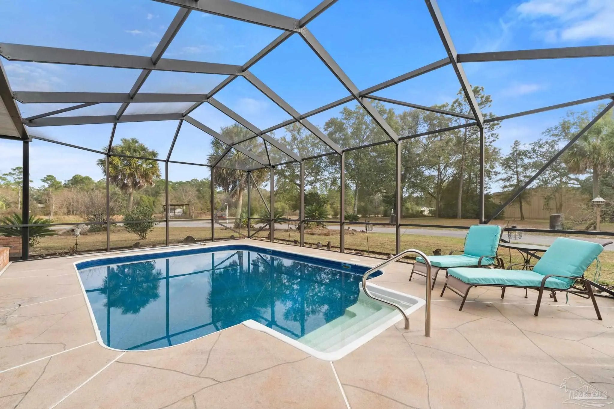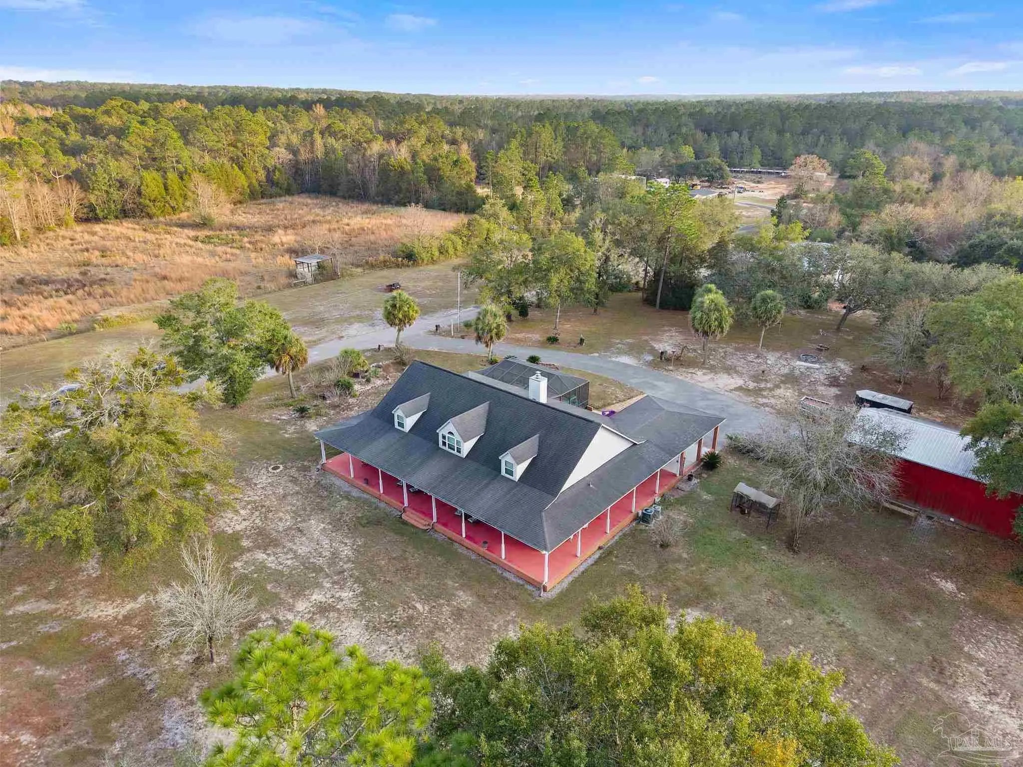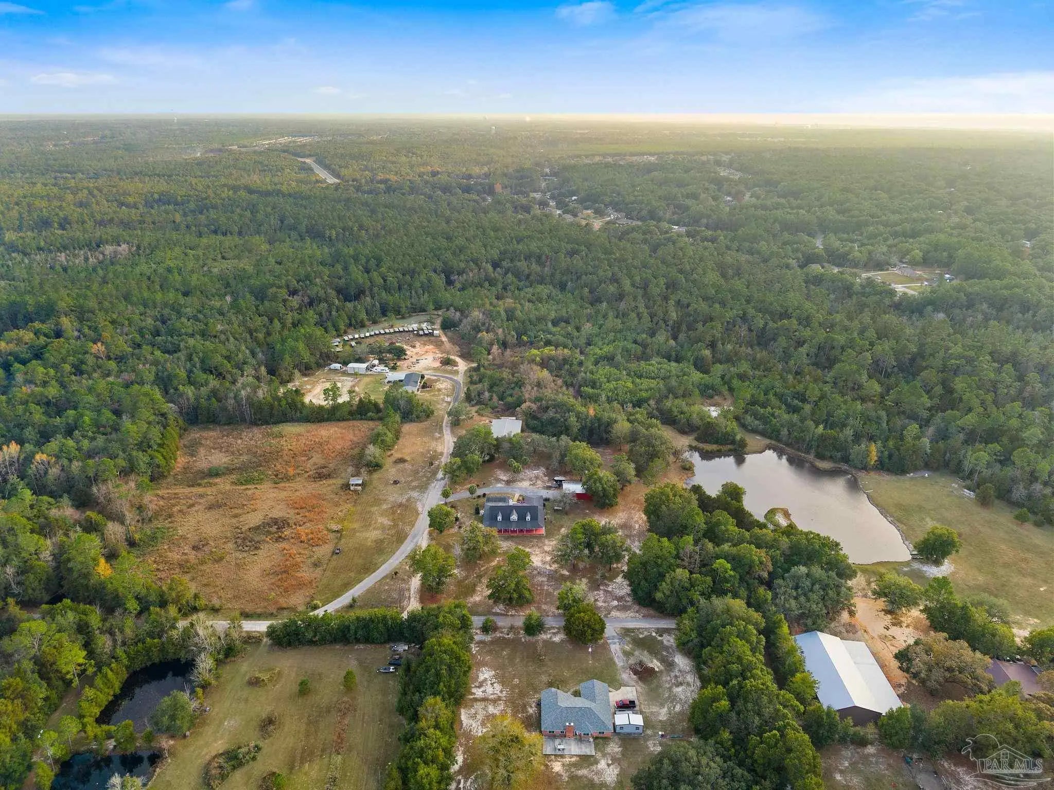 This is a RARE and UNIQUE 3-Bedroom, 3-Bathroom Brick home on 30 ACRES in the middle of Milton. Enjoy the feel of peaceful country living just minutes from town. The property features an ENCLOSED SALTWATER POOL, a FISHING POND, a CREEK, a massive 3,000 SQ. FT. metal building with power, and another 2400 sq. ft. garage/workshop with power. Additional highlights of this home are a wrap around porch, wood burning fireplace, Chef's Kitchen, large laundry room, and a bathroom that opens to the pool area. The attic offers room to expand or add additional living space if desired. For travelers, there is an RV hookup with a dedicated dump station. Located at the end of a dead-end road, this property offers true privacy while still being close to schools, shopping, and local amenities. Enjoy the benefits of in-town convenience with the feel of country living — a rare find!